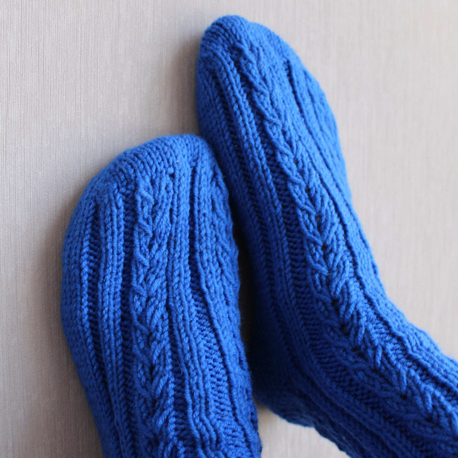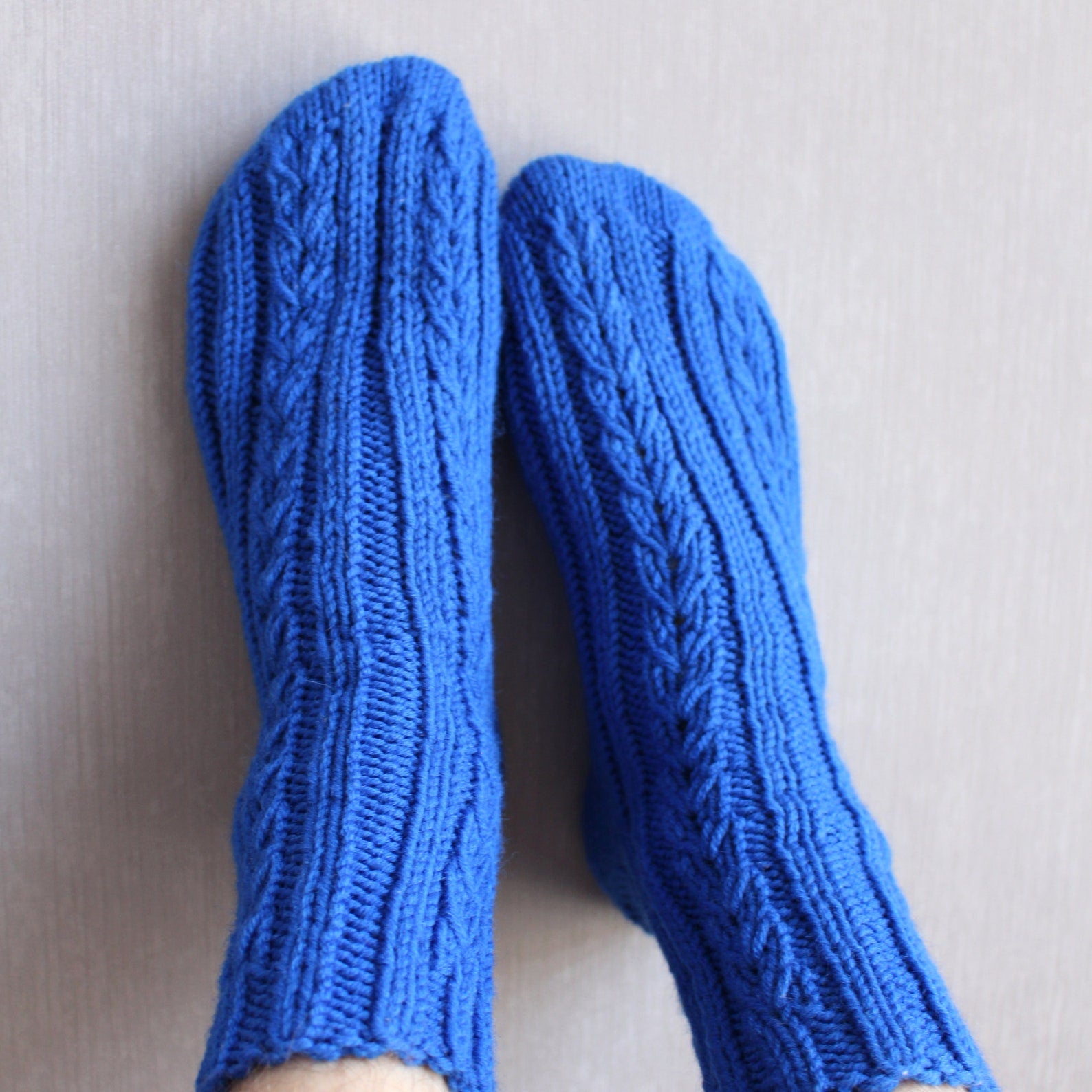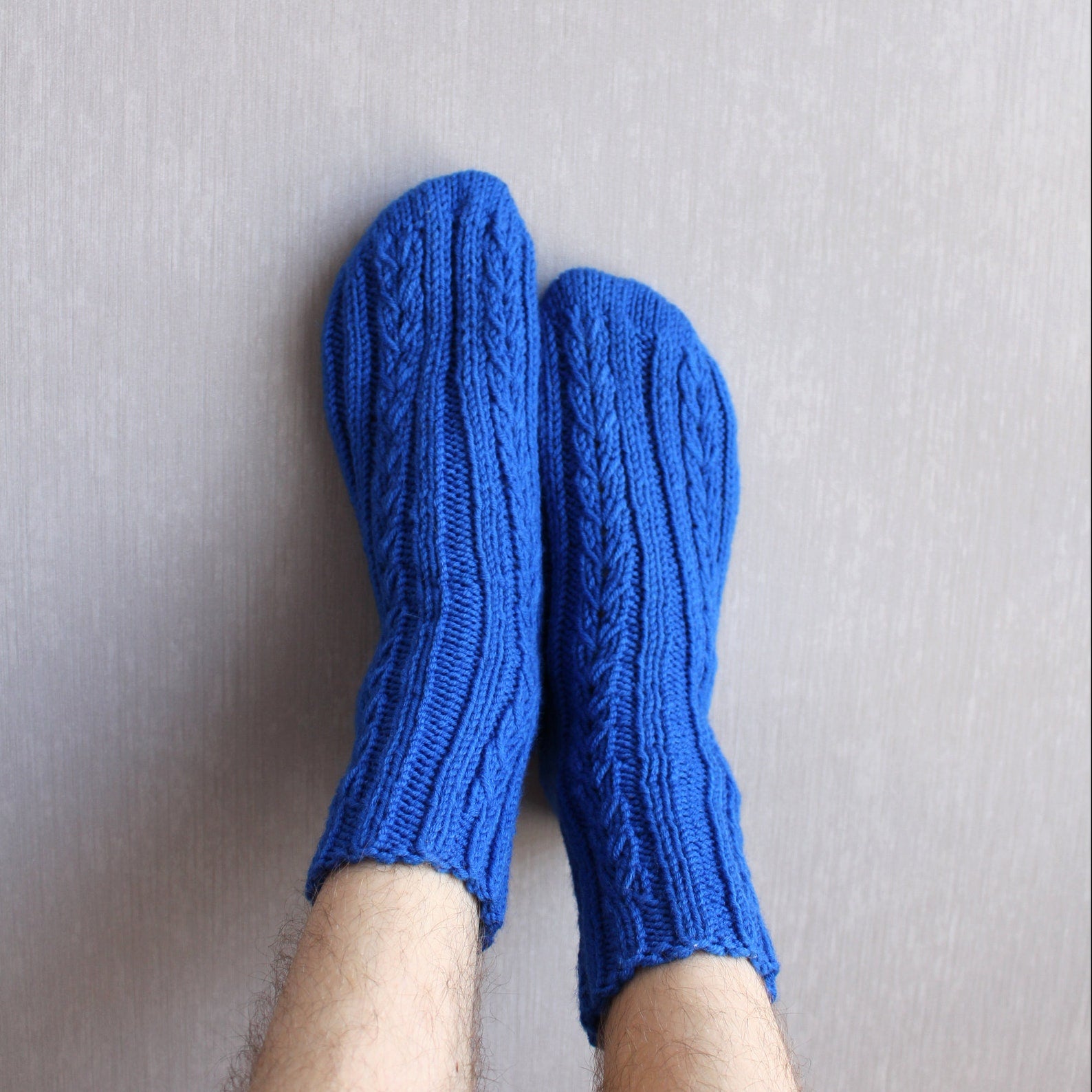 These large-size blue classic socks are perfect for men who need a little more room in their footwear. Socks are made of high-quality wool and have a cute cable-knit design. They're perfect for wearing with any boots and will keep your feet warm all winter long. Socks were hand-knitted from the durable and soft Alize Lanagold Classic yarn (Wool 49%, Acrylic 51%).