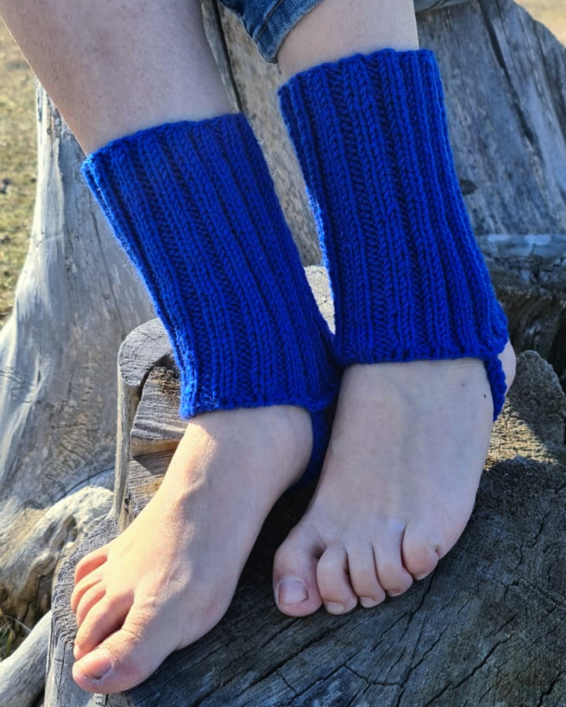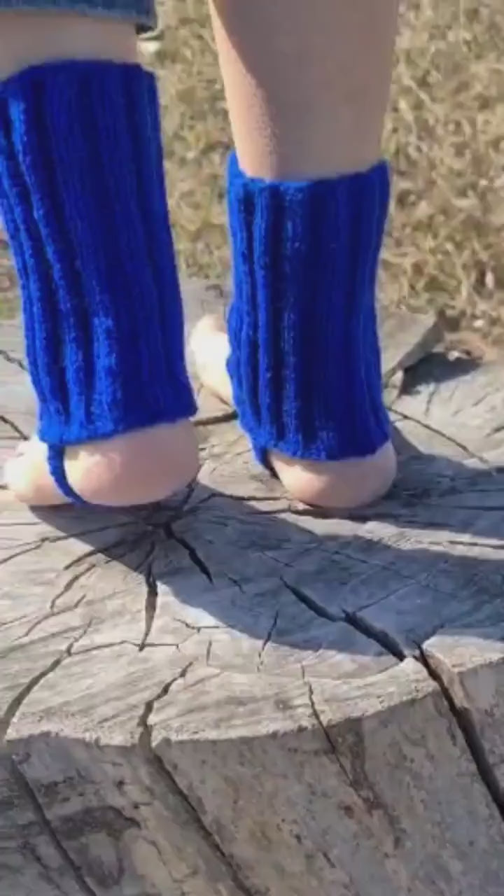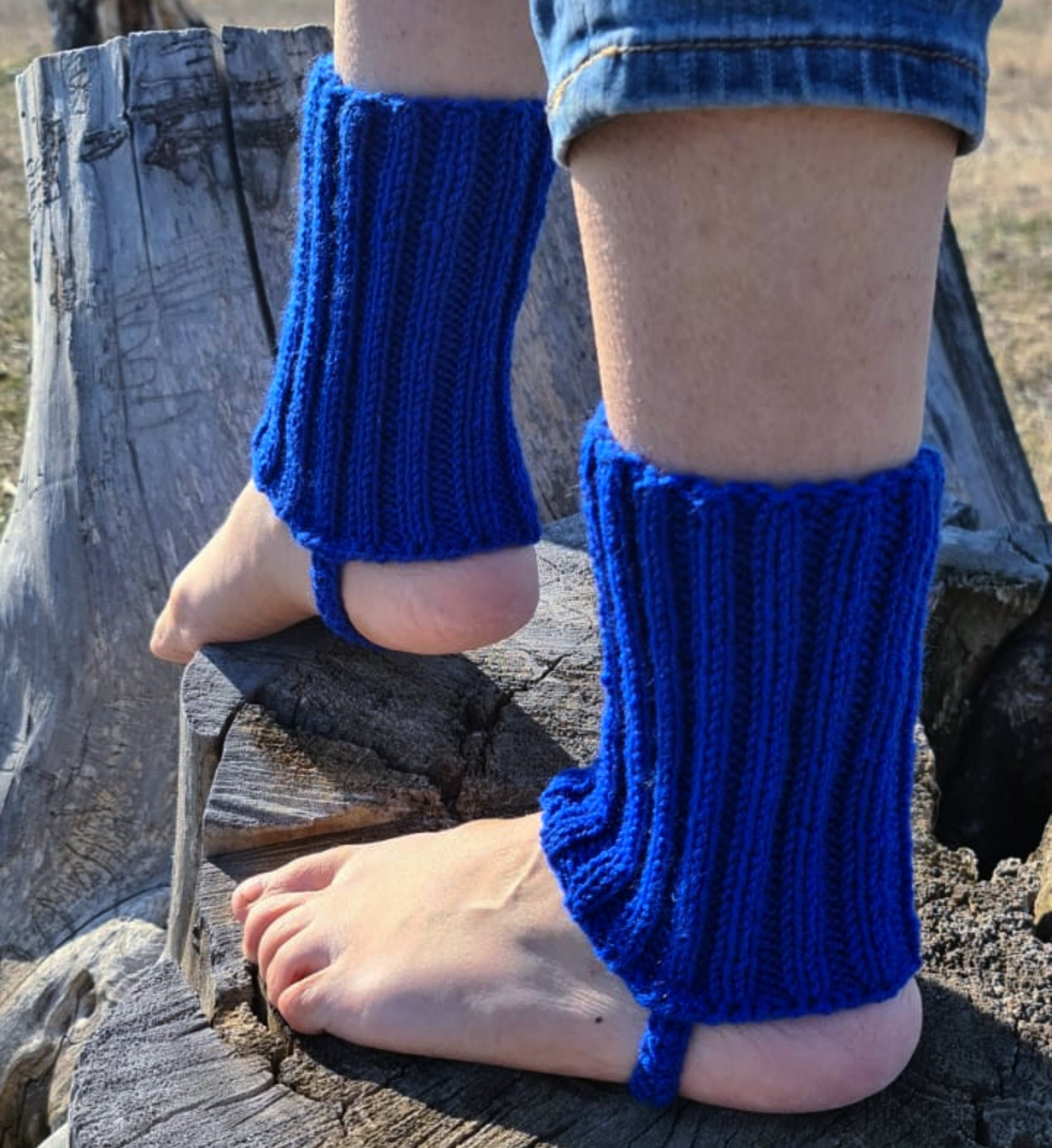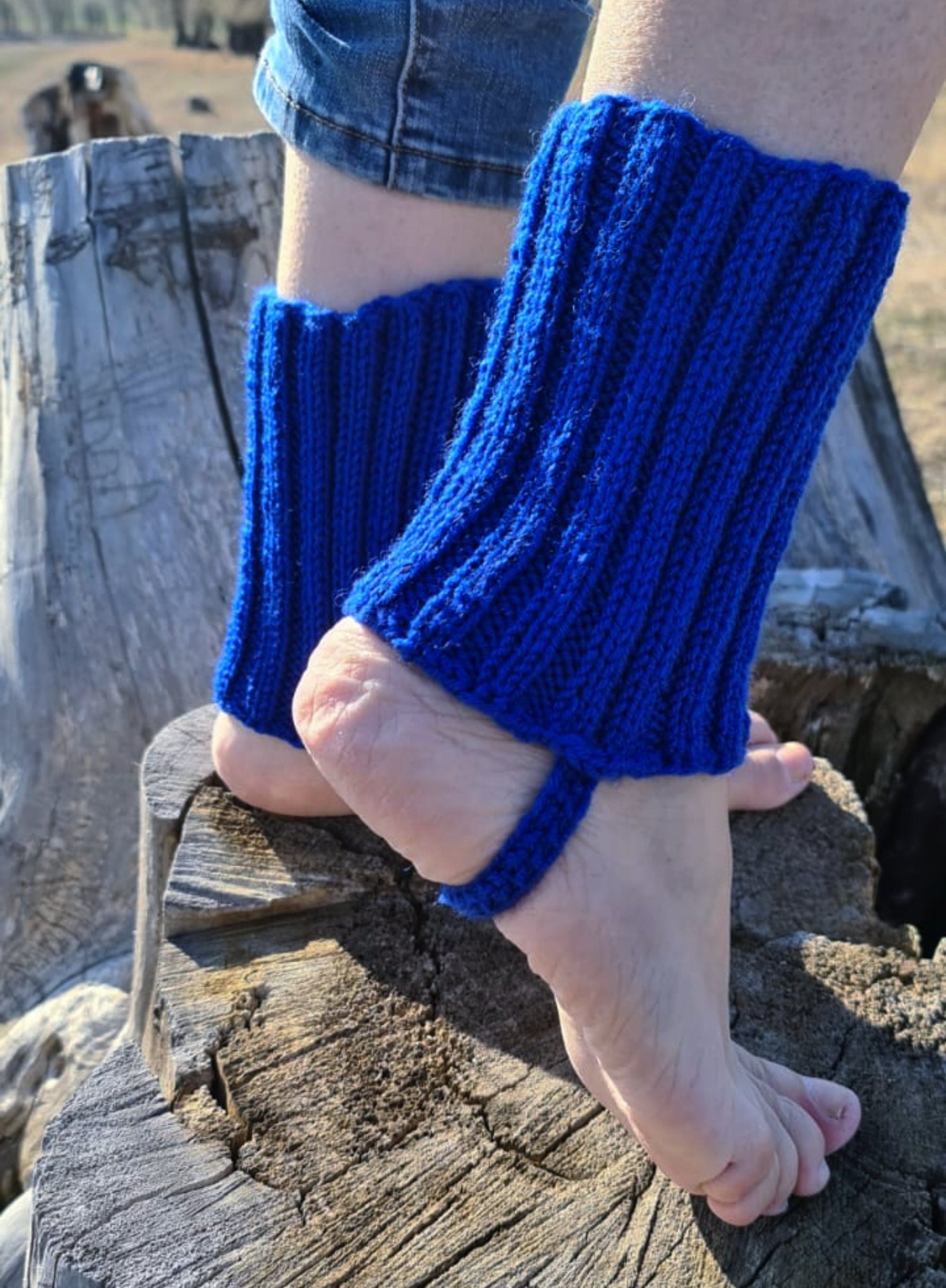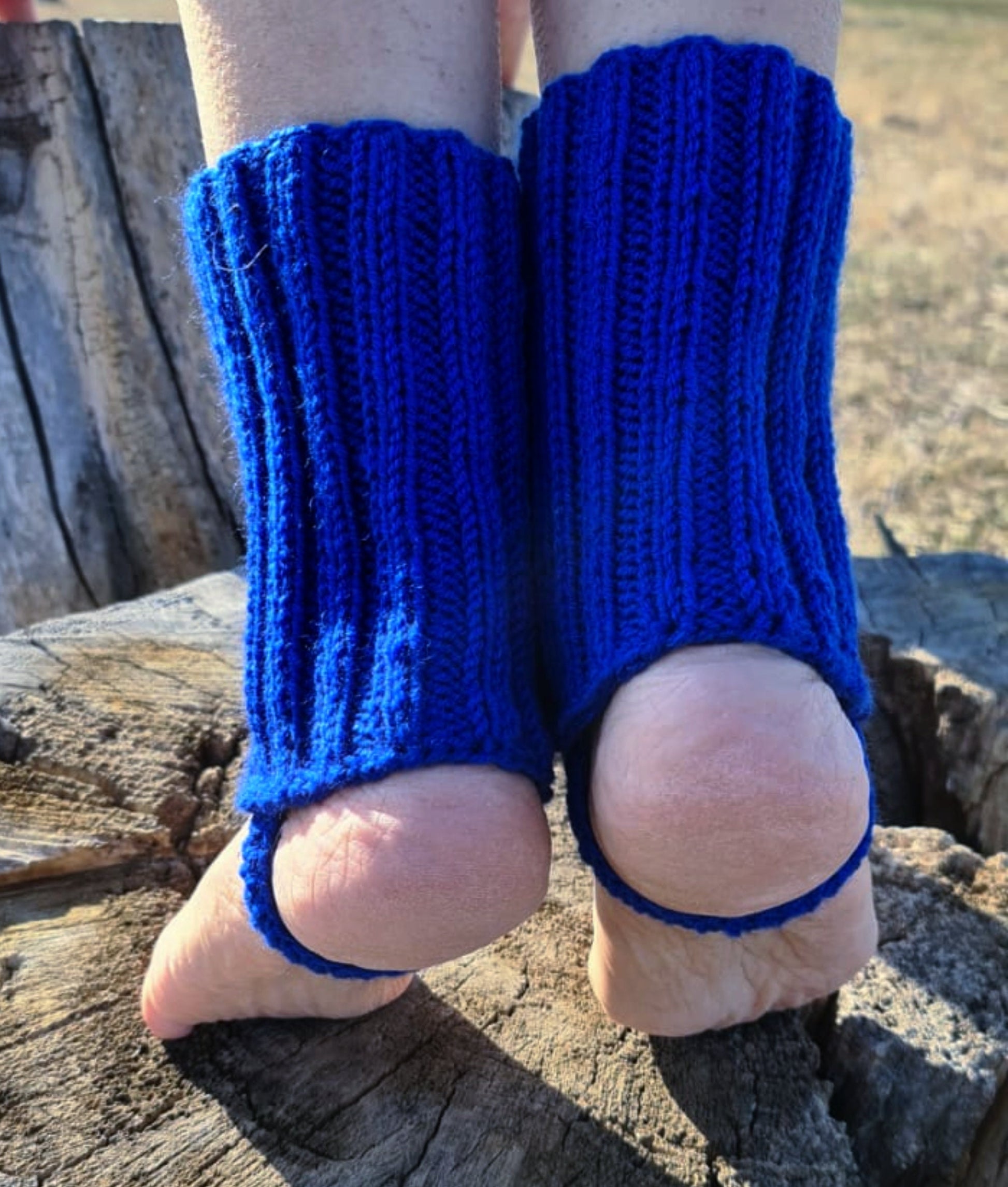 Blue stirrup ankle warmers, Knitted pedicure socks