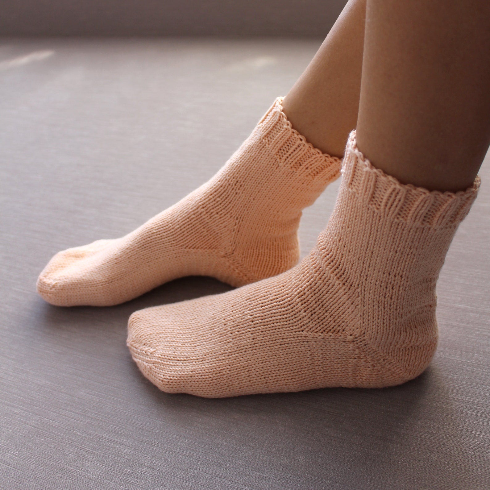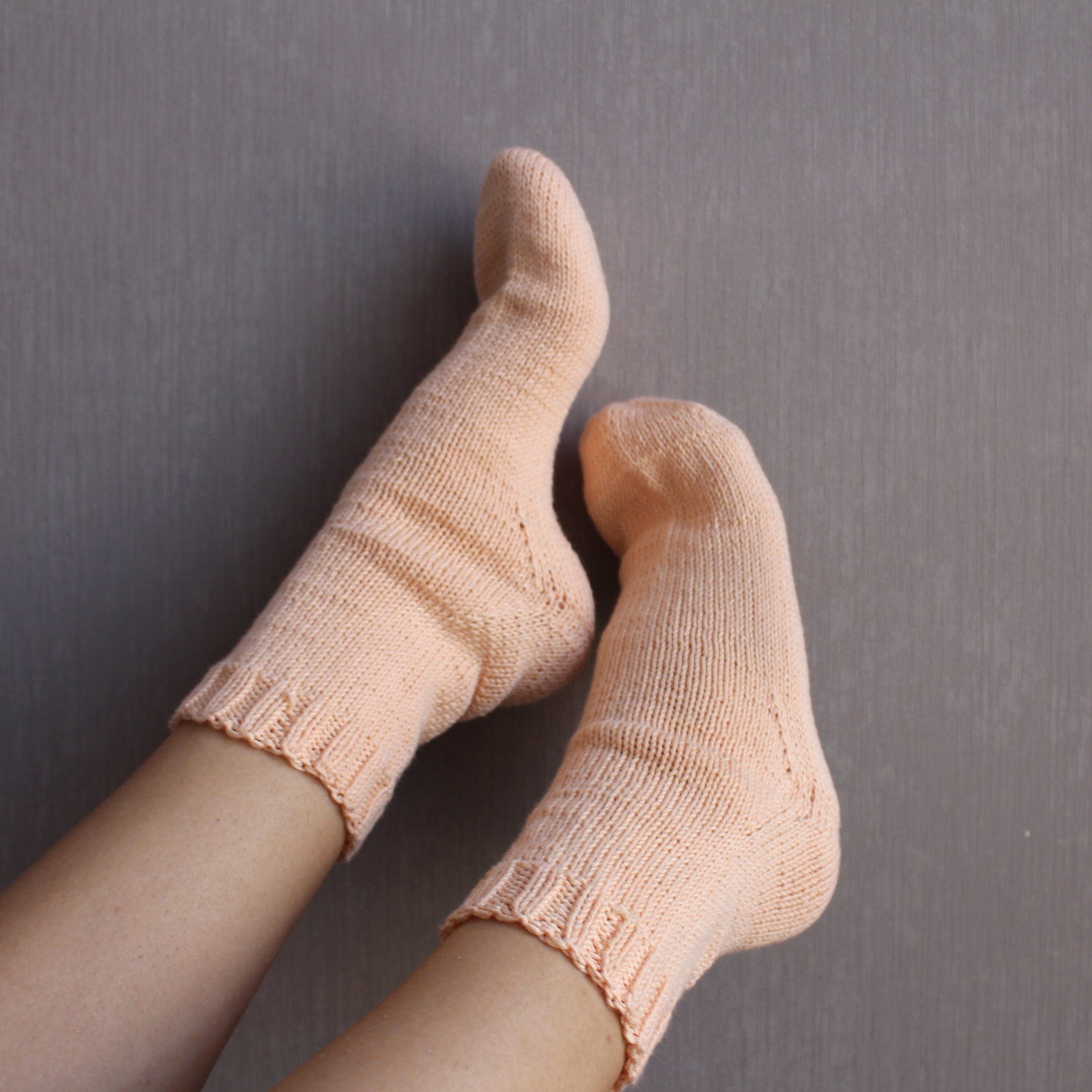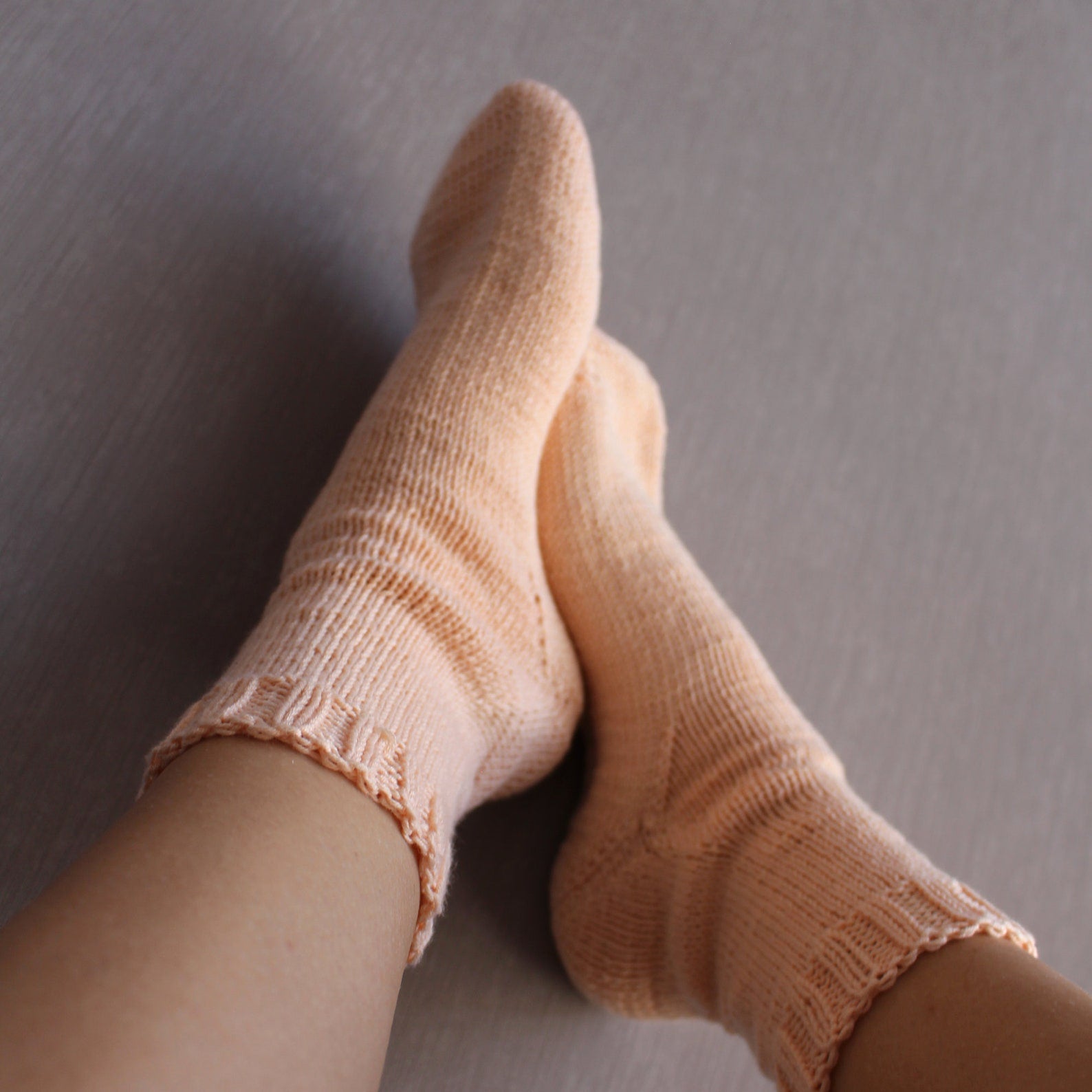 Breathable soft cotton socks, White Peach knitted socks, Moisture wicking socks