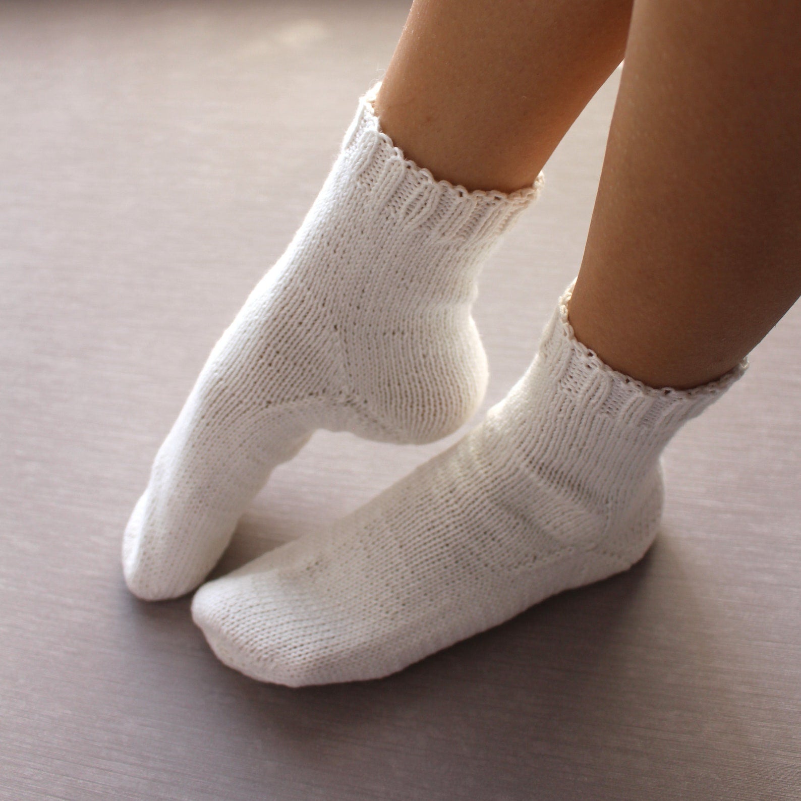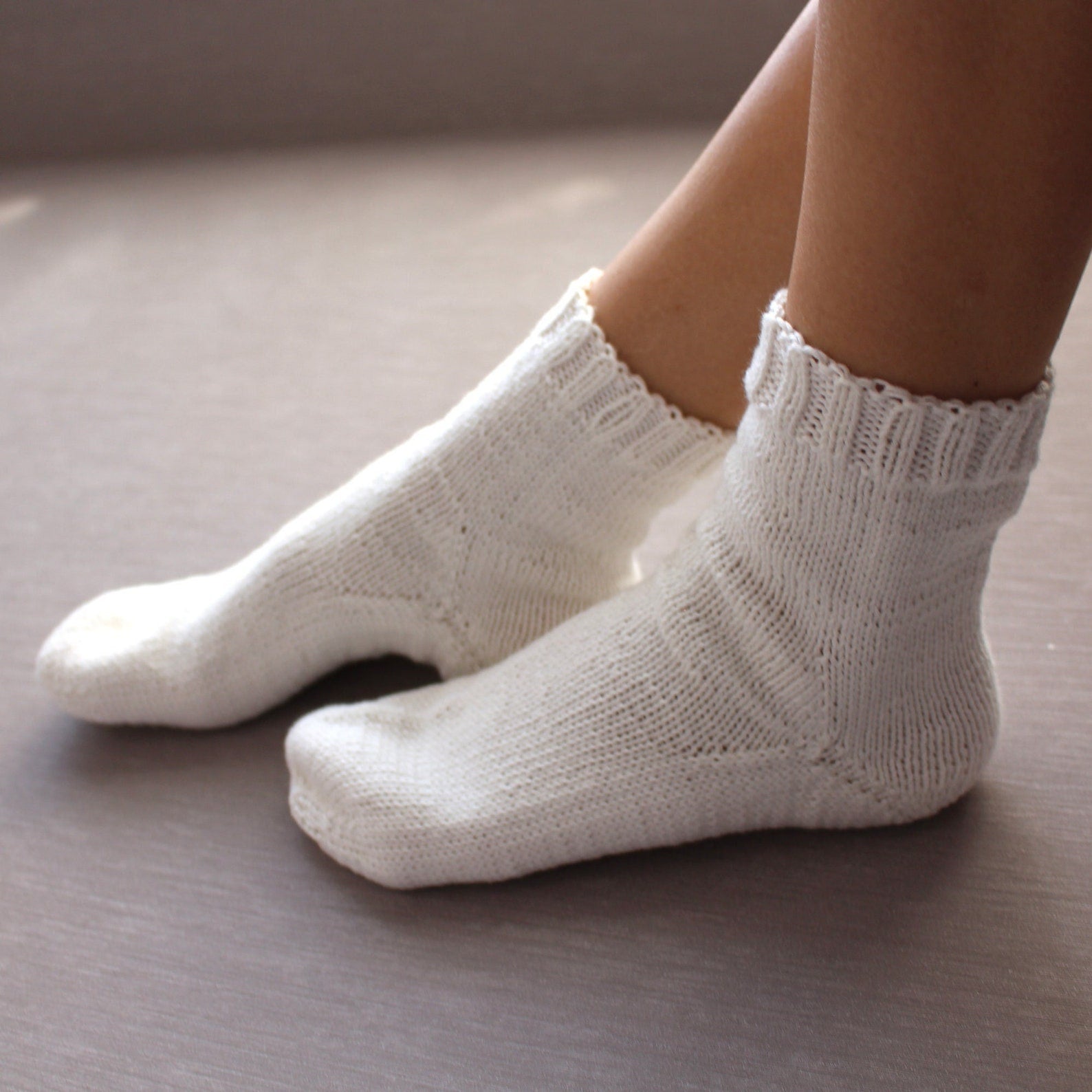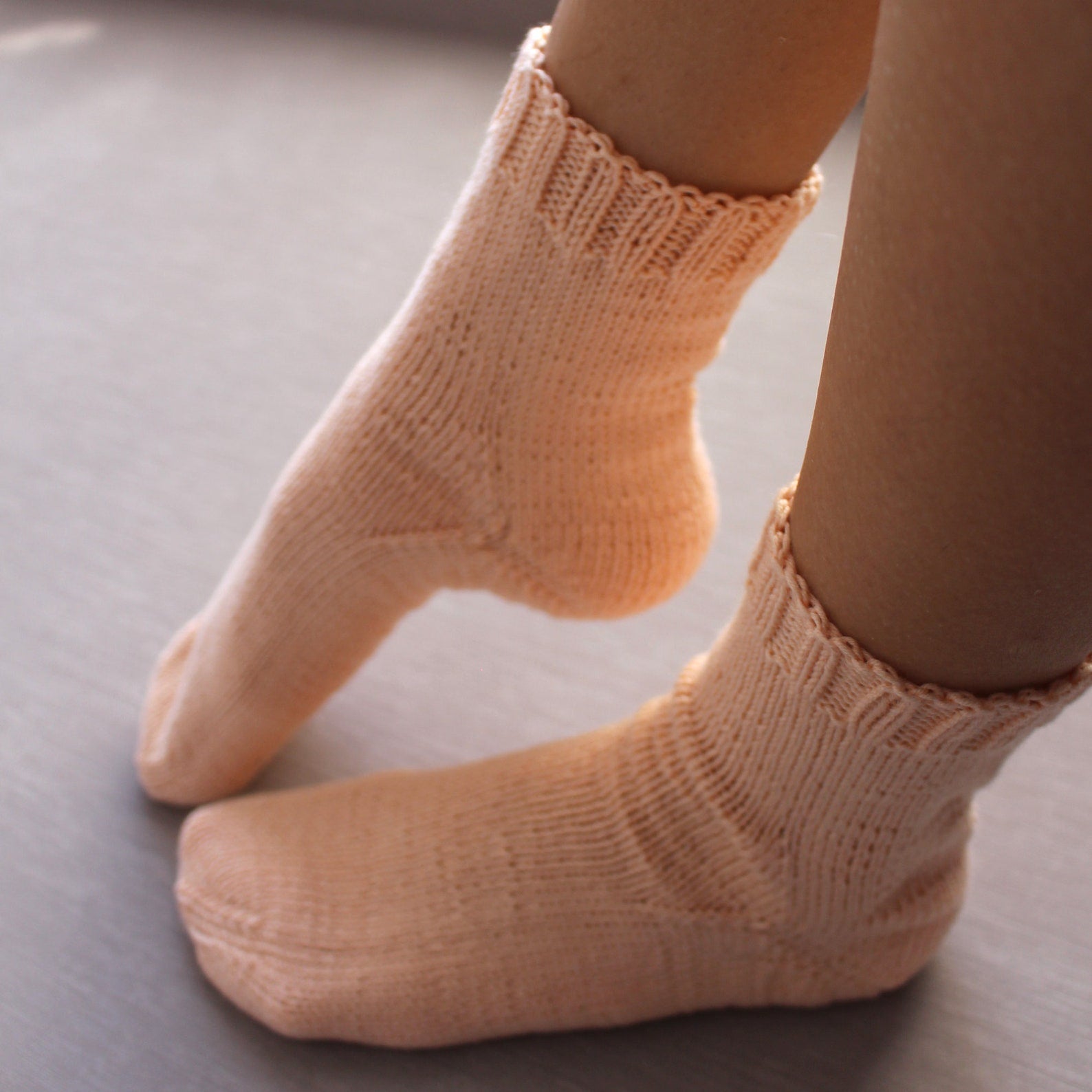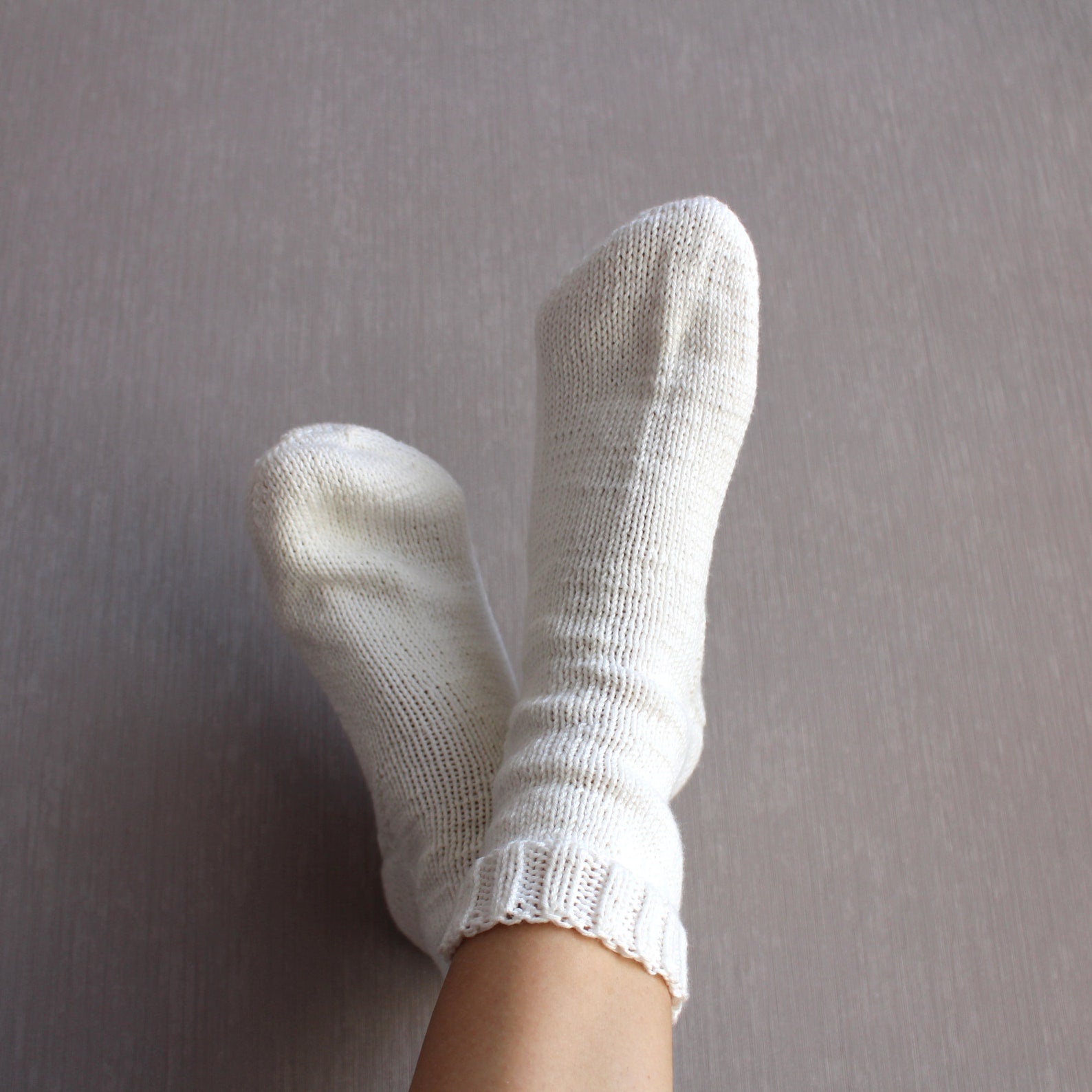 Breathable soft cotton socks, White Peach knitted socks, Moisture wicking socks