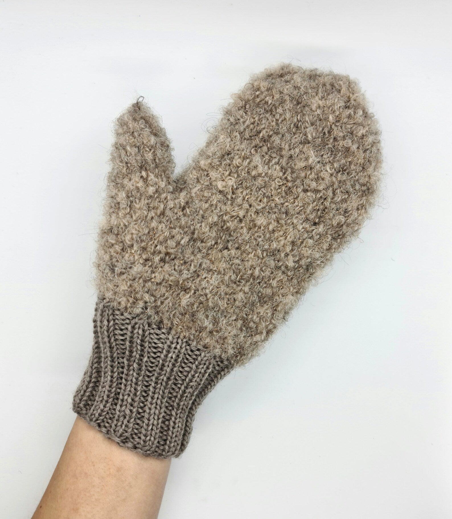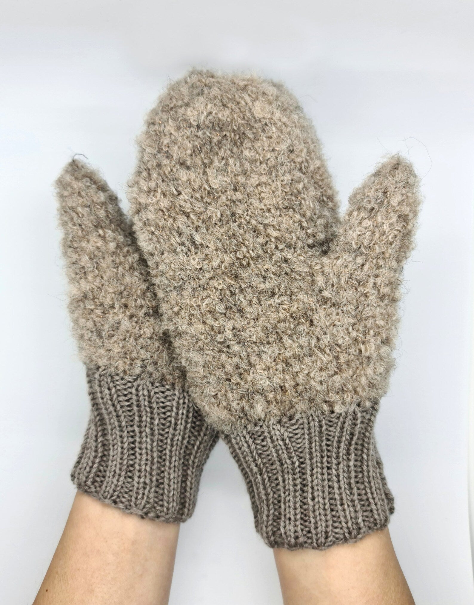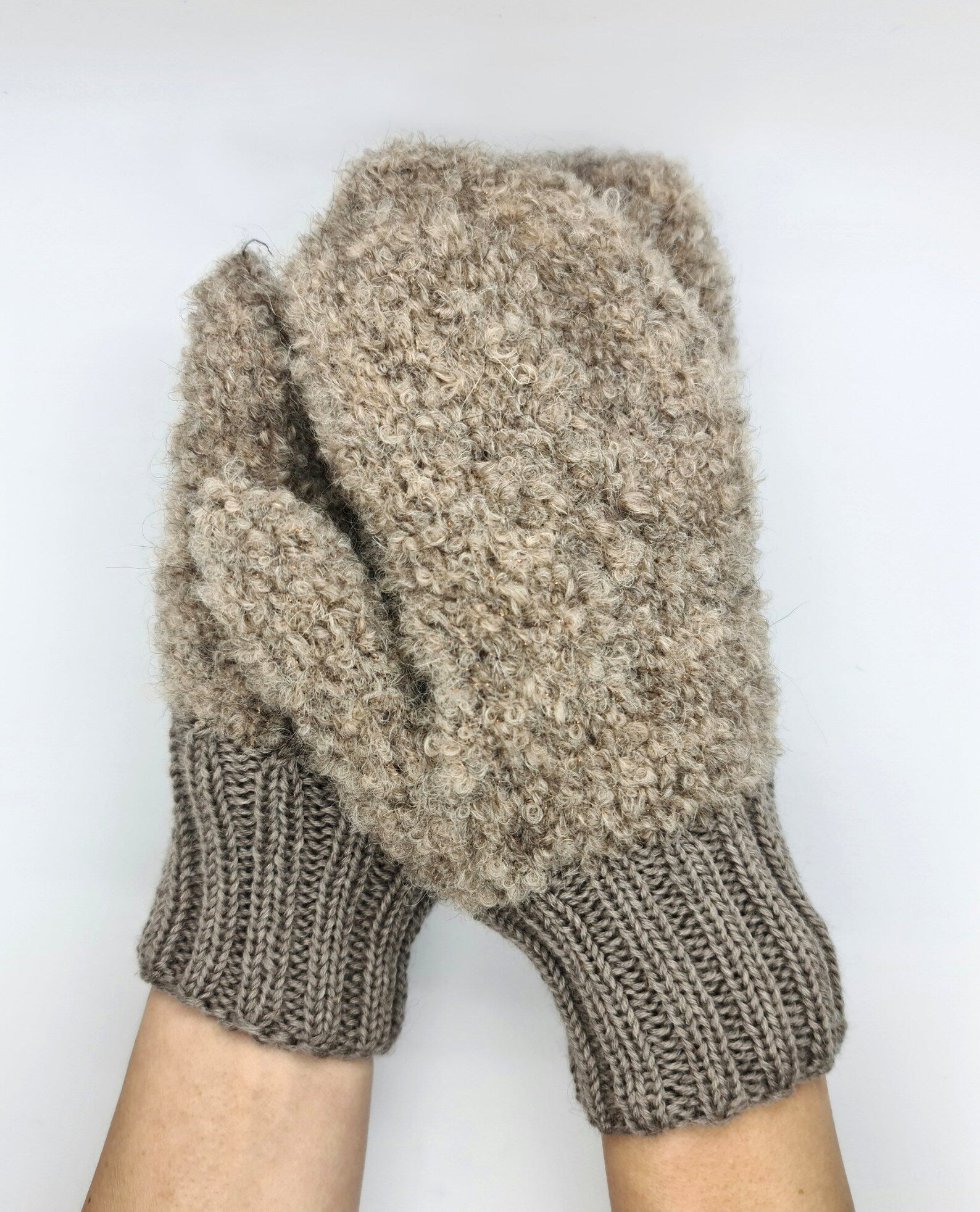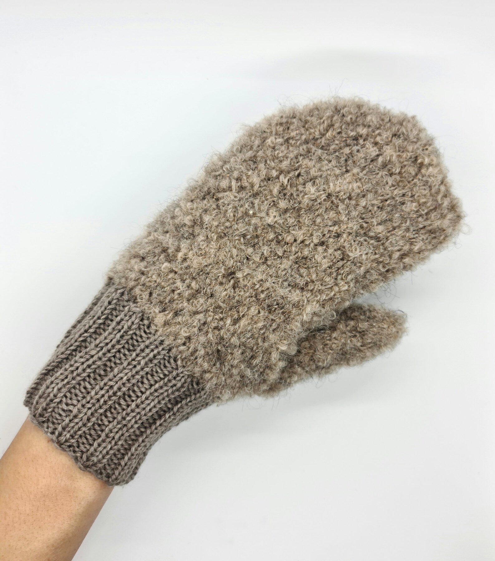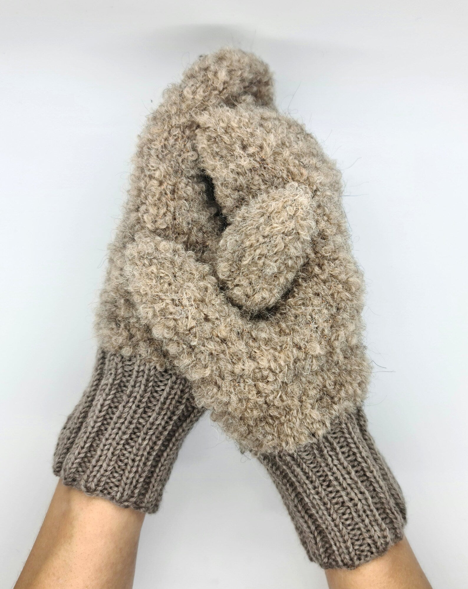 Brown fluffy mittens with a sparkle effect, Cute plush gloves, Alpaca Wool Mohair gloves