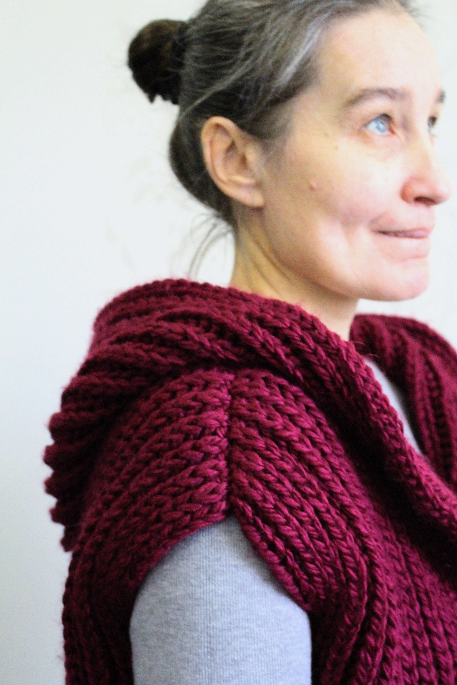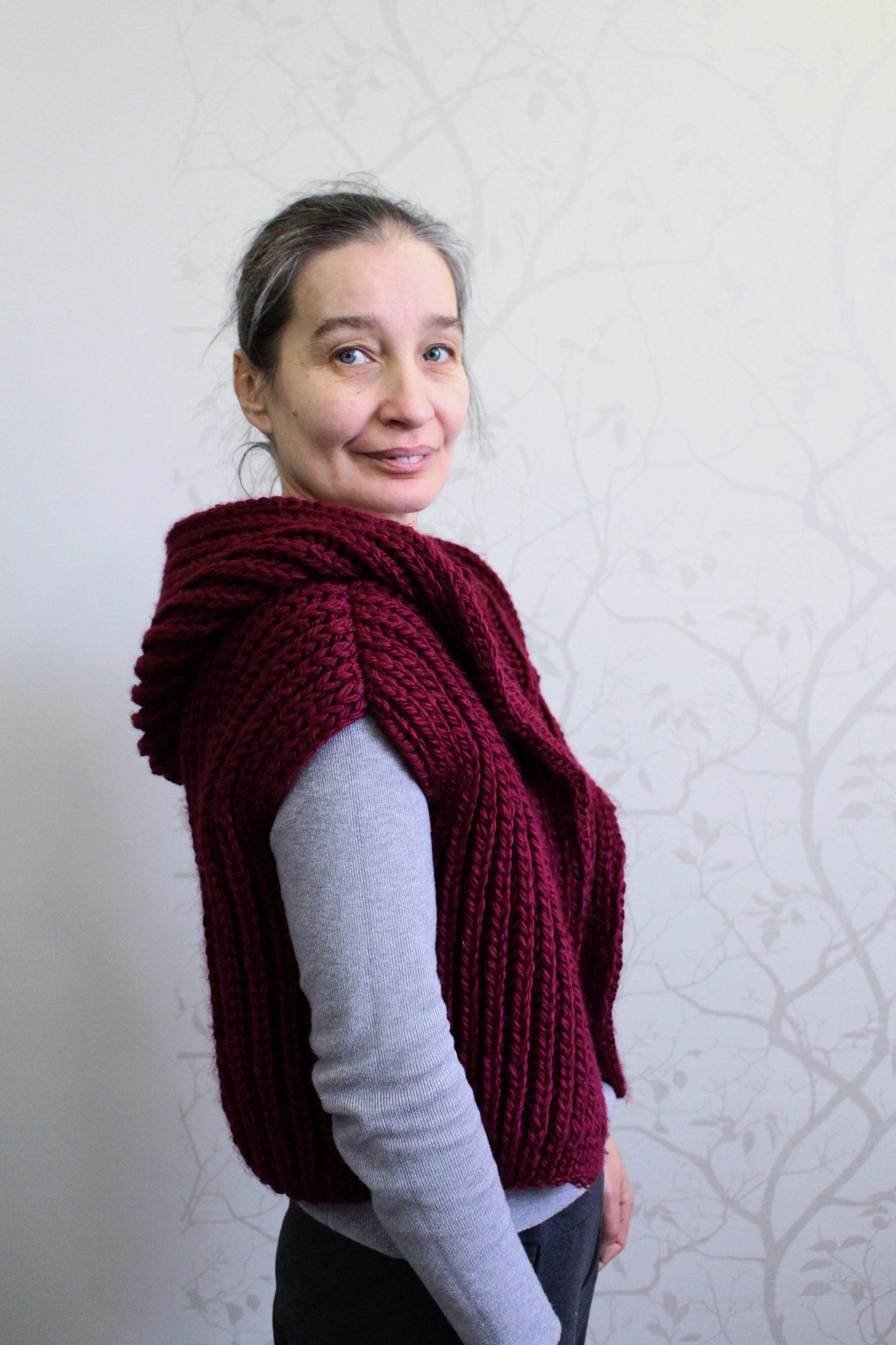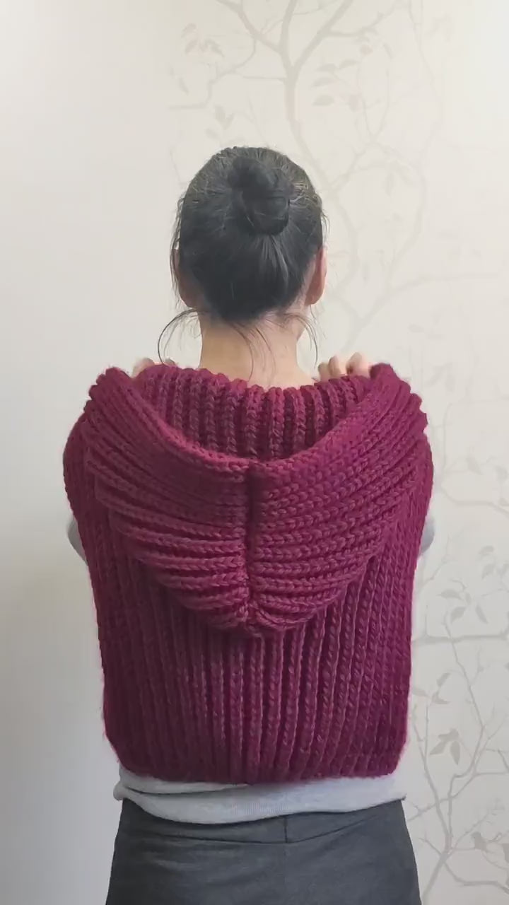 Chunky oversized cardigan, heavy knit sweater, red cropped hoodie