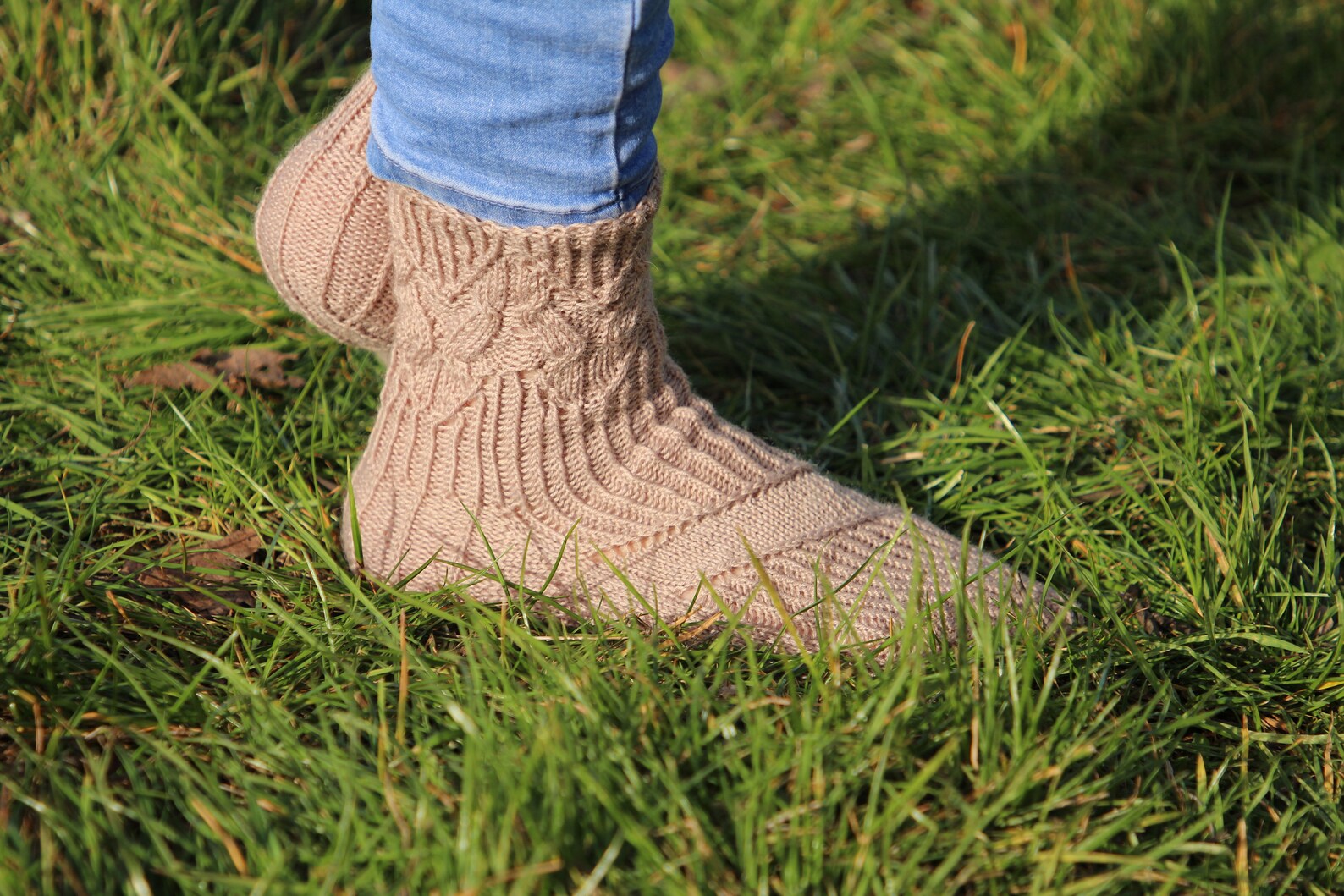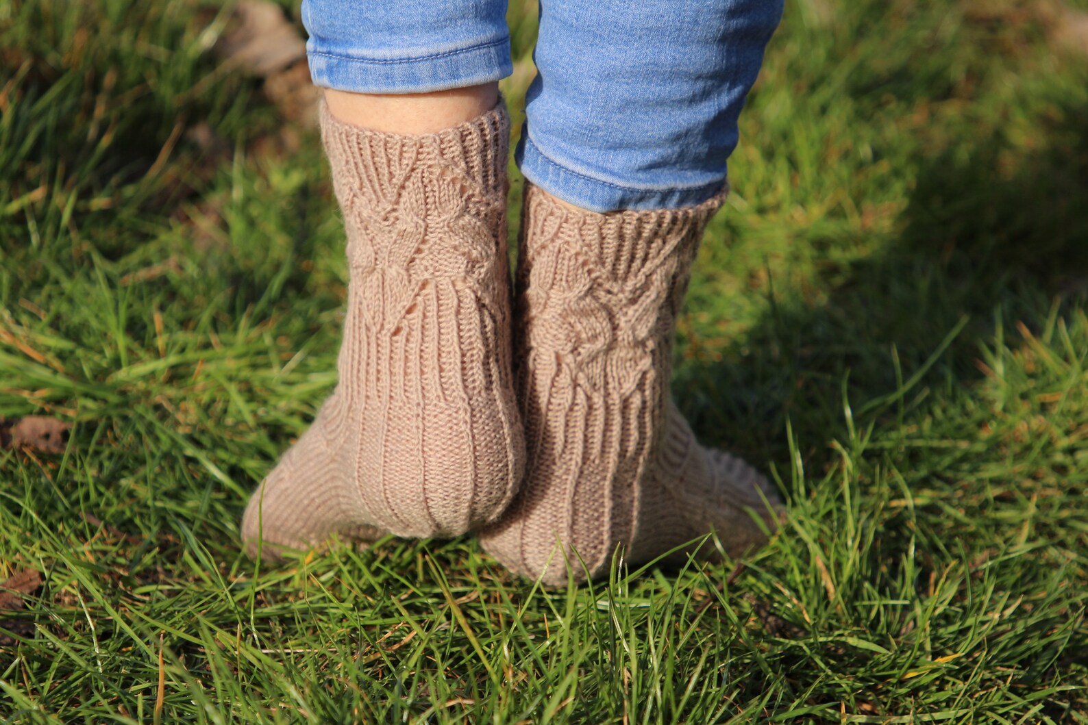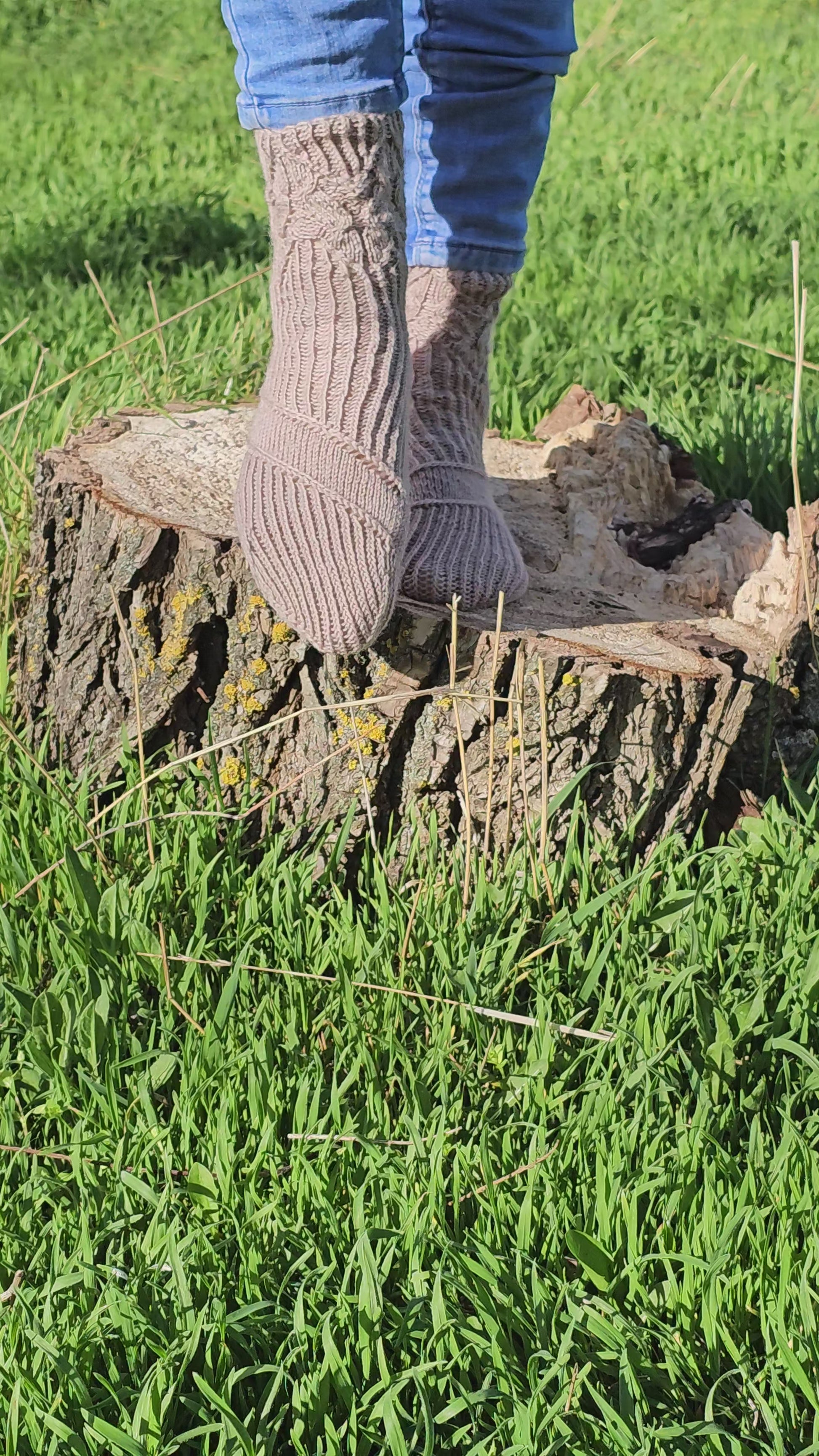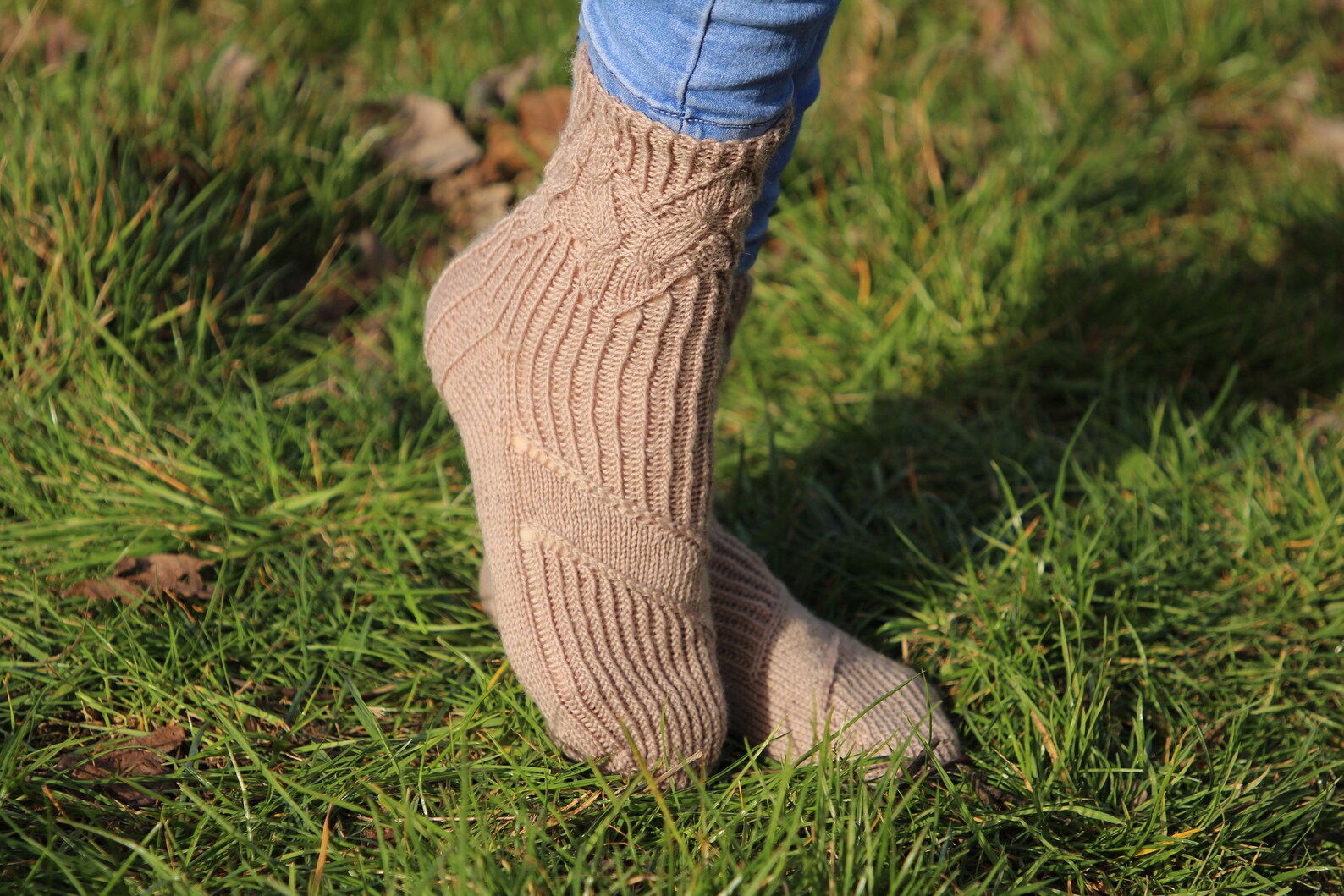 Lovingly hand-knitted, these beige socks feature a classic ribbed design with an intricate cable pattern that adds both texture and elegance to your daily wear.