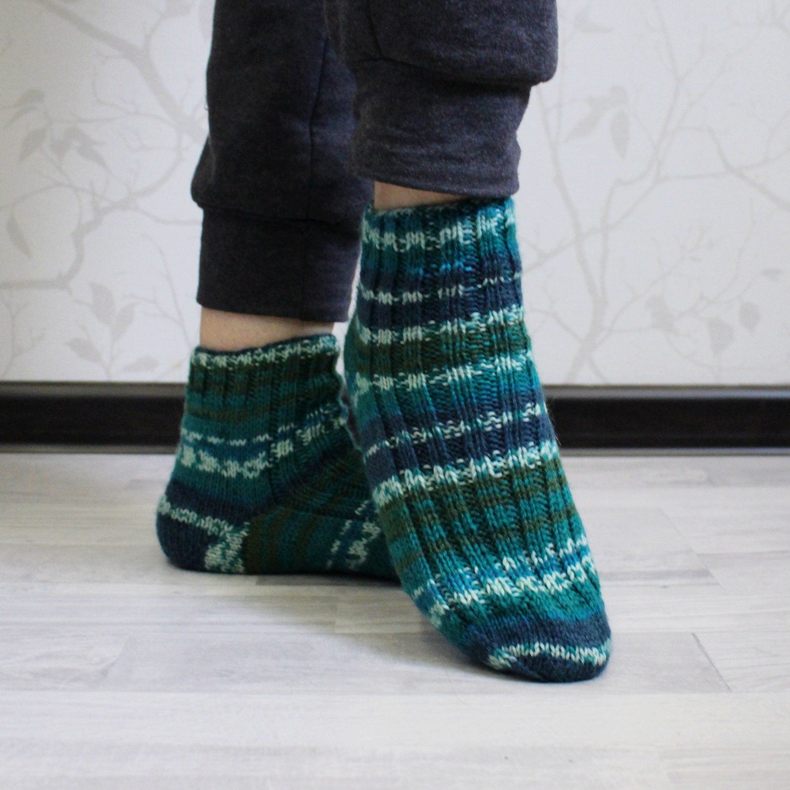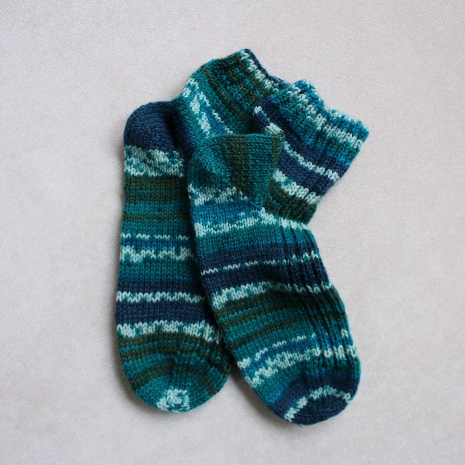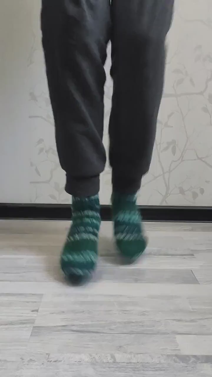Comfy striped knitted socks, Virgin wool socks, Multicolor cold-weather socks