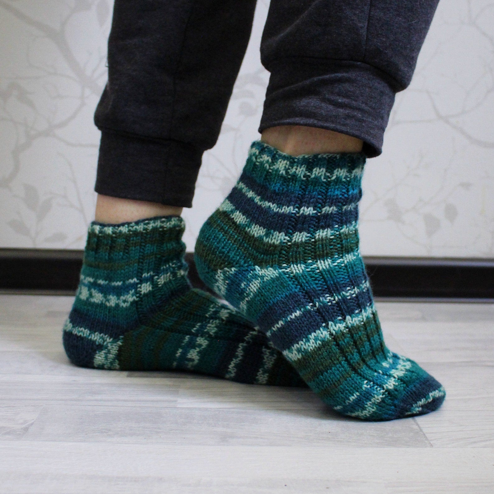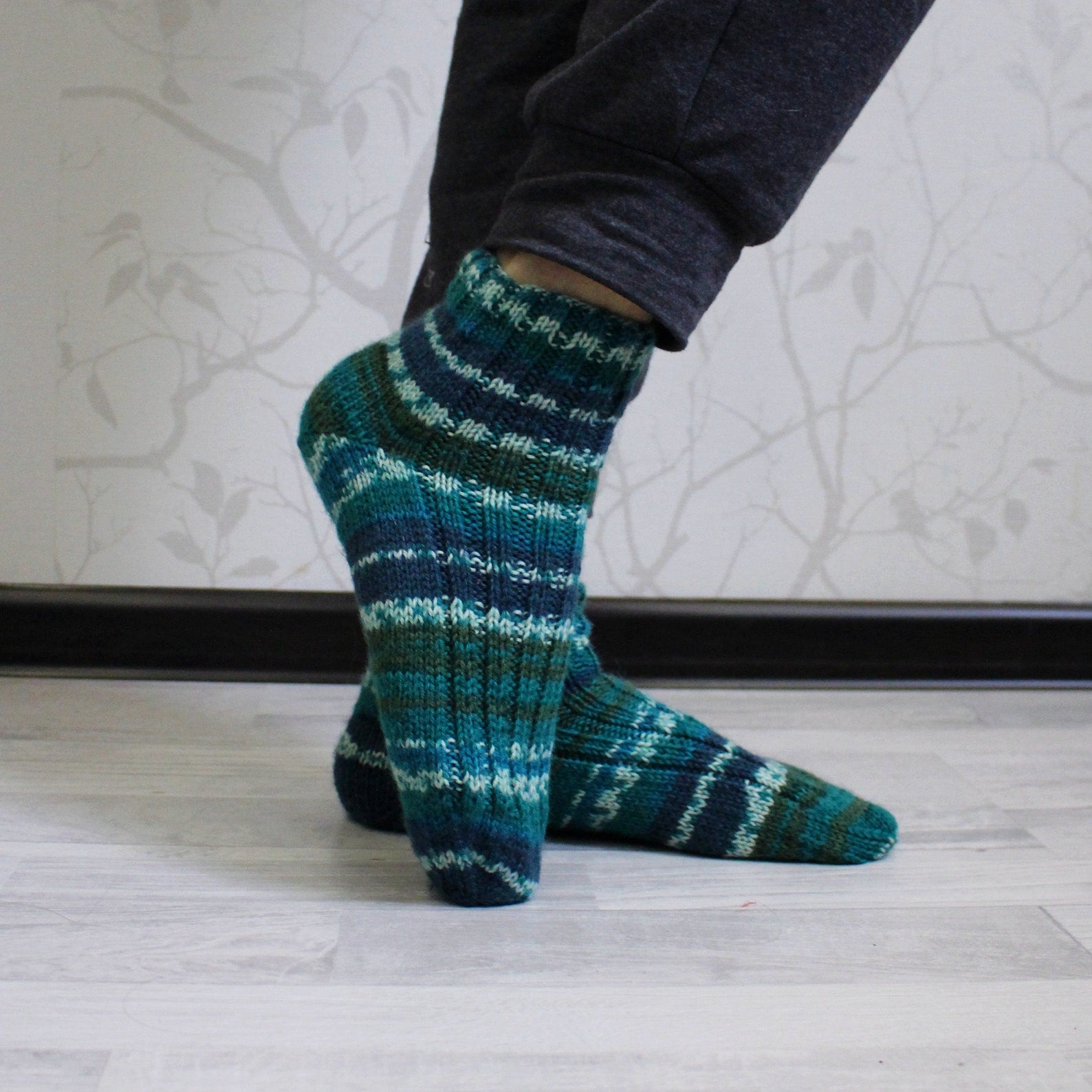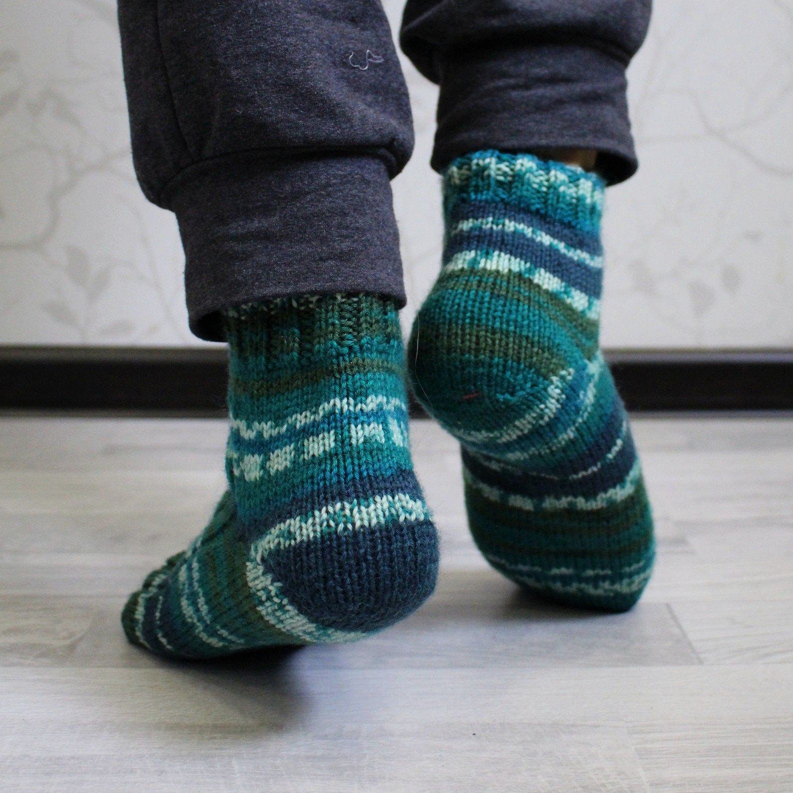 Comfy striped knitted socks, Virgin wool socks, Multicolor cold-weather socks