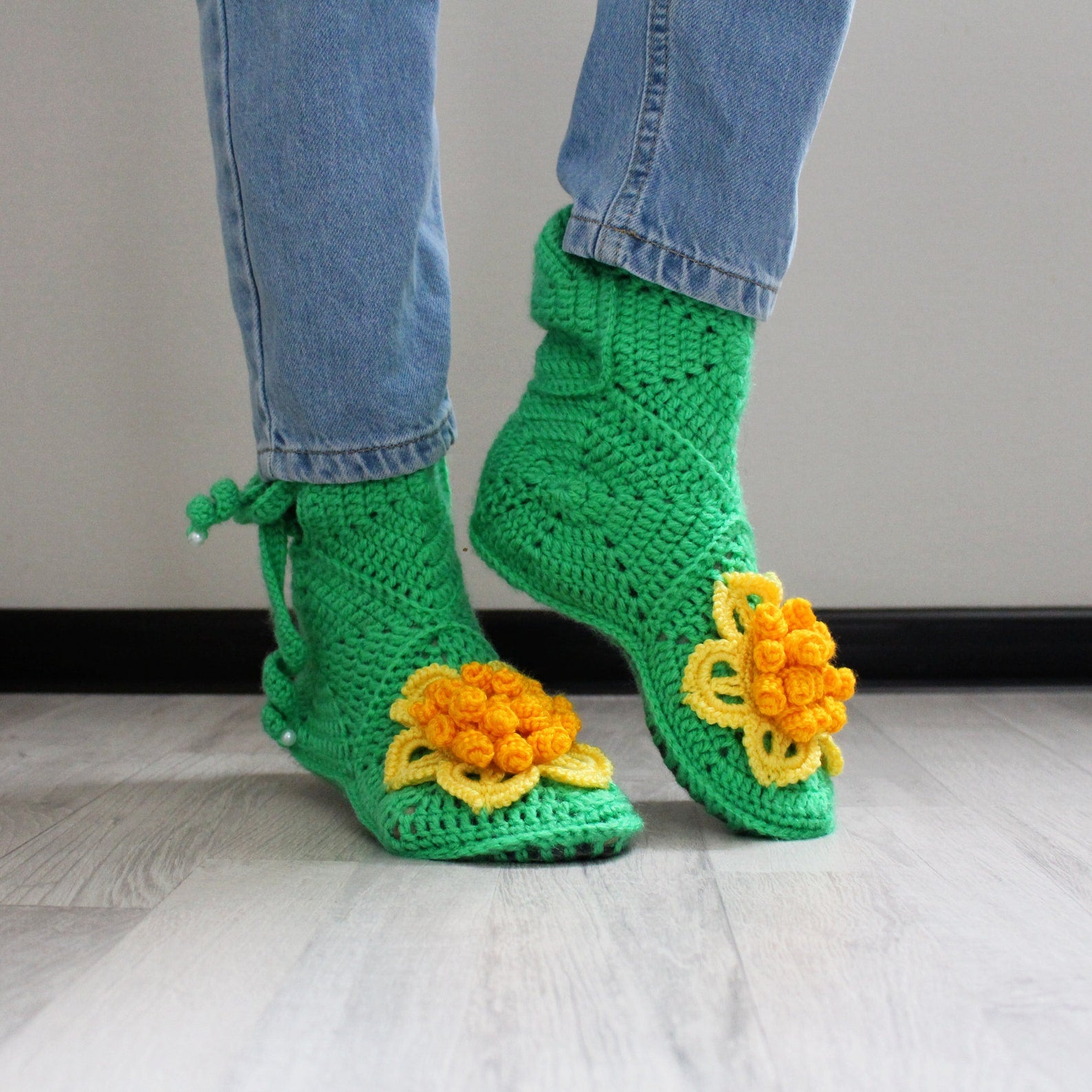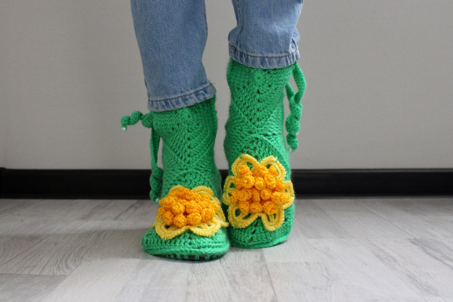 Crochet slipper boots with soles, Soft girl aesthetic home shoes