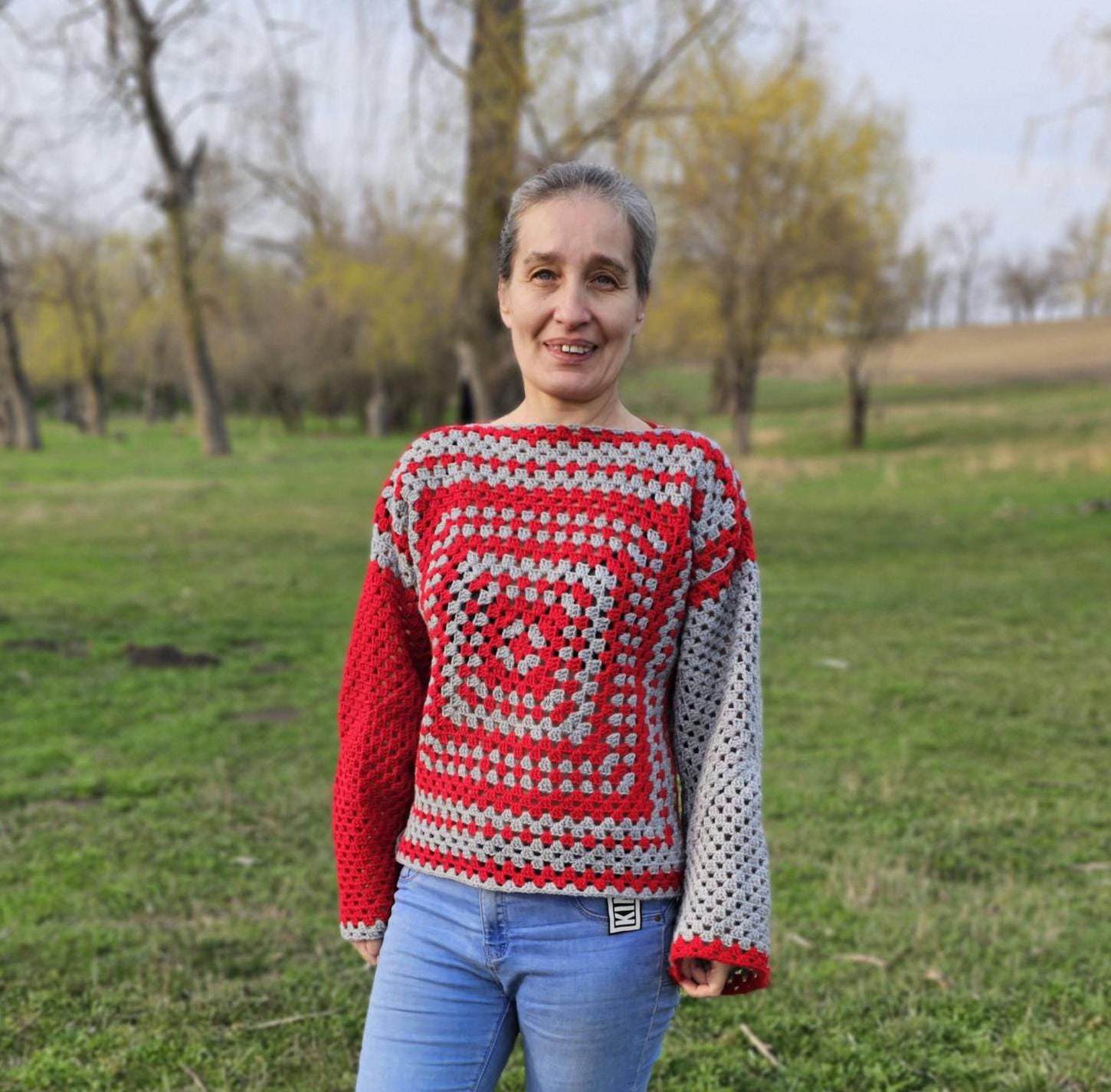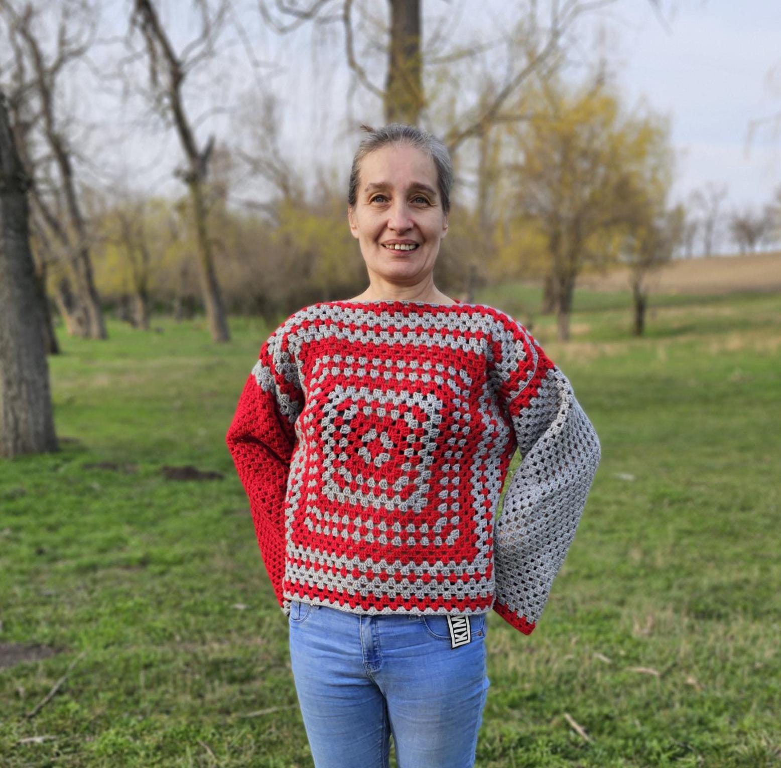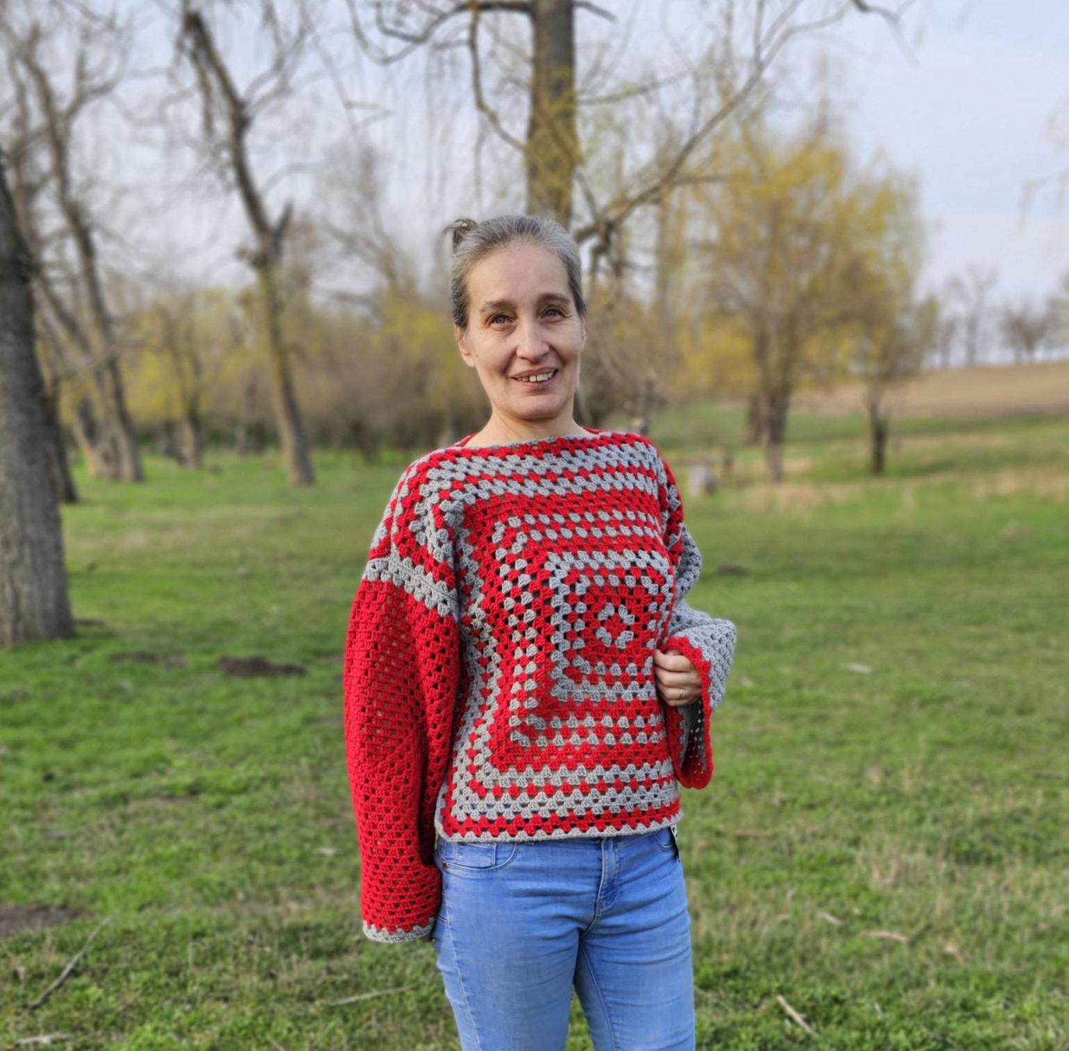 Wrap yourself in comfort with this Simple Cozy Granny Square Sweater, a timeless crochet piece that blends warmth, nostalgia, and effortless style. Handmade with love, this sweater features a classic granny square design, adding a vintage touch to your modern wardrobe.