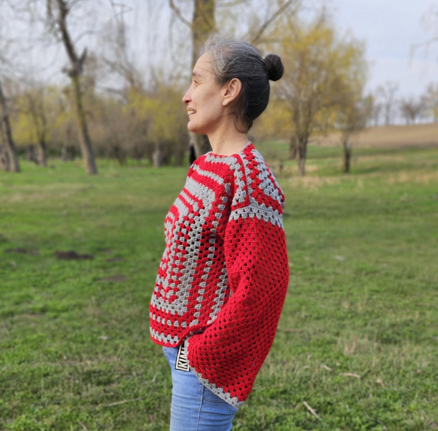 This crochet sweater is an absolute must-have for those who love cozy, one-of-a-kind pieces. Whether you're lounging at home, enjoying a crisp autumn walk, or adding a pop of personality to your everyday outfits, this granny square sweater will keep you snug and stylish.