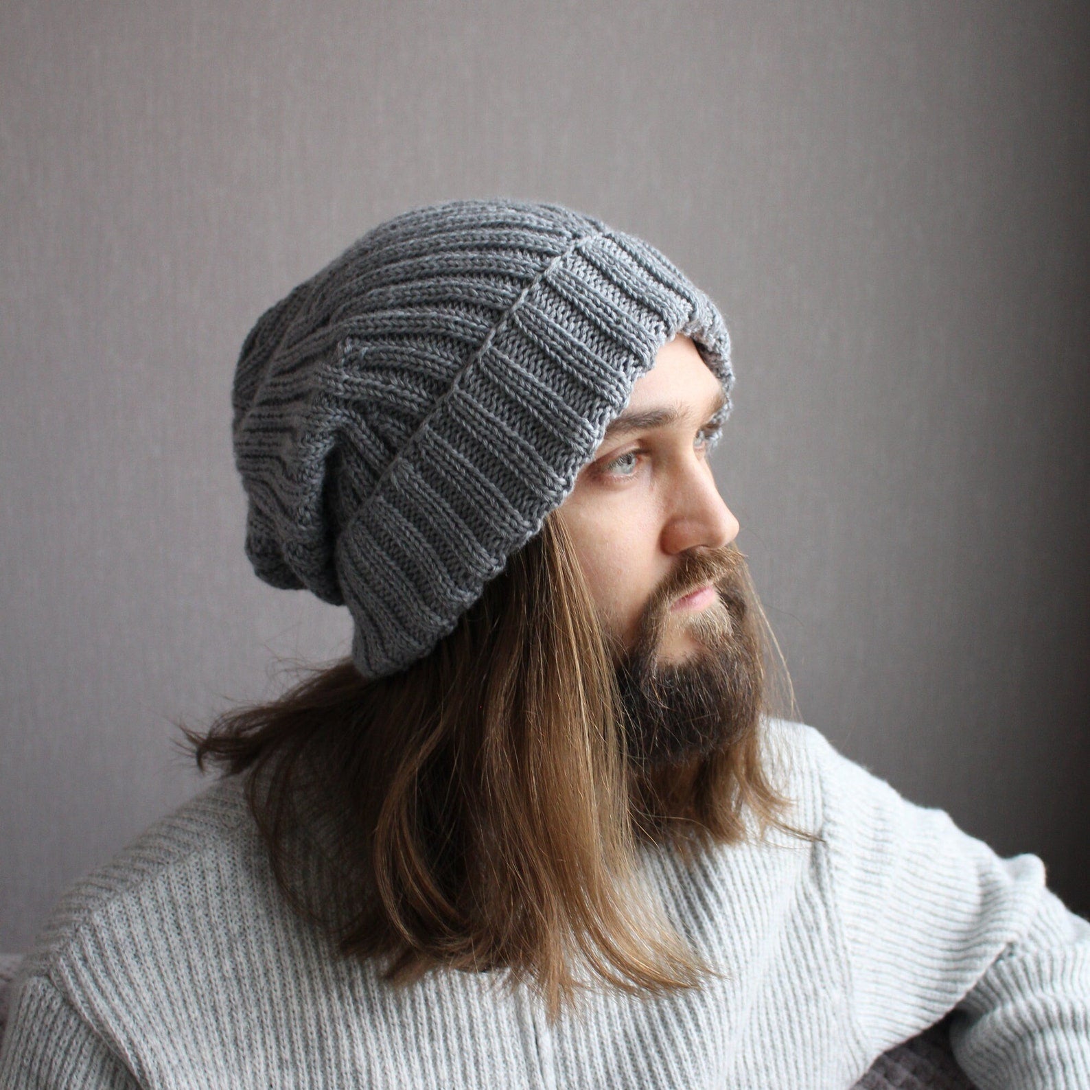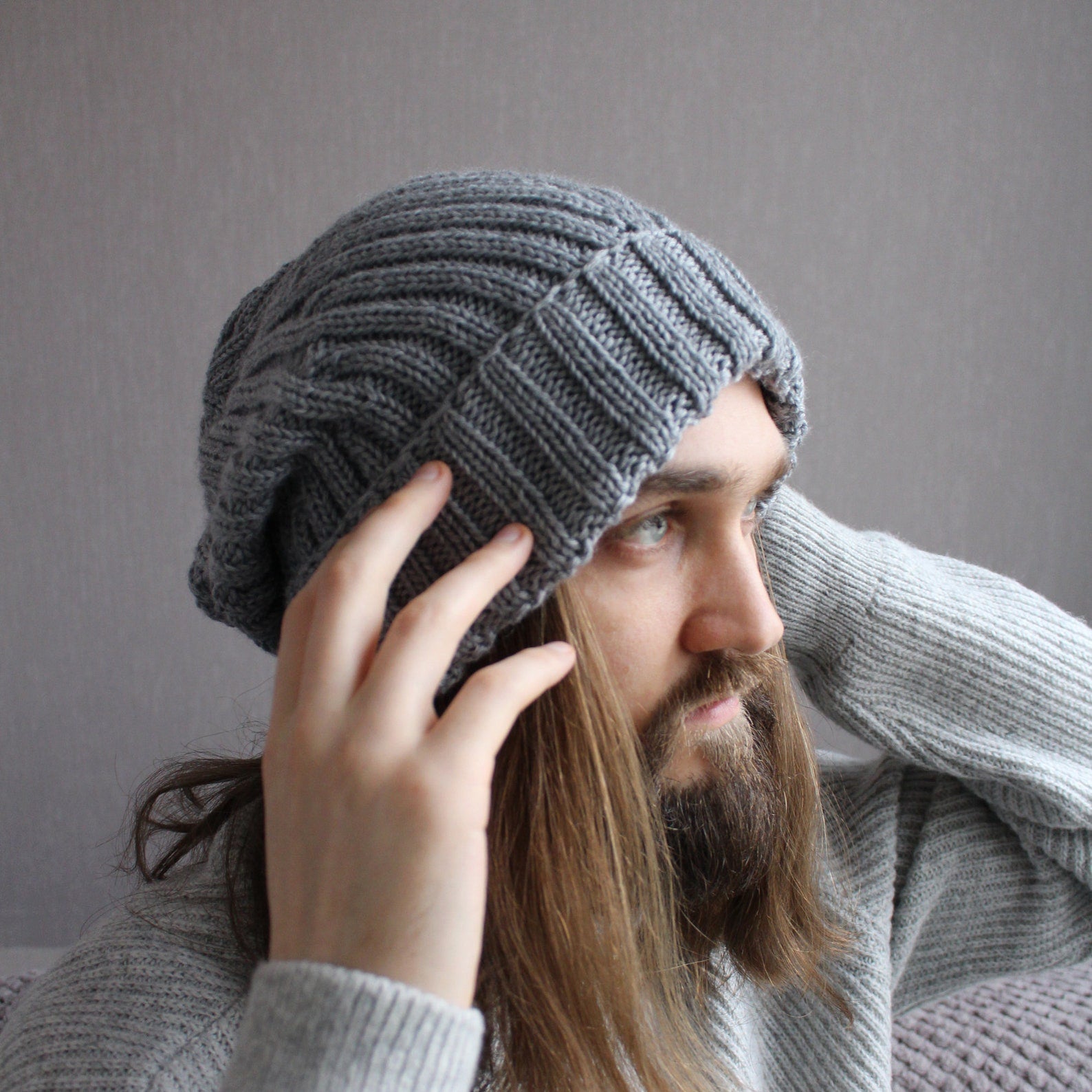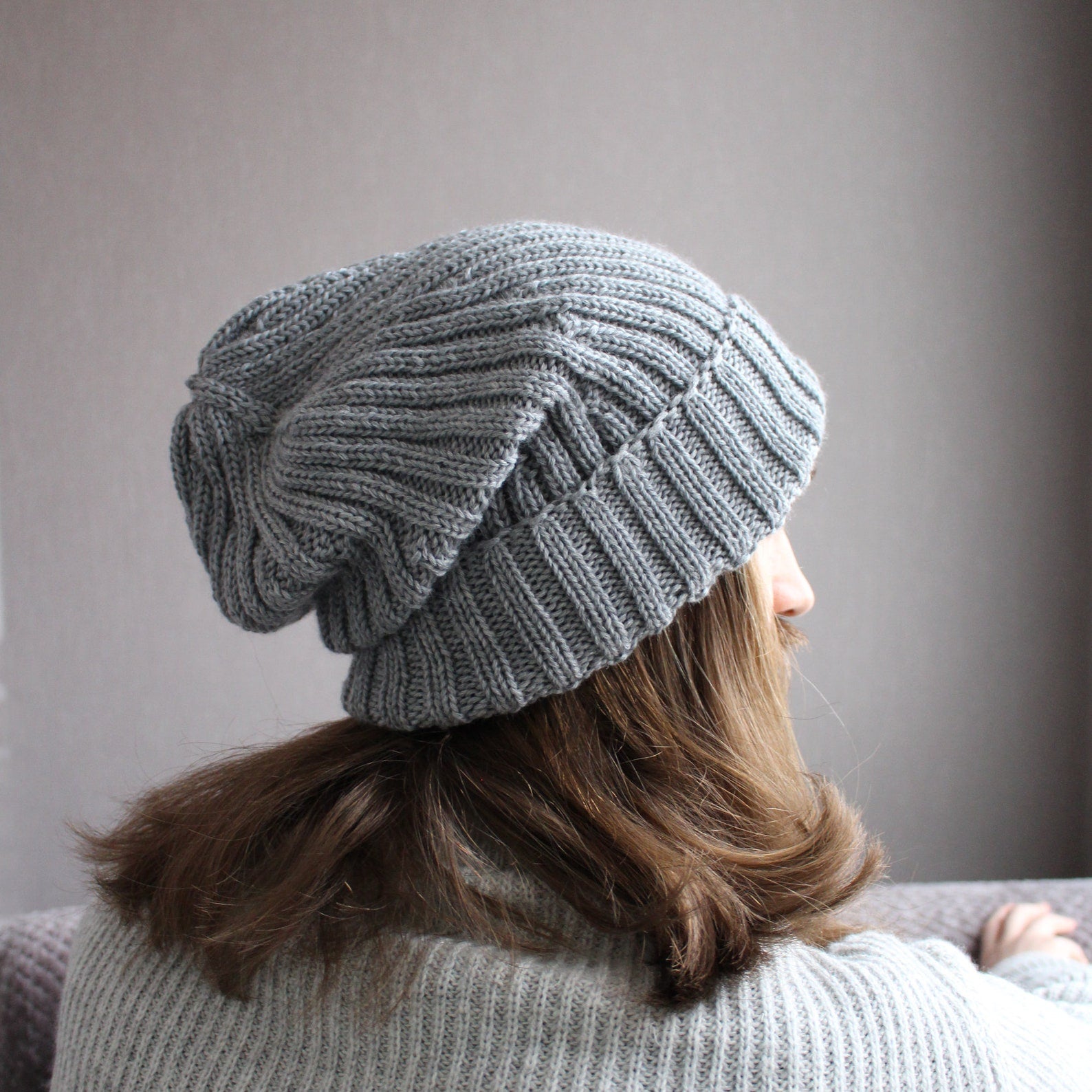 Gray 100% extra-fine merino beanie, Hipster big hair baggy hat