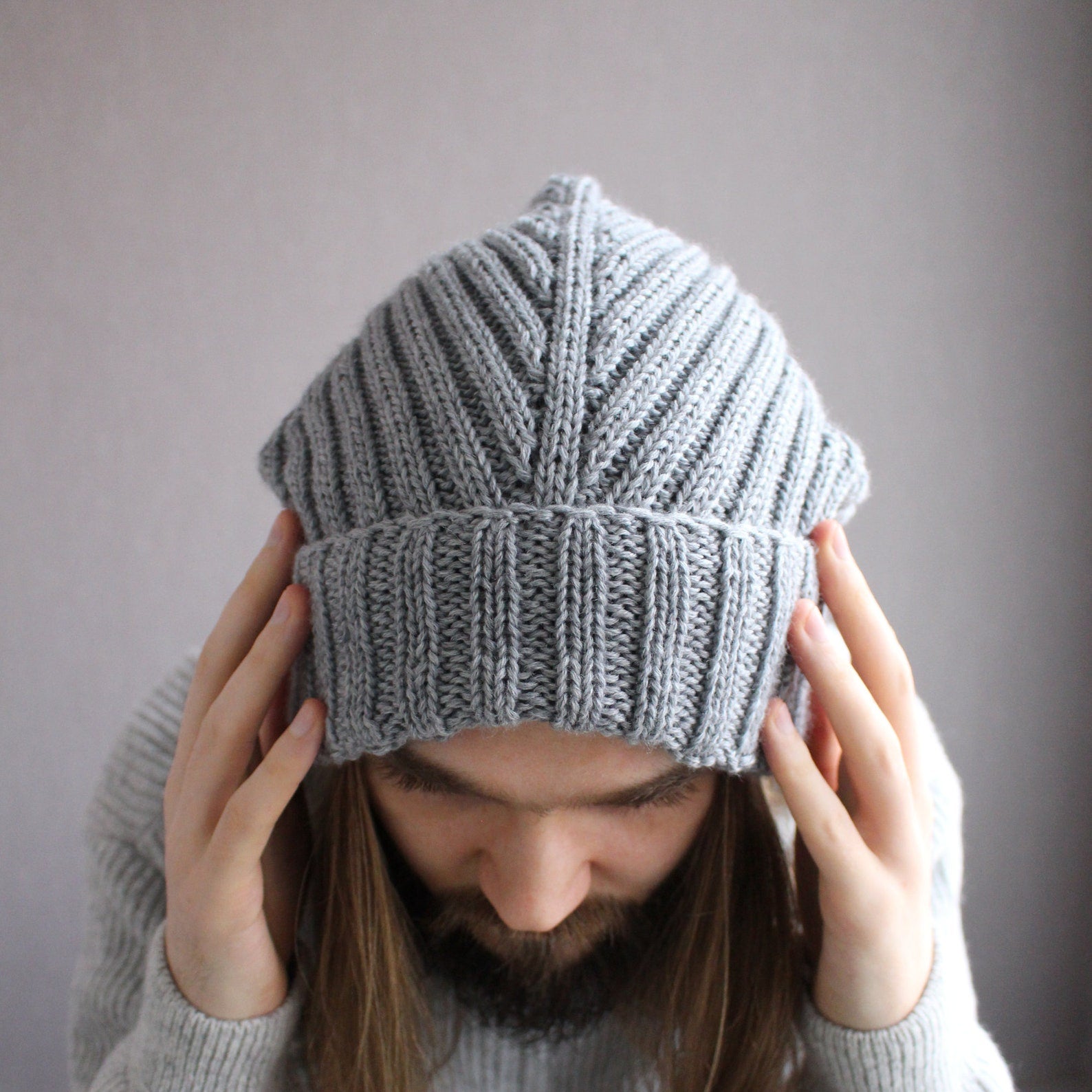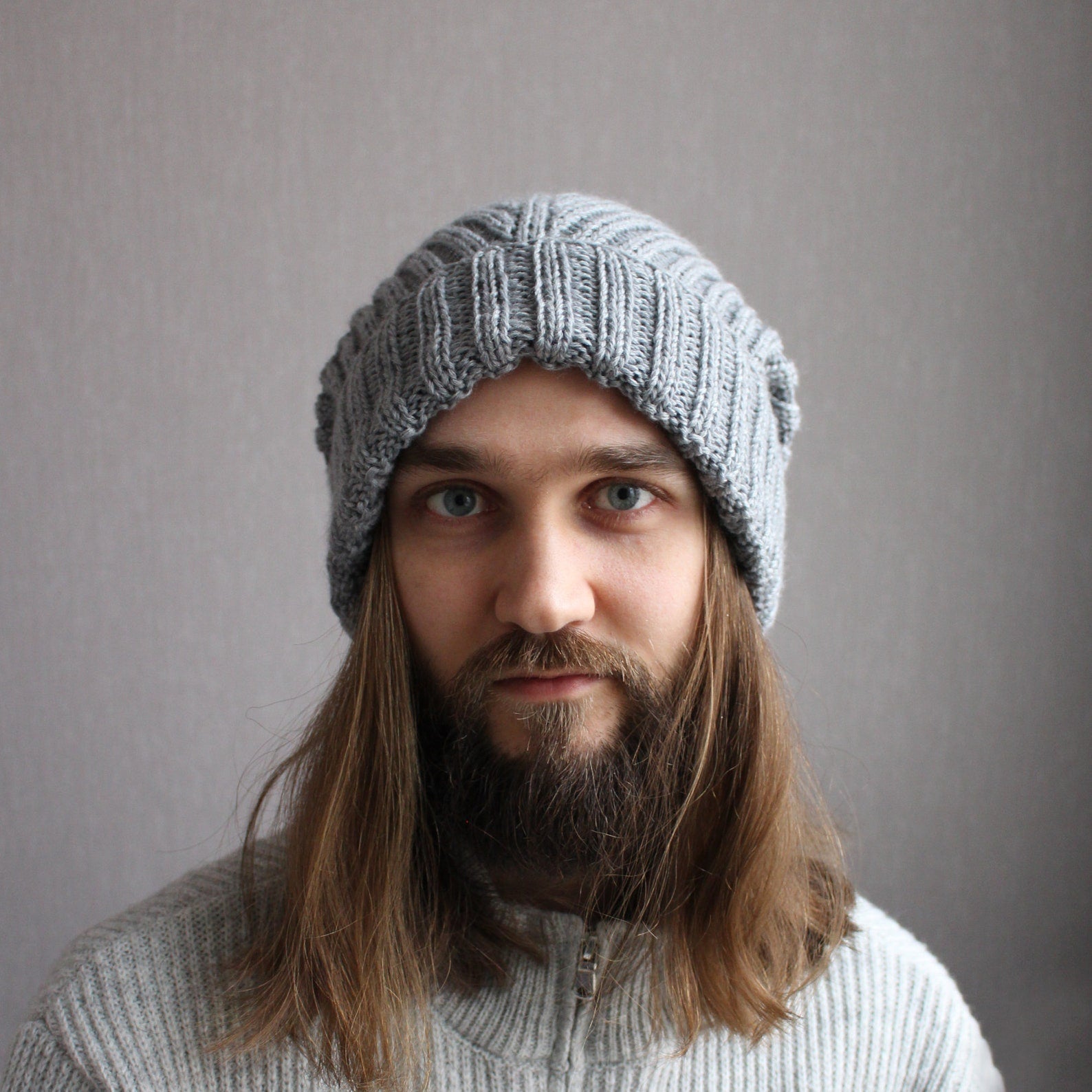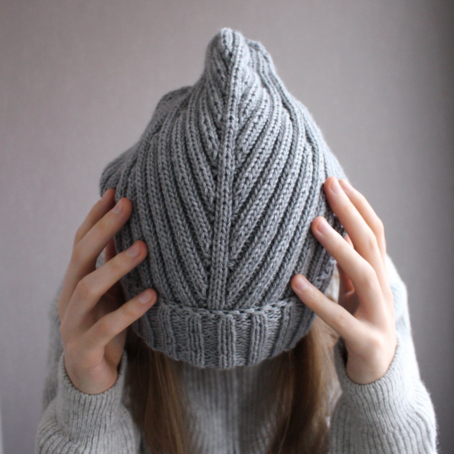 Gray 100% extra-fine merino beanie, Hipster big hair baggy hat