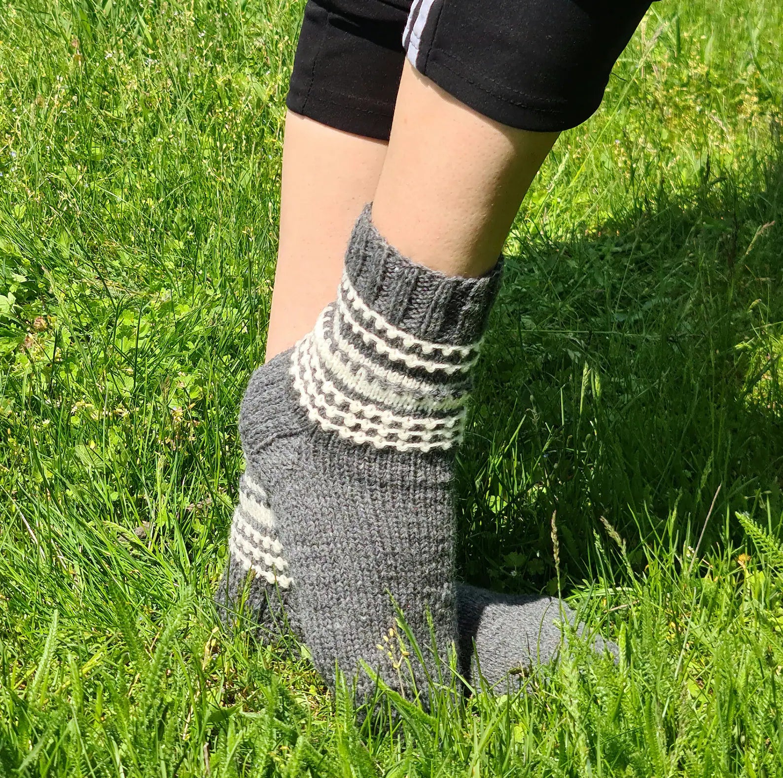 — Hand-Knit Quality: Every stitch tells a story of craftsmanship and care, making these socks not just an accessory but a piece of wearable art.