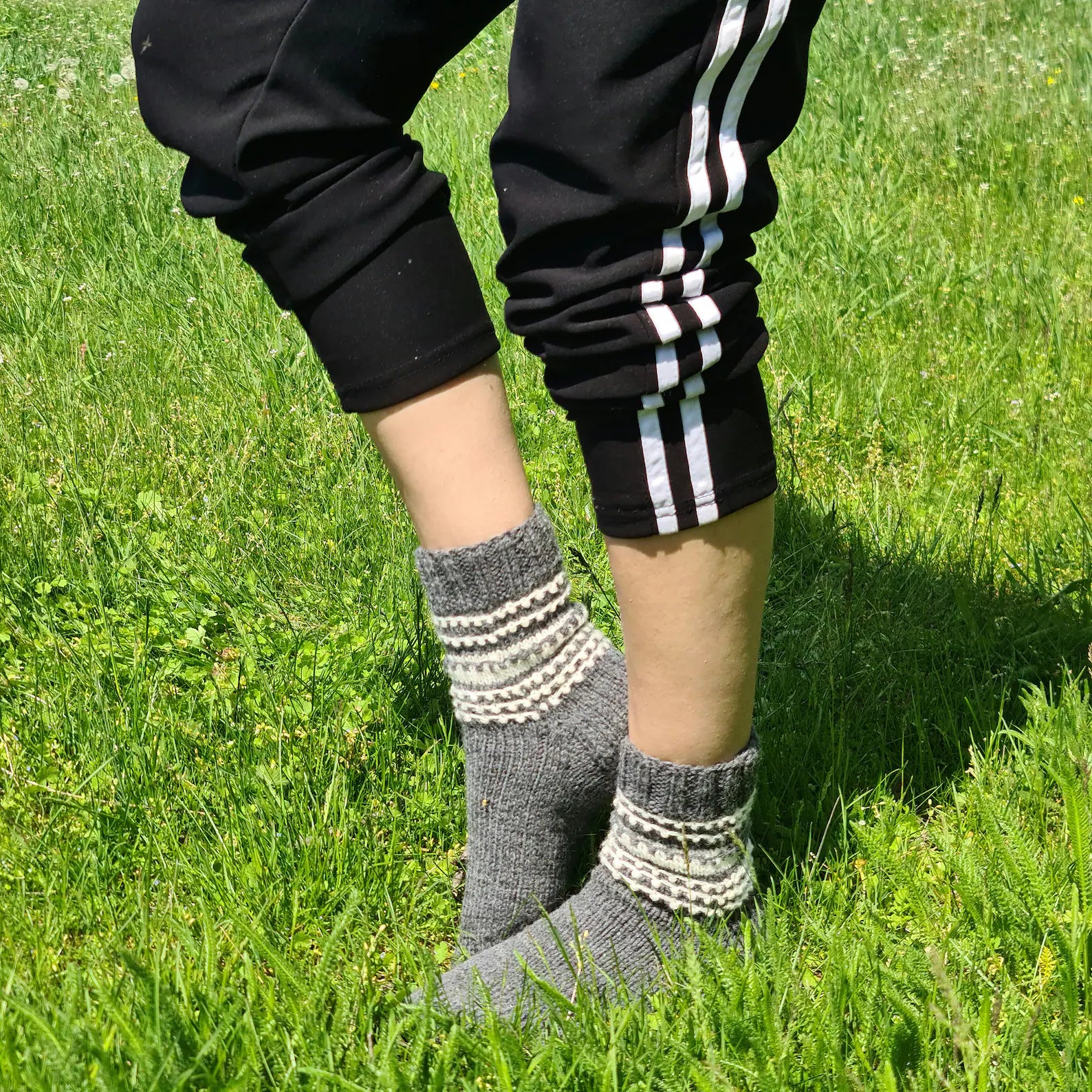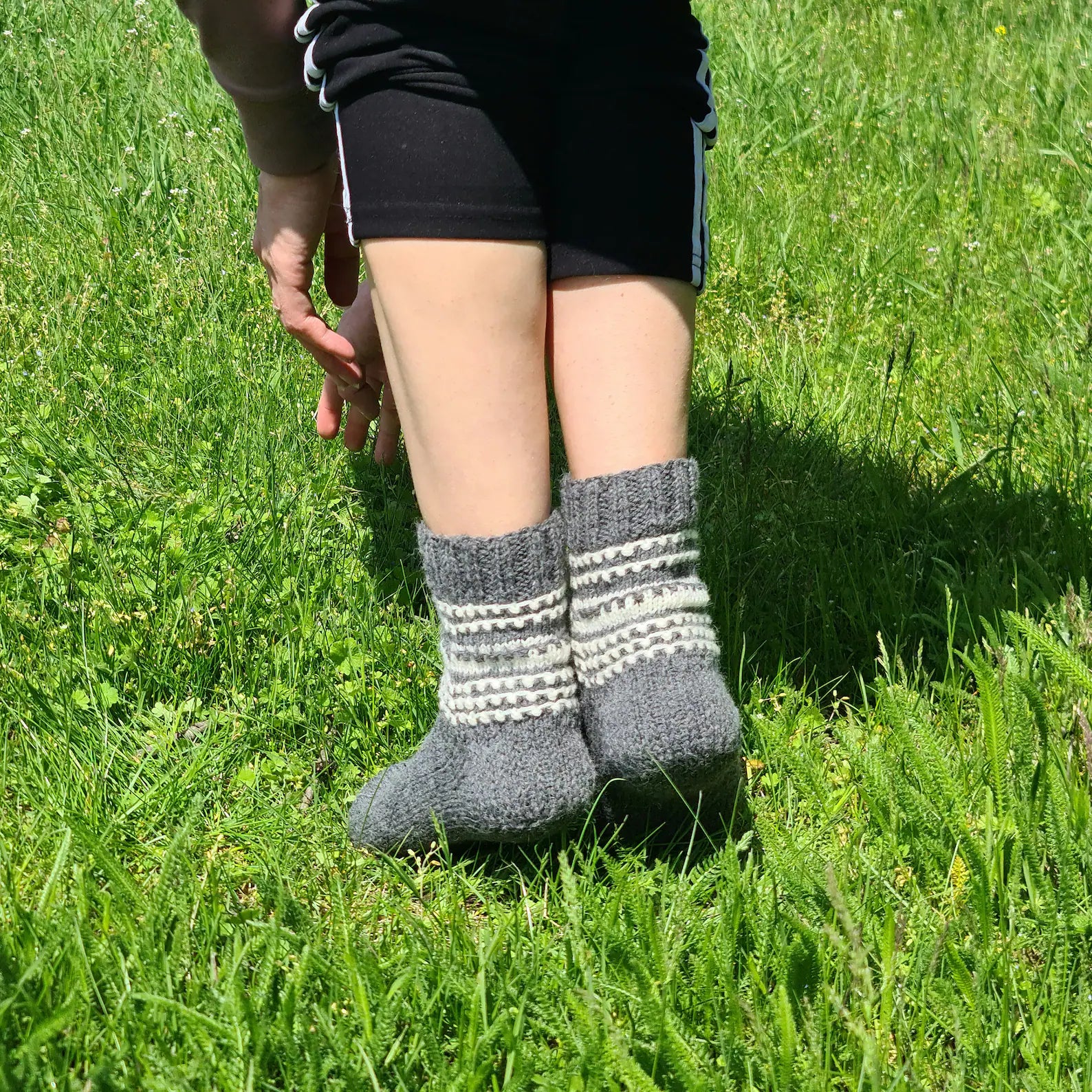 Step into comfort and style with our Hand-Knit Gray Socks with White Stripes, the perfect addition to your winter wardrobe. Each pair is carefully crafted by skilled artisans, ensuring not only warmth but a stylish flair to your daily wear.