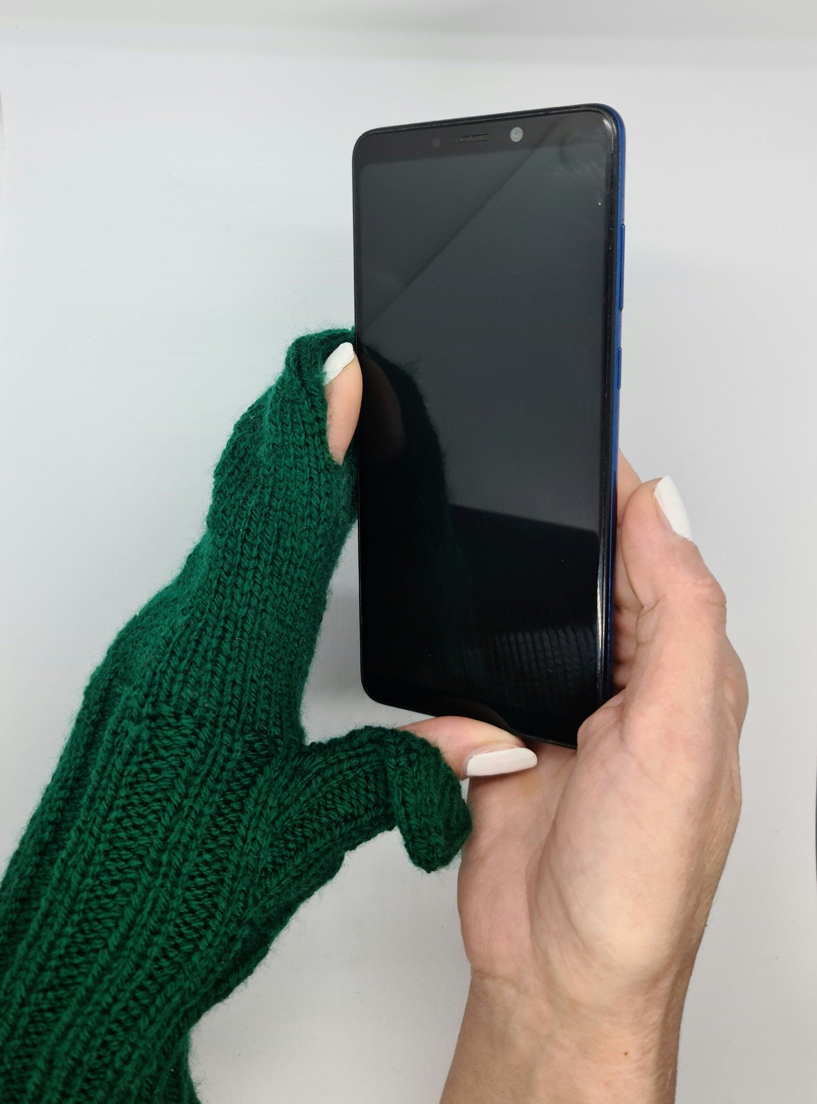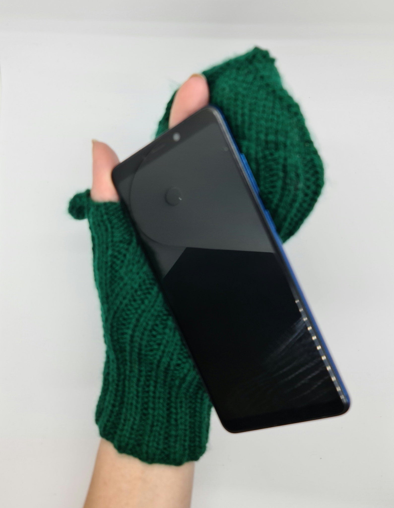 Green gloves with finger holes