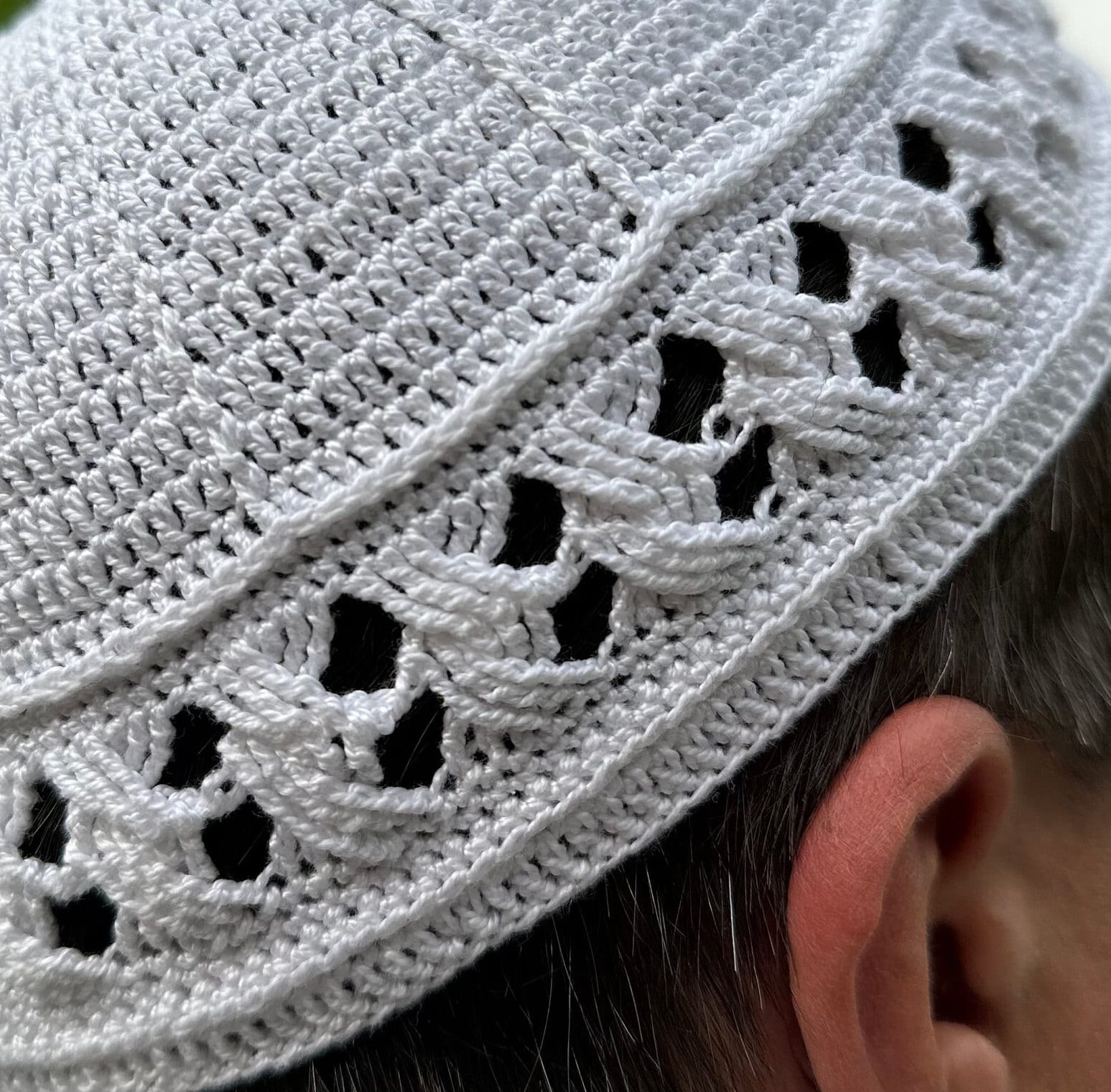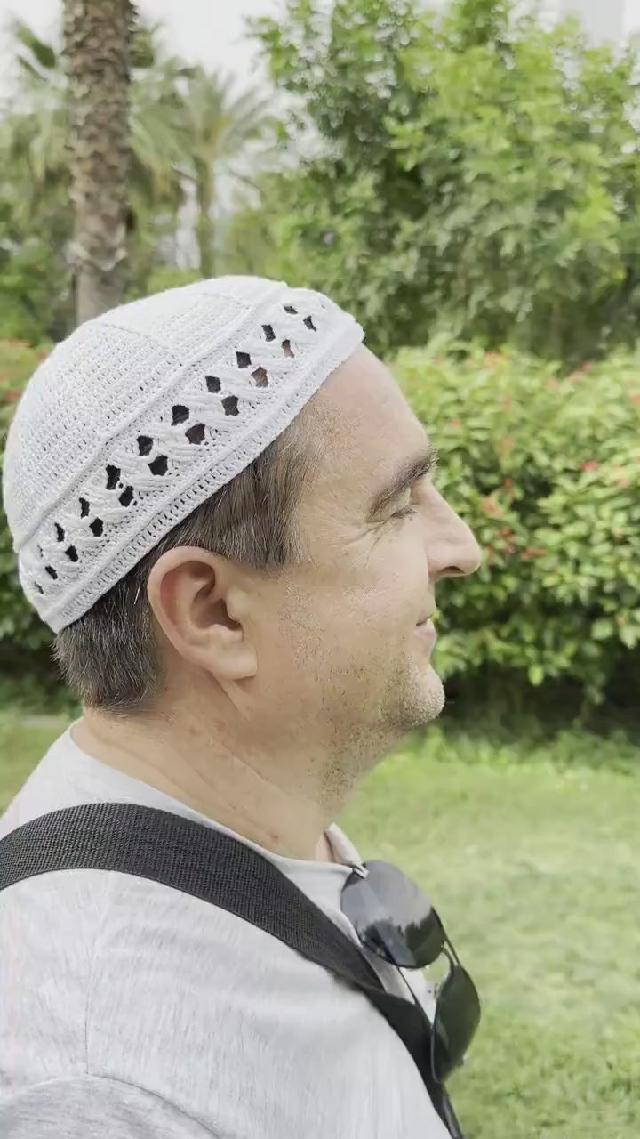 Celebrate tradition and craftsmanship with our hand-crocheted Kufi cap, meticulously created with pristine white cotton yarn. This Kufi cap embodies a blend of spiritual significance and cultural heritage. It is designed to provide a comfortable and breathable fit, suitable for daily wear and special occasions alike. The intricate openwork pattern around the cap ensures airflow, making it ideal for keeping cool on warm days, while its snug design offers warmth during cooler times.