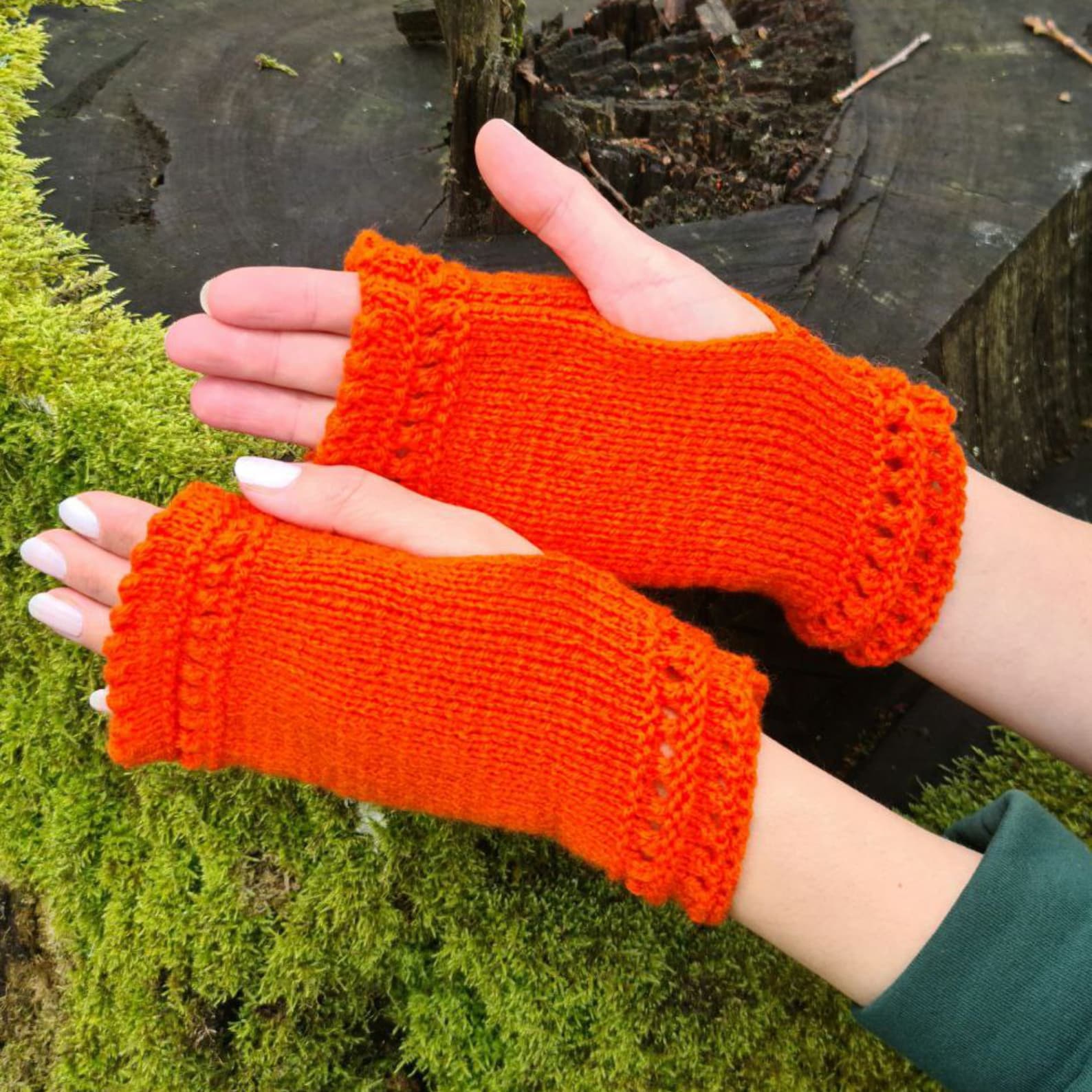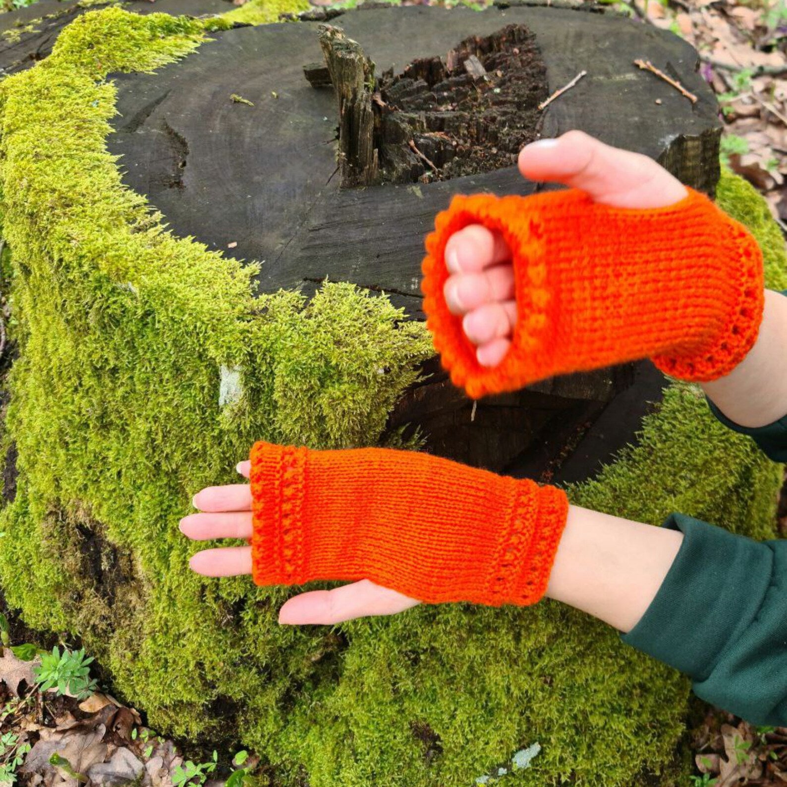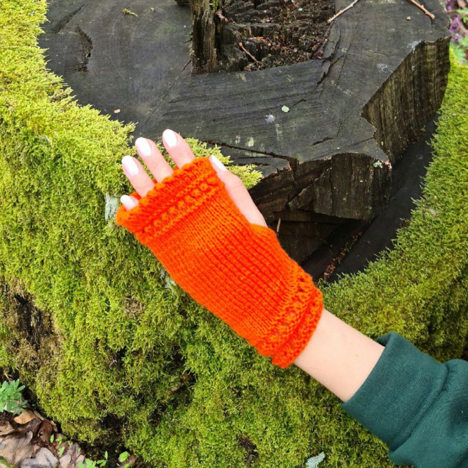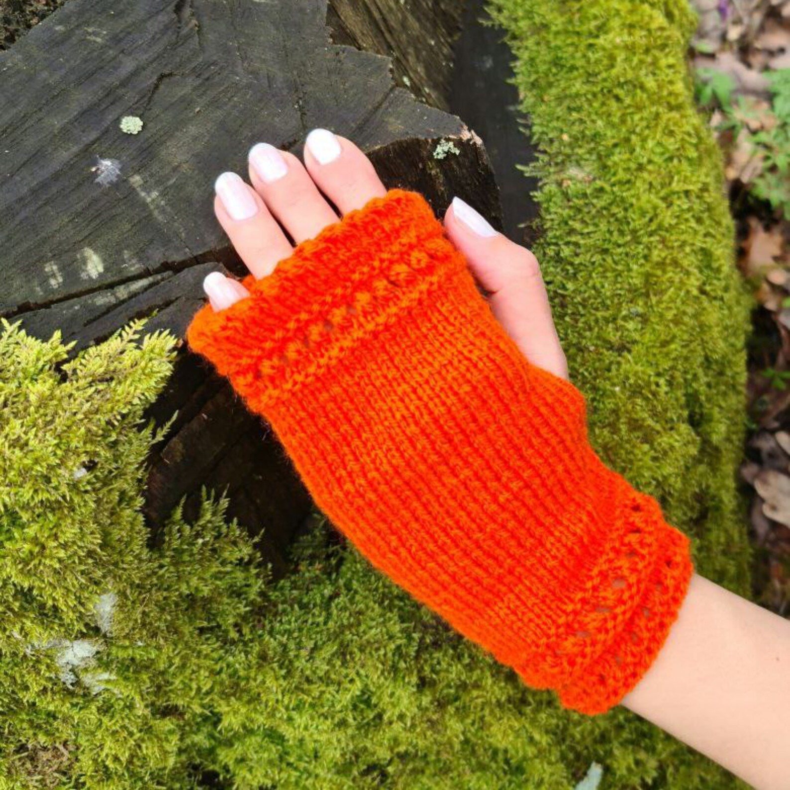 Orange Stretchy Fingerless Gloves, Dog walking mittens