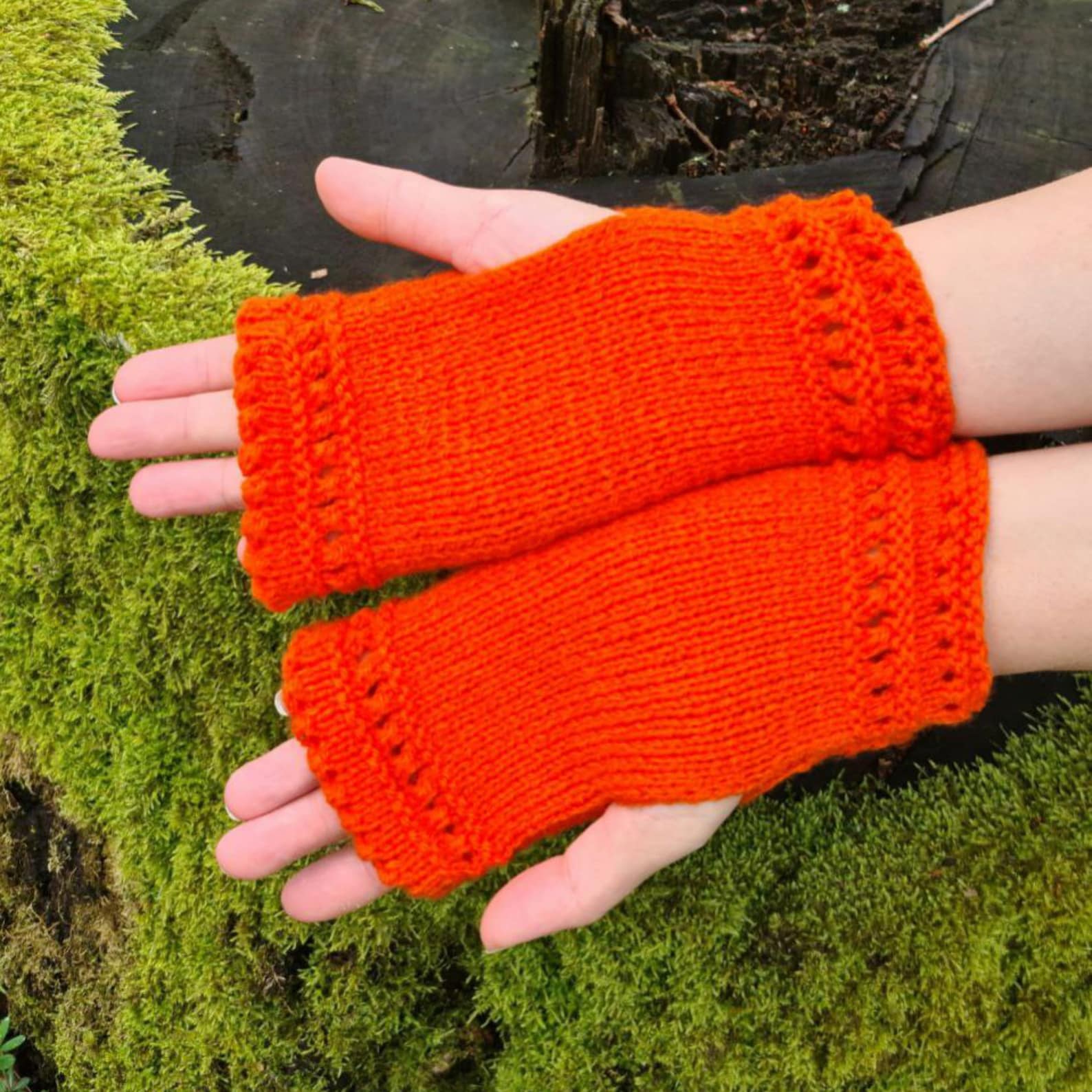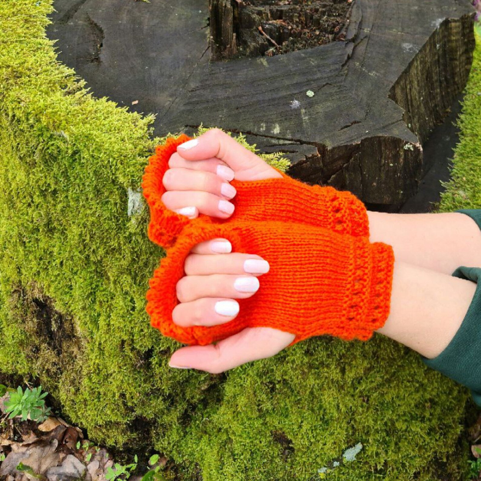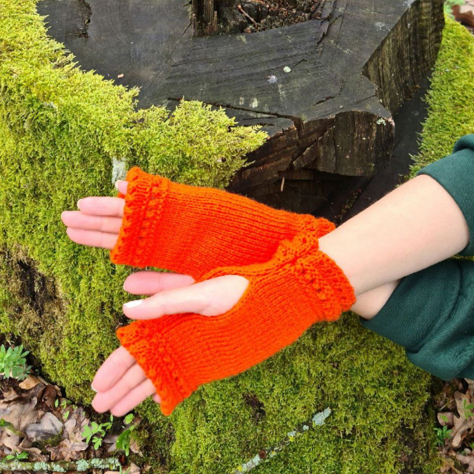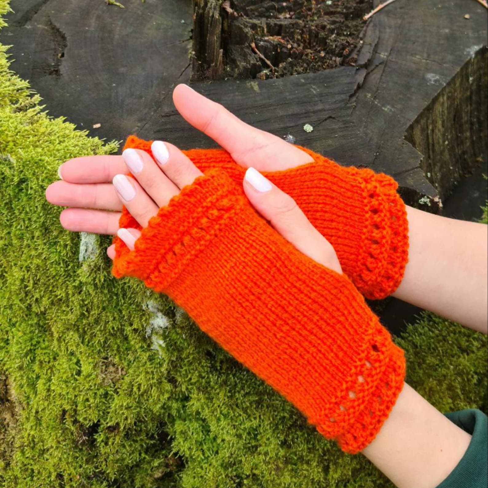 Orange Stretchy Fingerless Gloves, Dog walking mittens