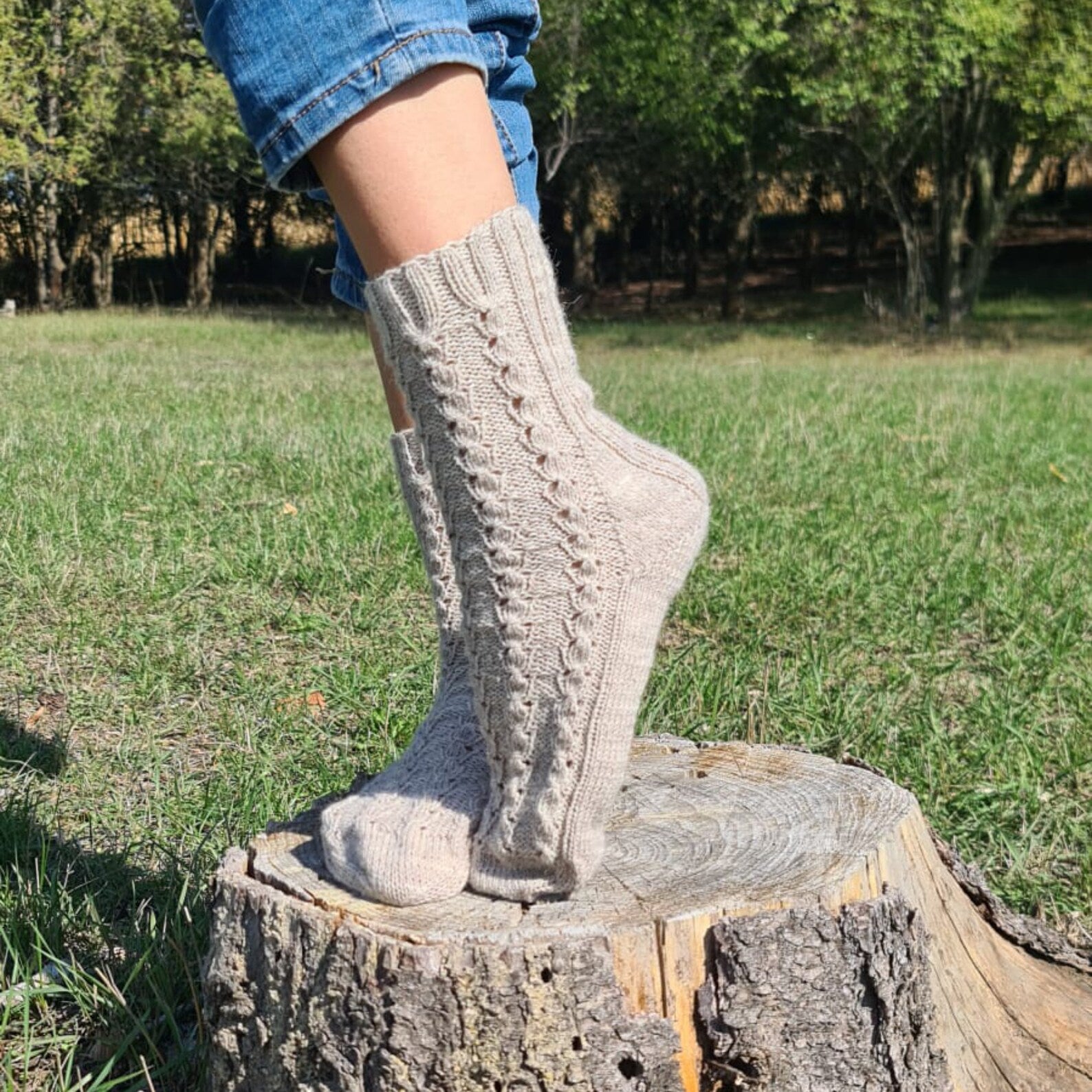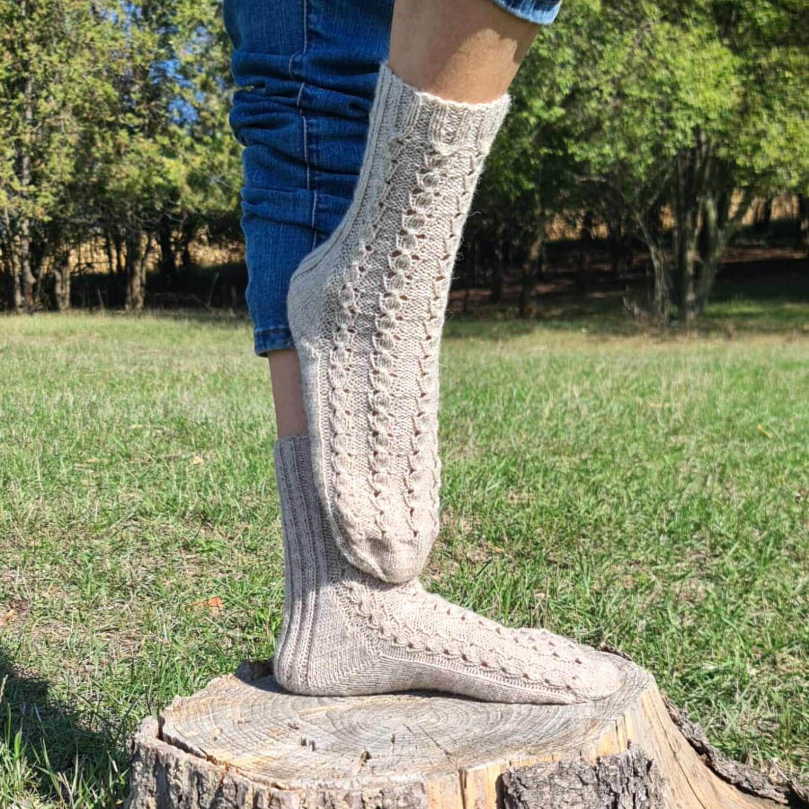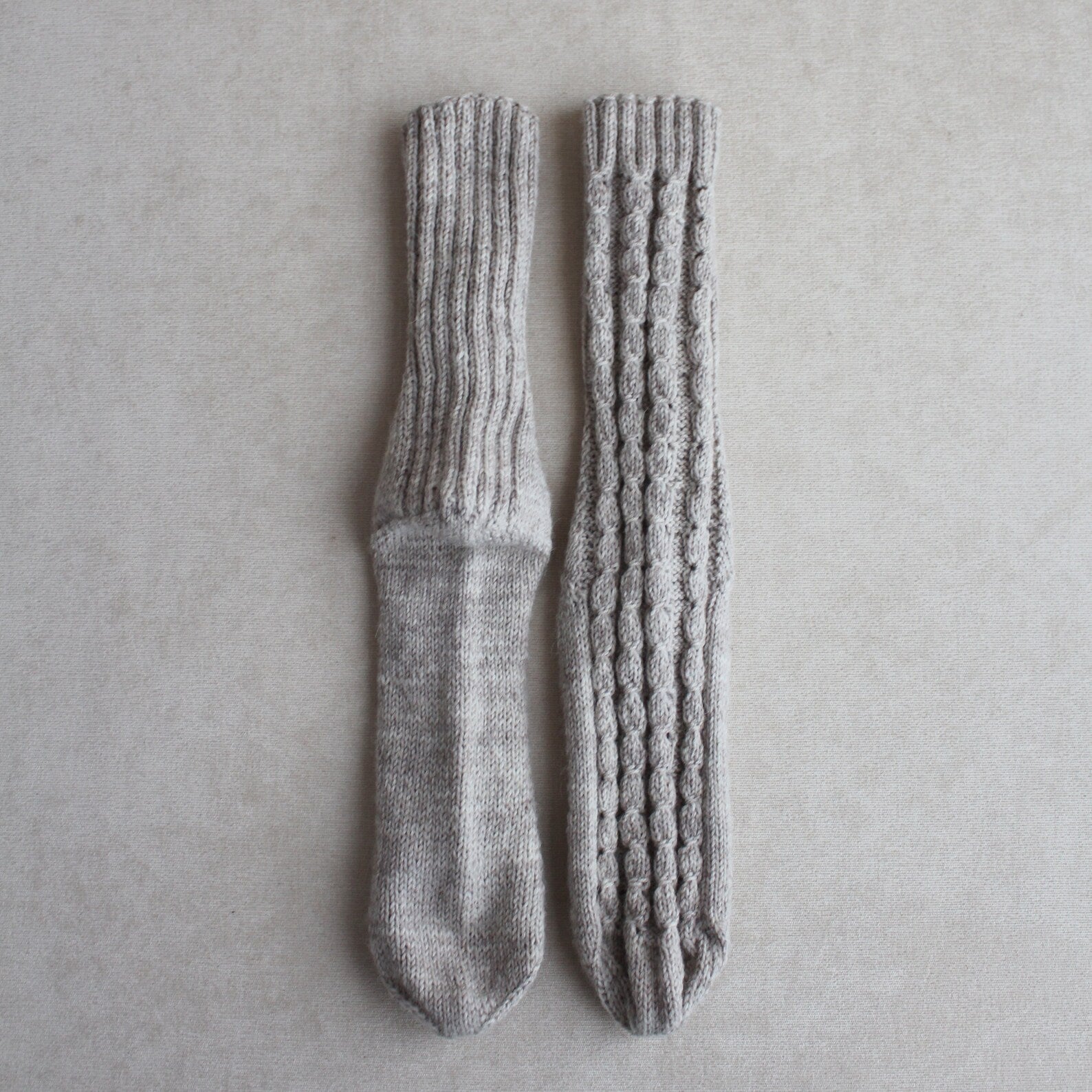 Lace hand-knit socks are the perfect gift for your loved ones this winter. They're made of high-quality wool blend yarn and are designed to keep your feet warm and cozy. These beige warm socks are also elastic, so they can be used as bed socks or house socks.
