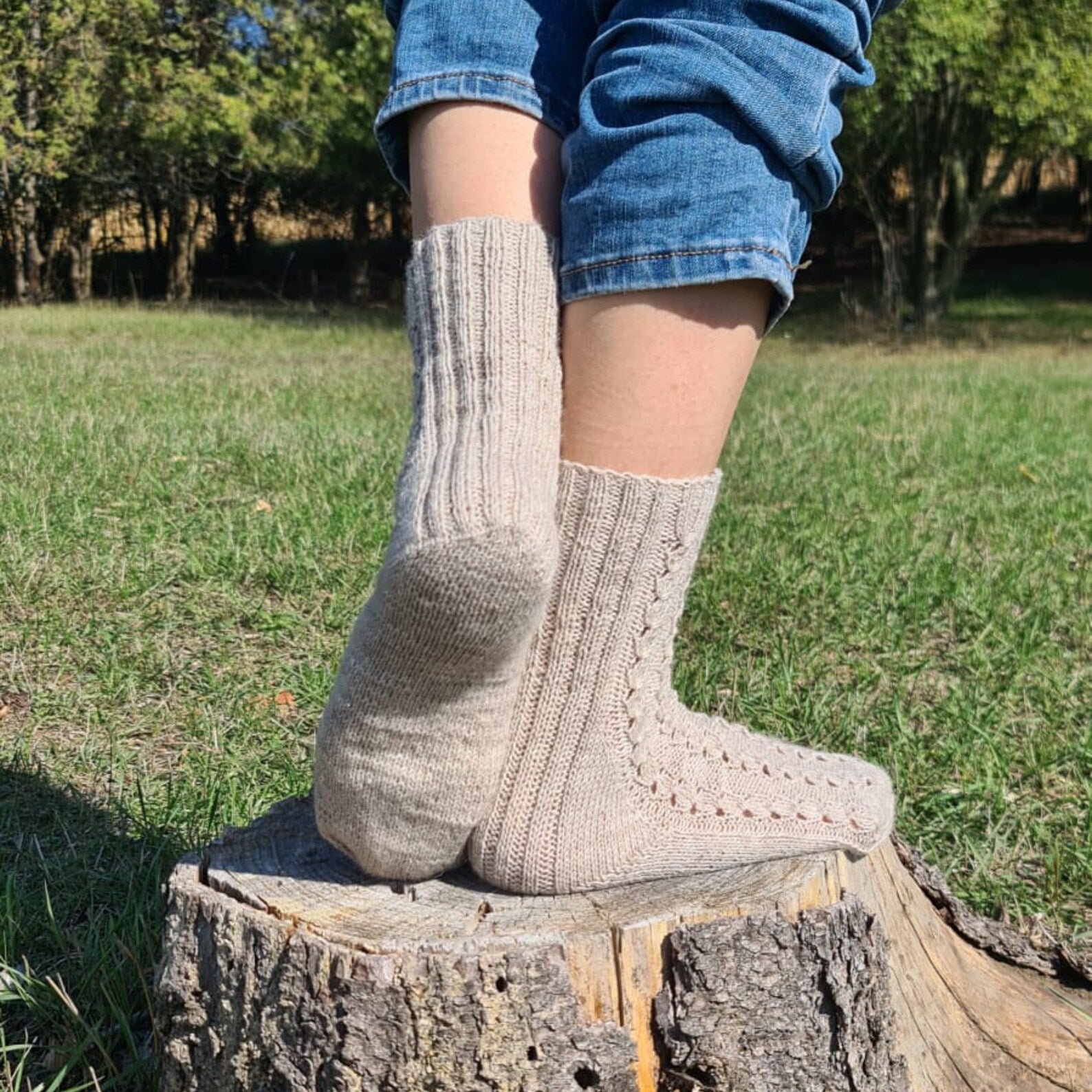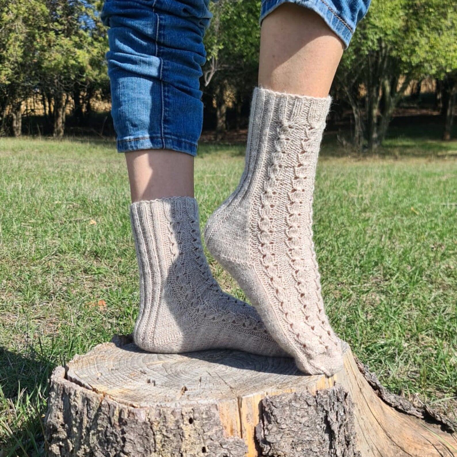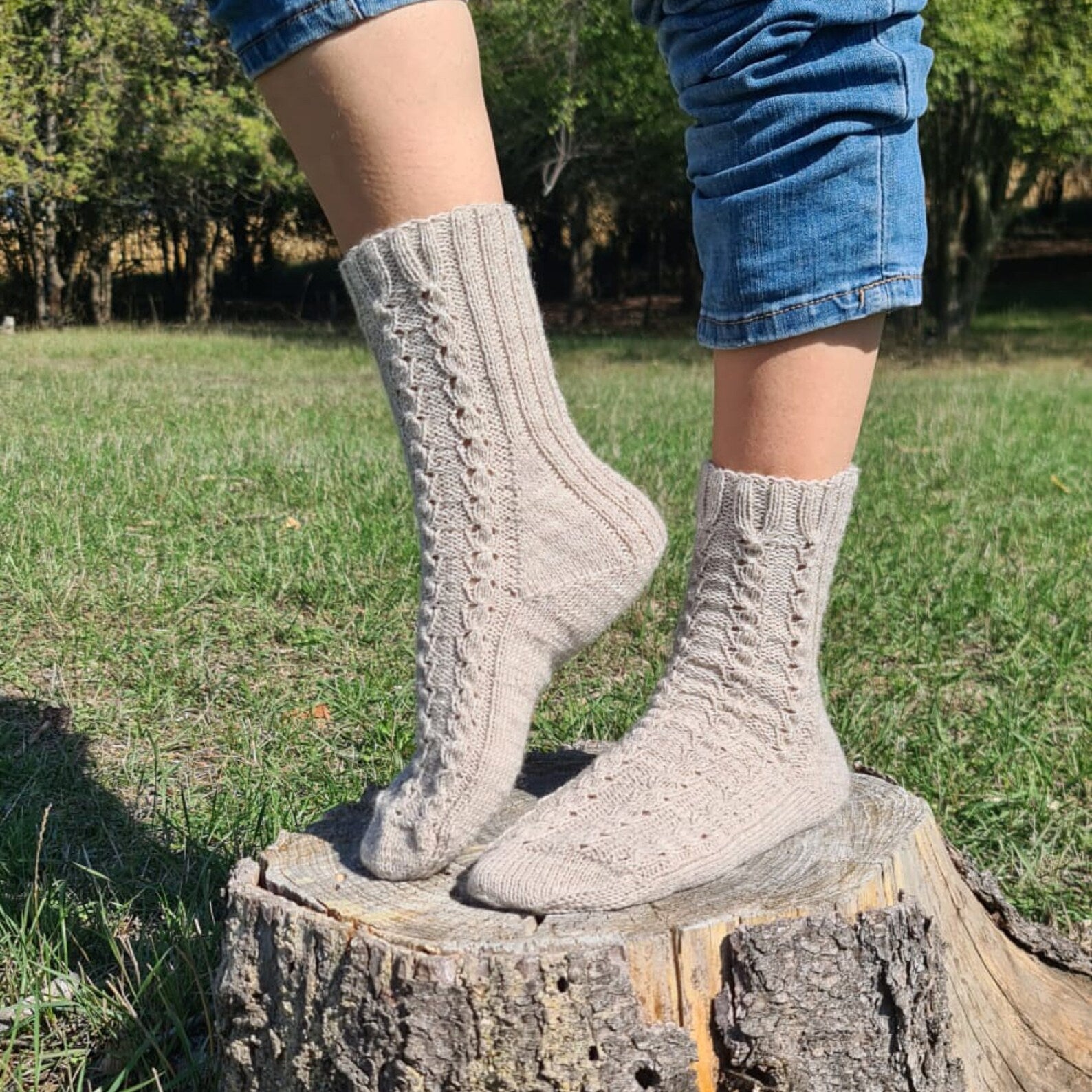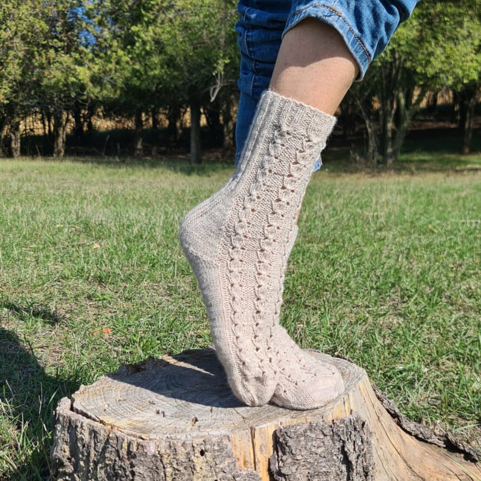 Lace hand-knit socks are the perfect gift for your loved ones this winter. They're made of high-quality wool blend yarn and are designed to keep your feet warm and cozy. These beige warm socks are also elastic, so they can be used as bed socks or house socks.
