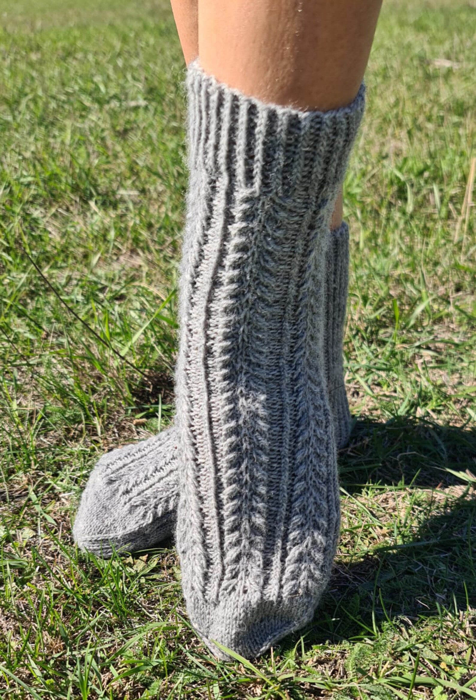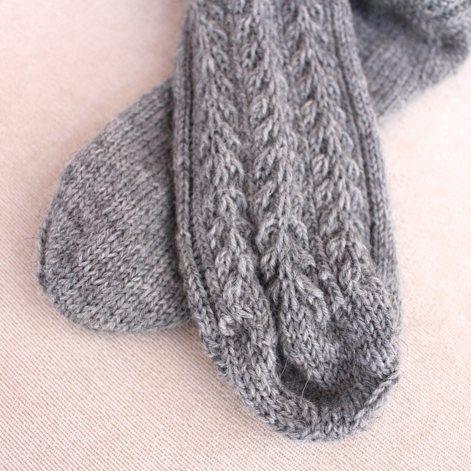 These handmade gray wool socks are perfect for women who want to look stylish and stay warm. Such hand-knitted lace socks are both soft and cozy. They're also durable, so they'll last a long time. Such stylish socks are perfect for any occasion, whether you're going to work, staying at home, or going out on the town.