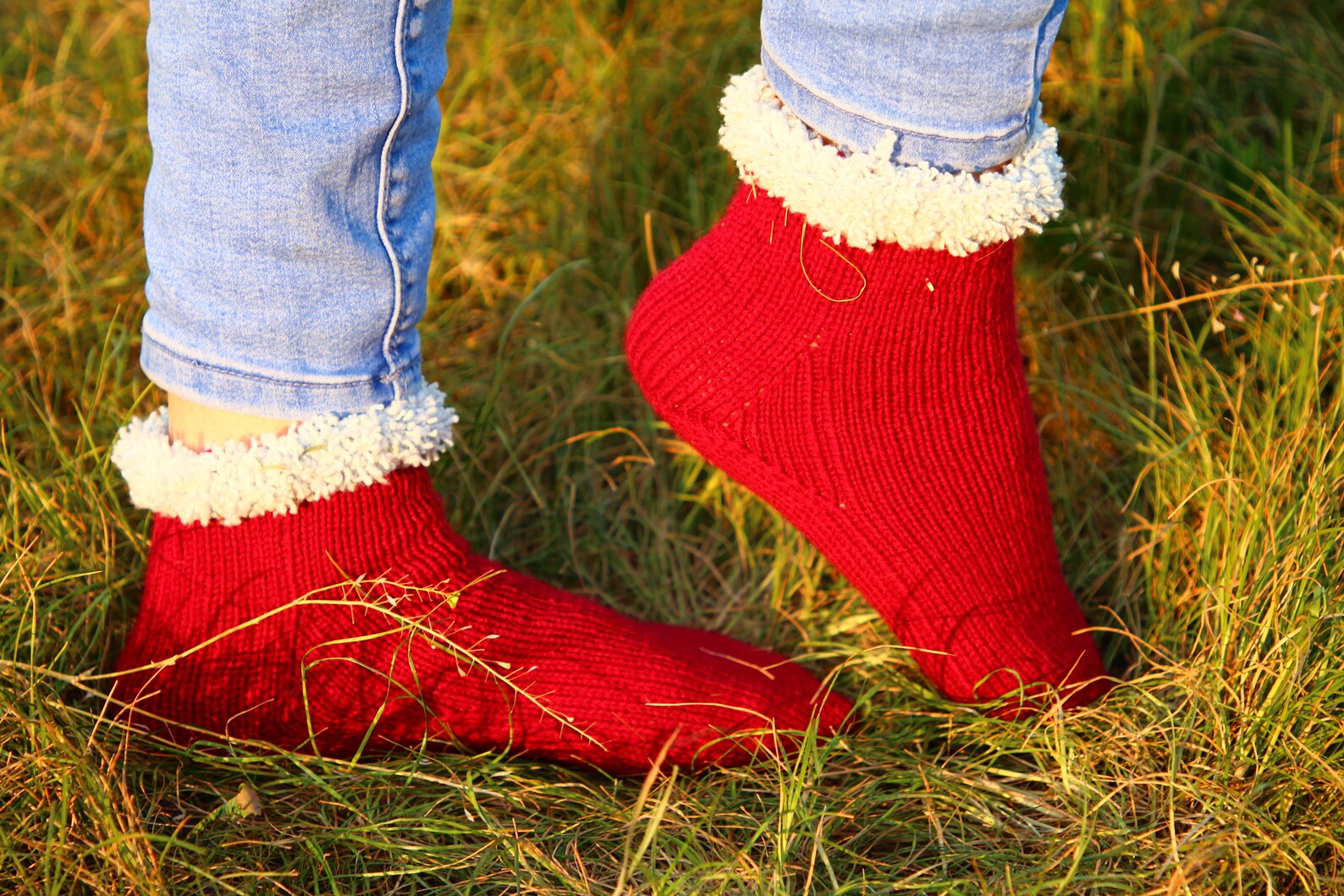 Keep your feet toasty warm this winter with these beautiful hand-knitted red wool socks, featuring cozy white cuffs. Made from high-quality wool, these socks are perfect for those chilly days when you need extra warmth and comfort. The vibrant red color adds a festive touch, making them ideal for the holiday season. These socks are perfect for lounging at home or for outdoor activities, offering both style and warmth. They make a wonderful gift for her, ensuring she stays warm and stylish all winter long.
