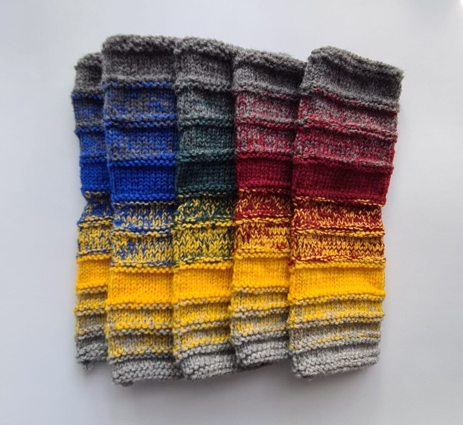 Colorful Ribbed Wool Socks, Autumn Tones Striped Knit Socks