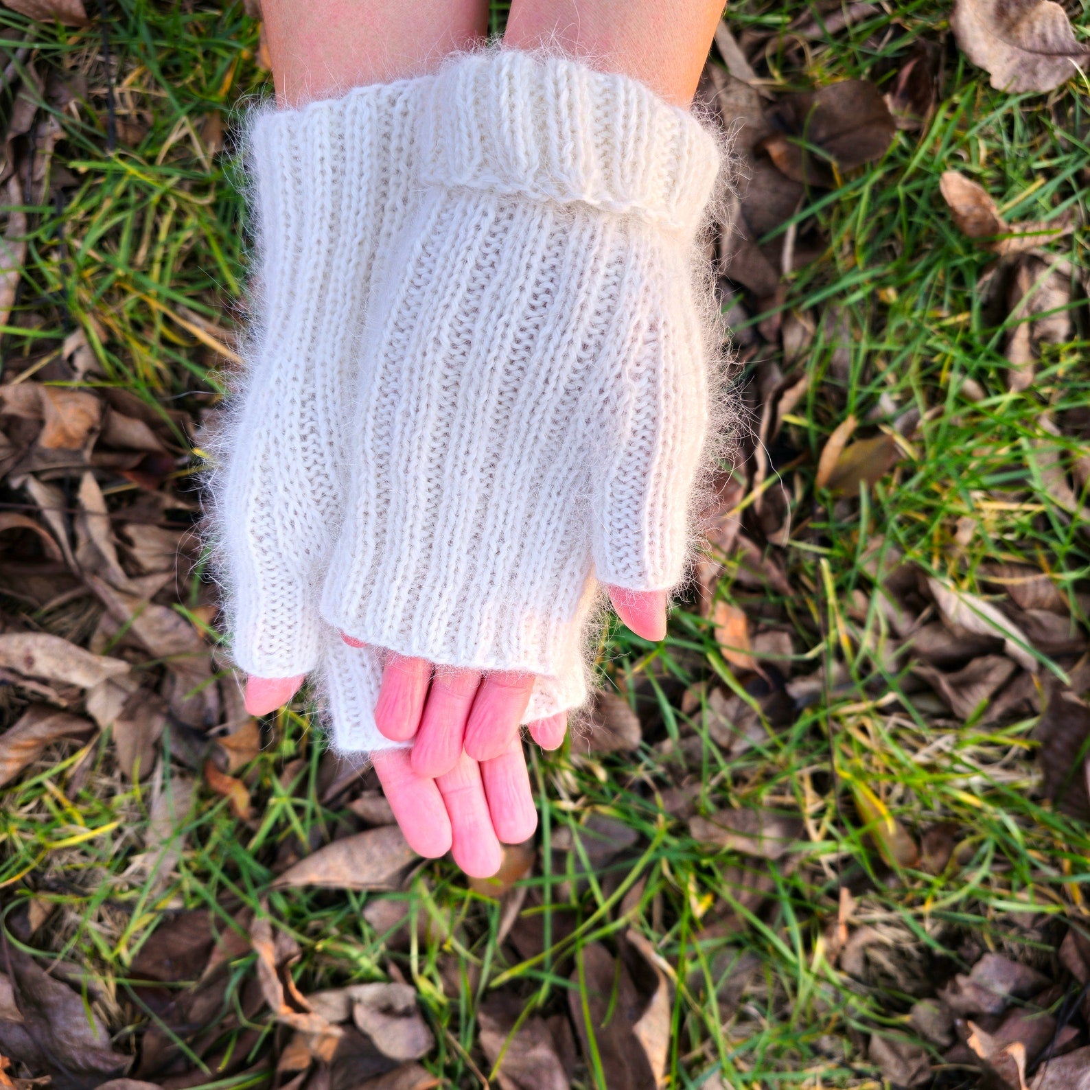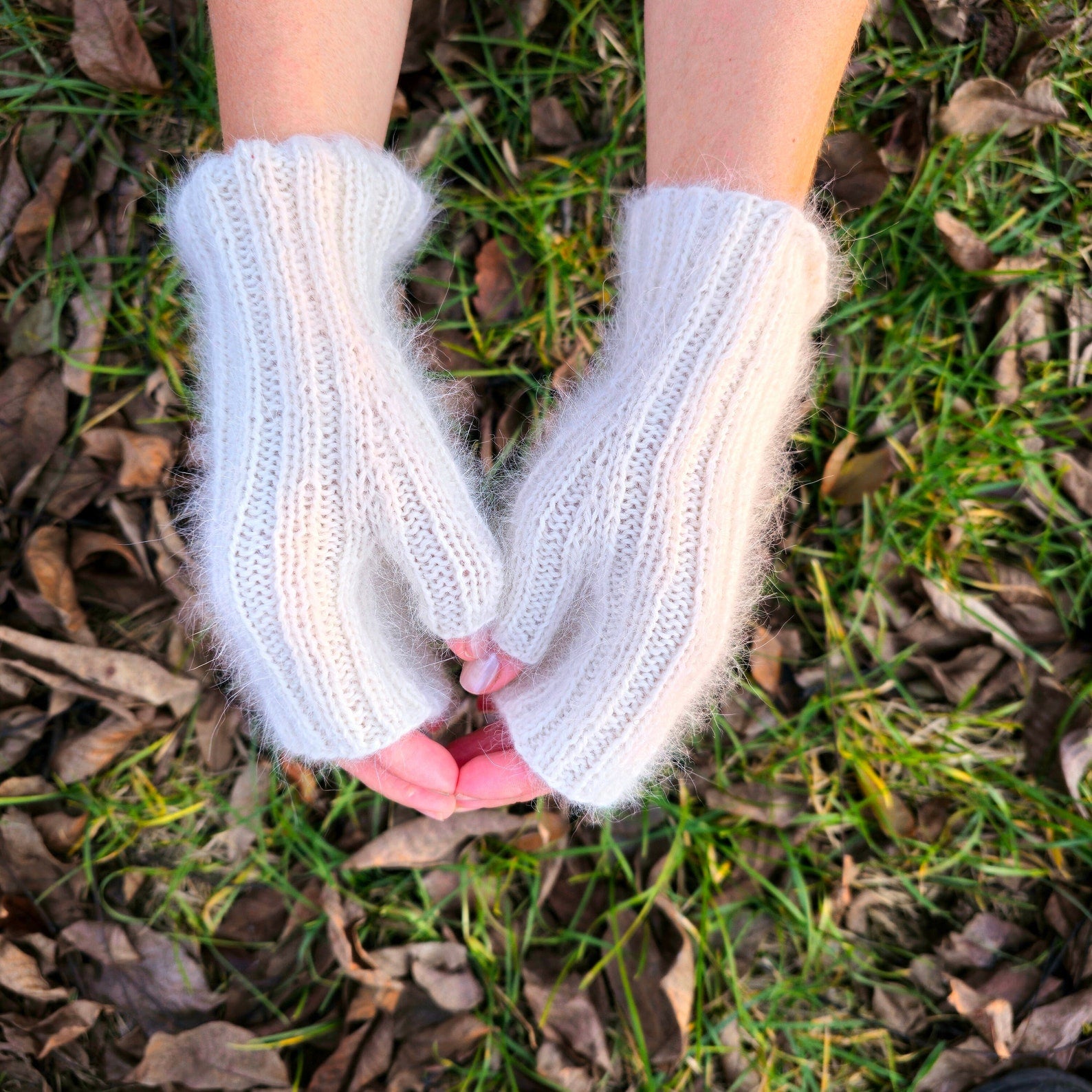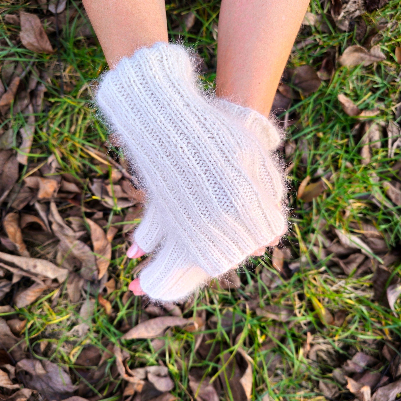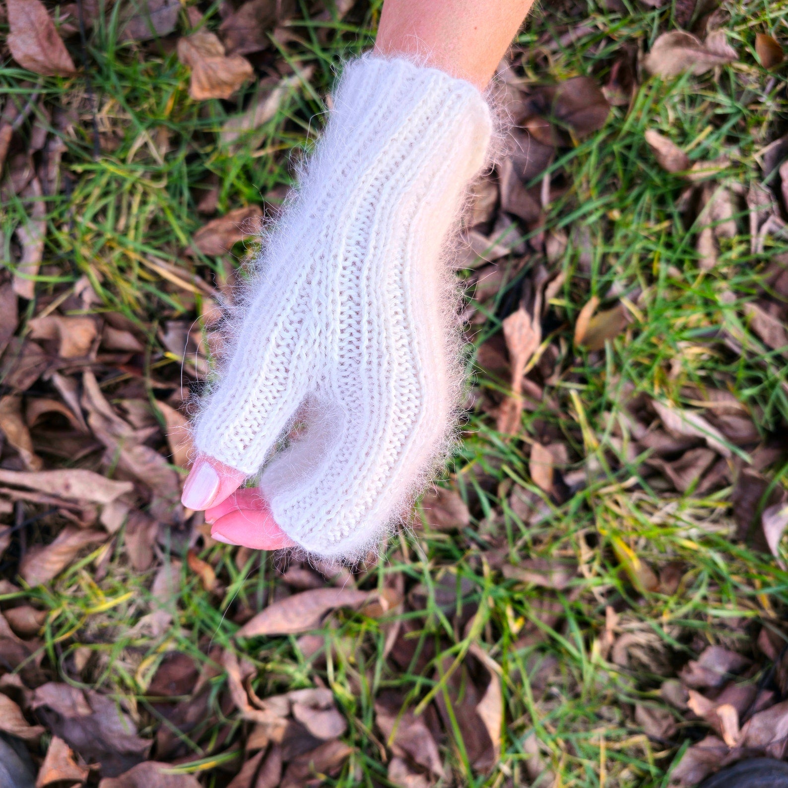White Stretchy Fingerless Gloves, Texting Driving gloves