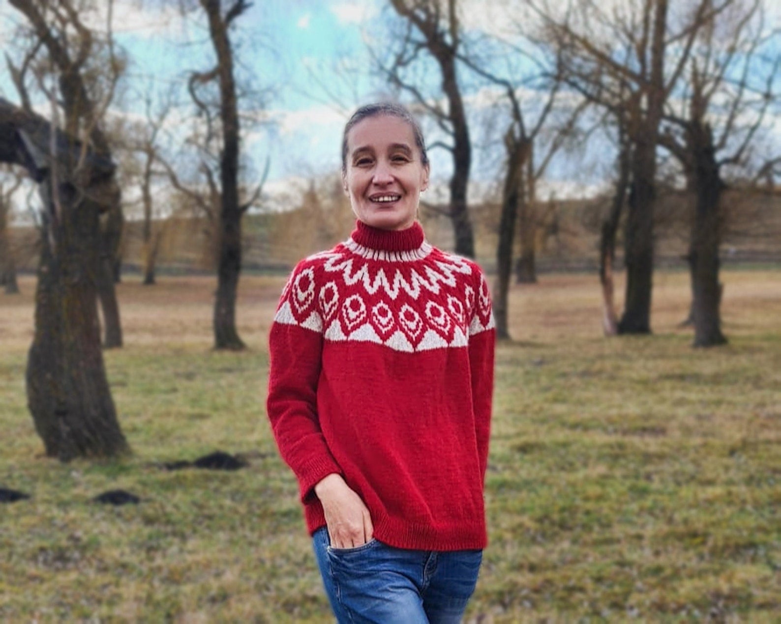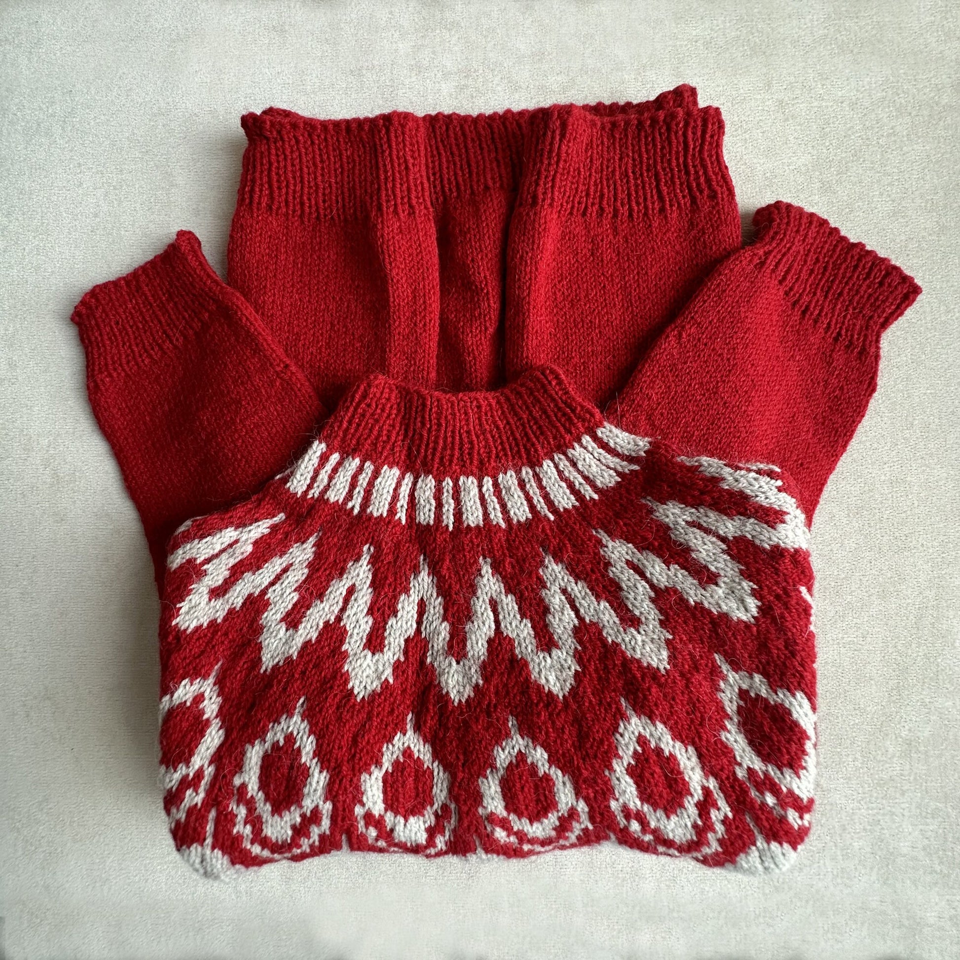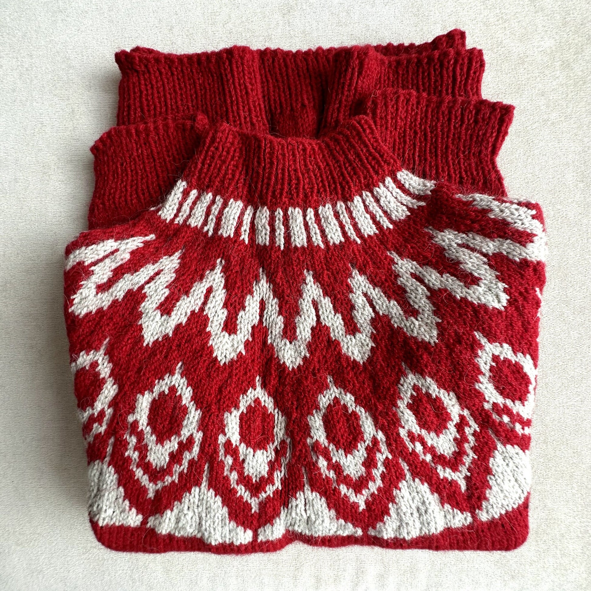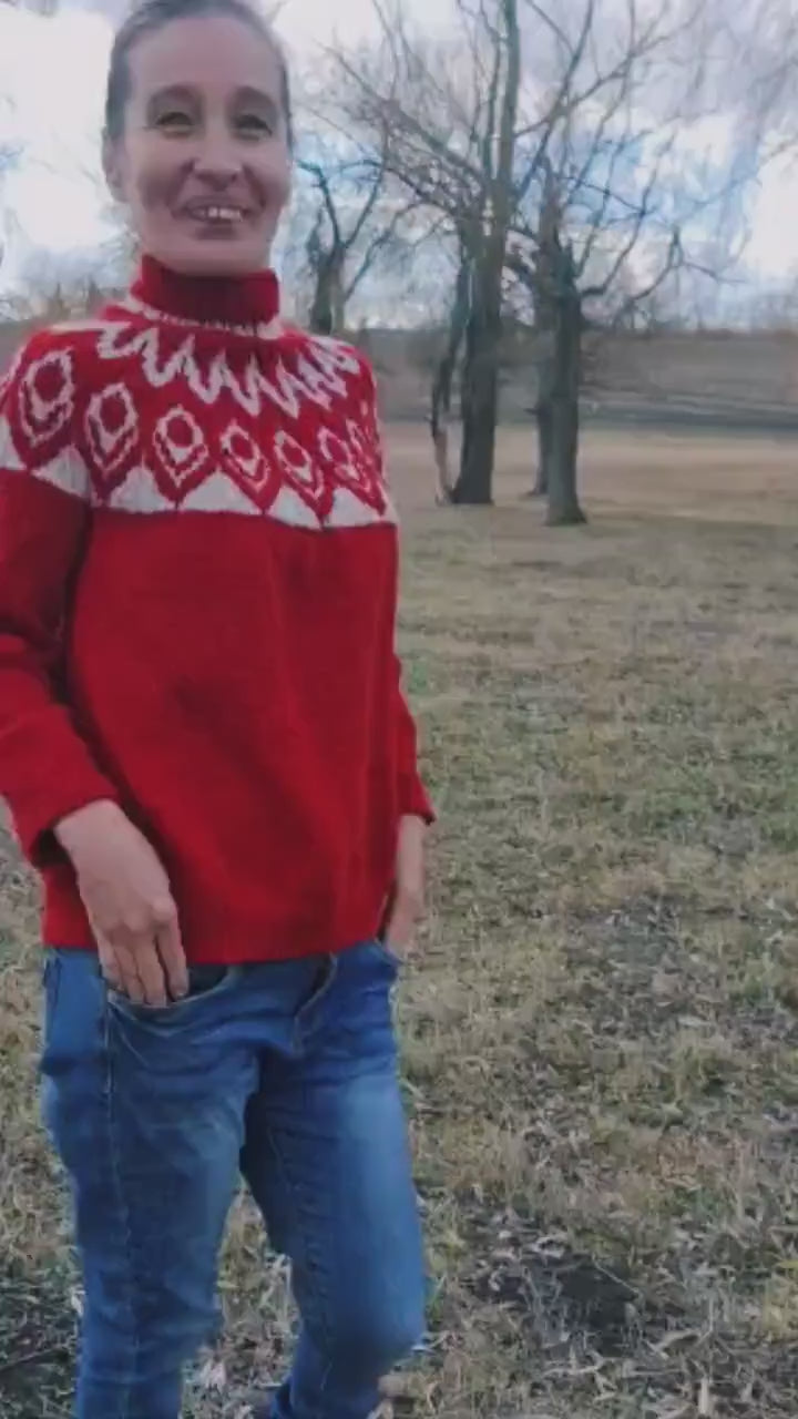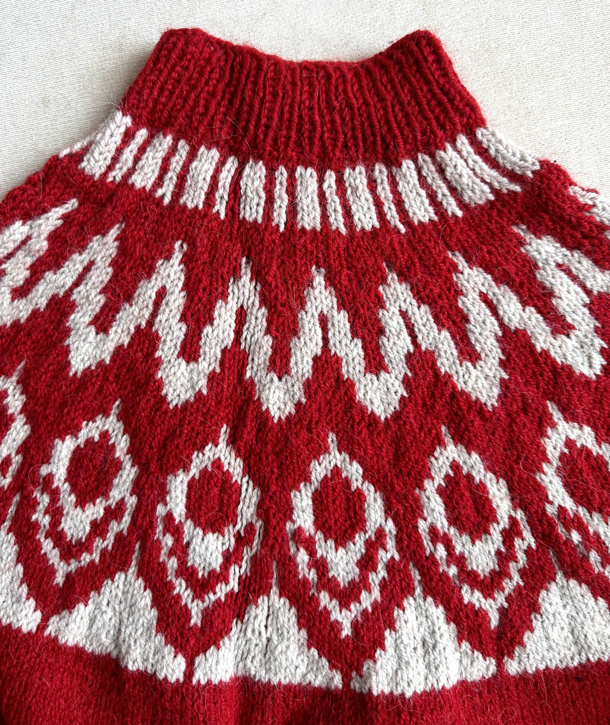 Icelandic Lopi Red Sweater, Fair isle Pullover, Long sleeve Wool Turtleneck