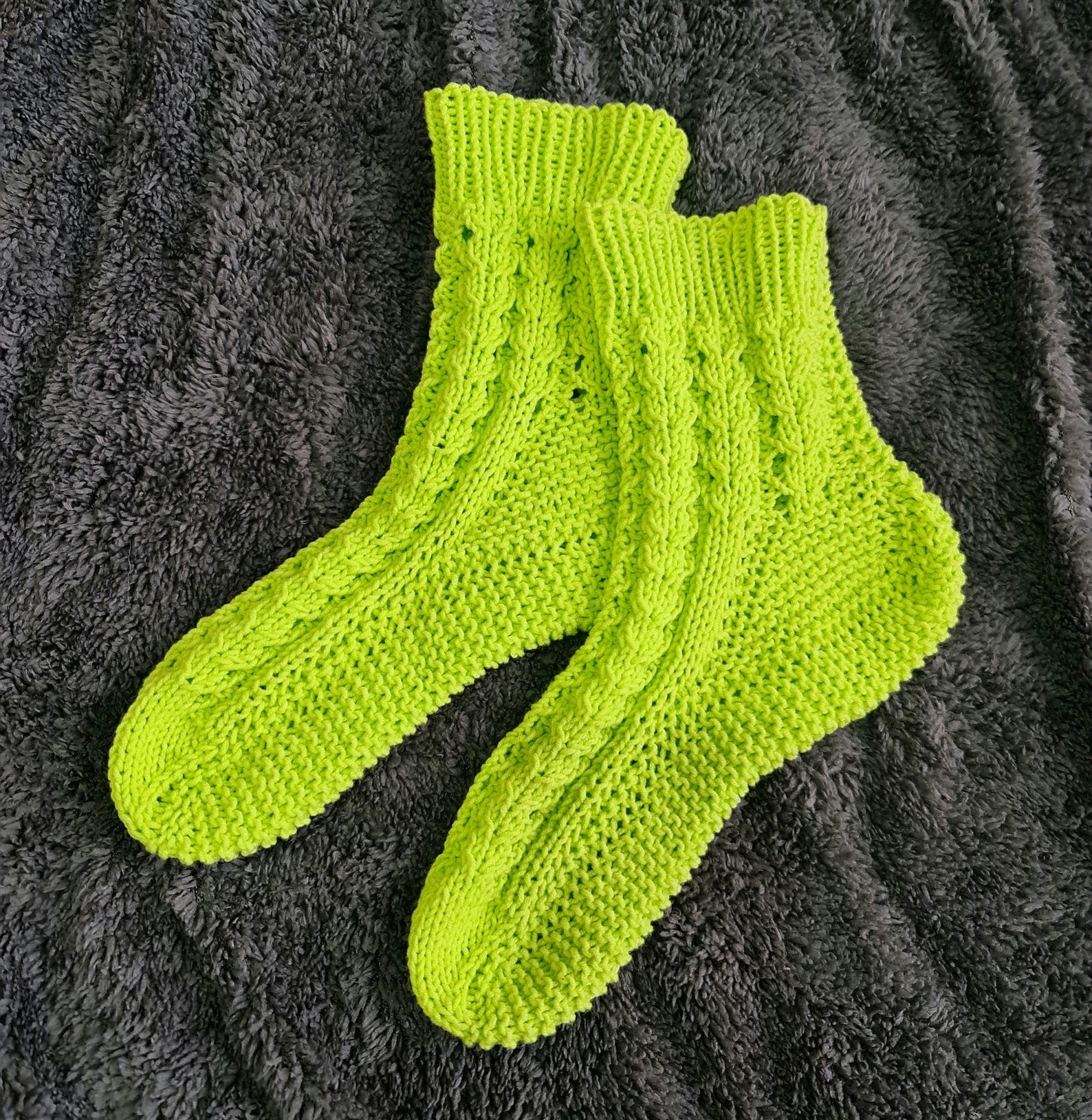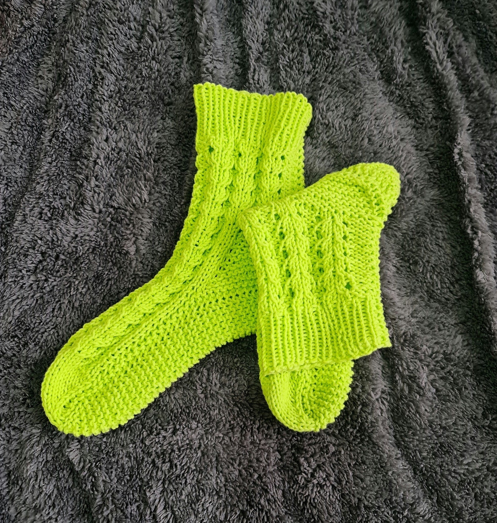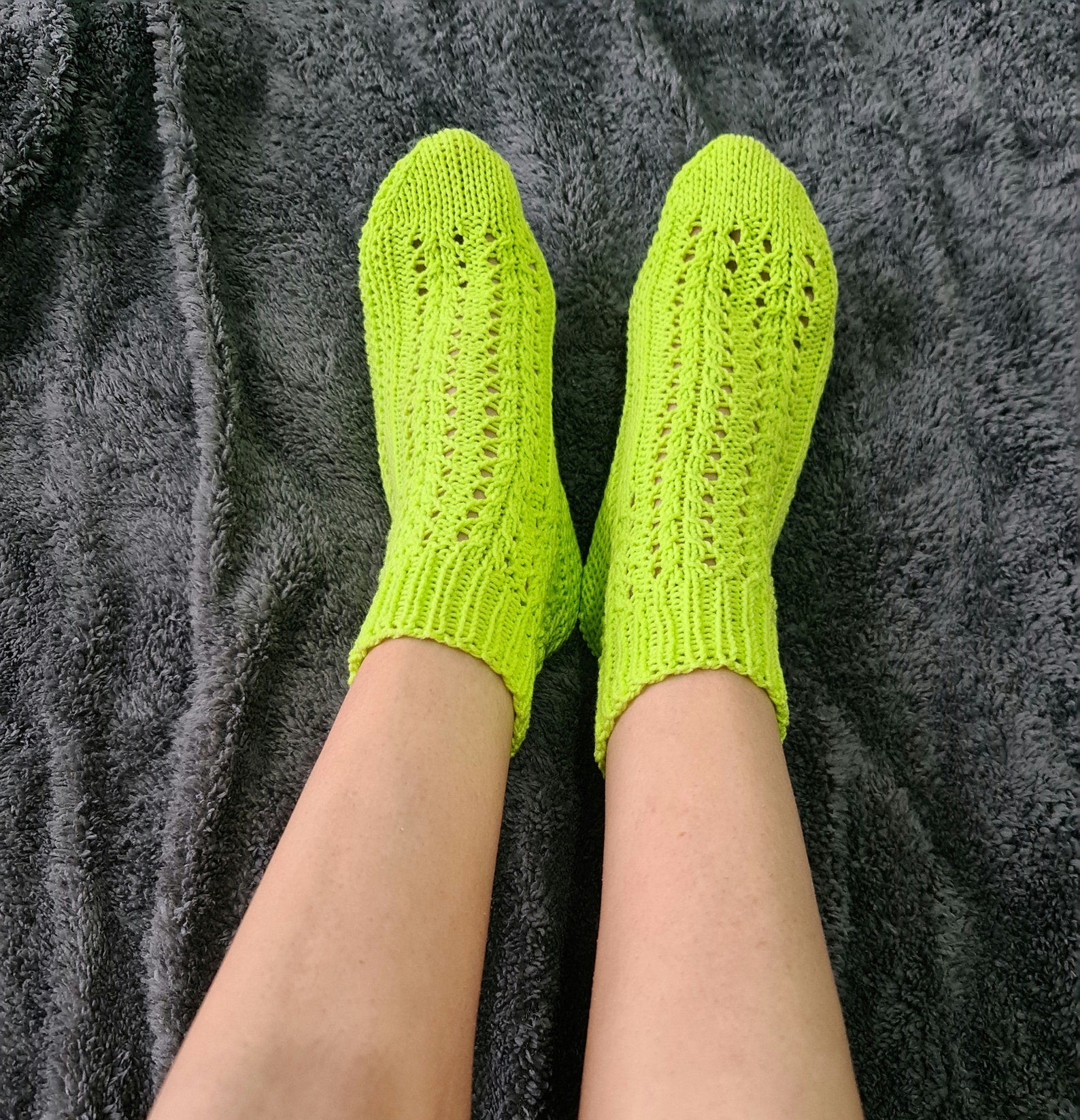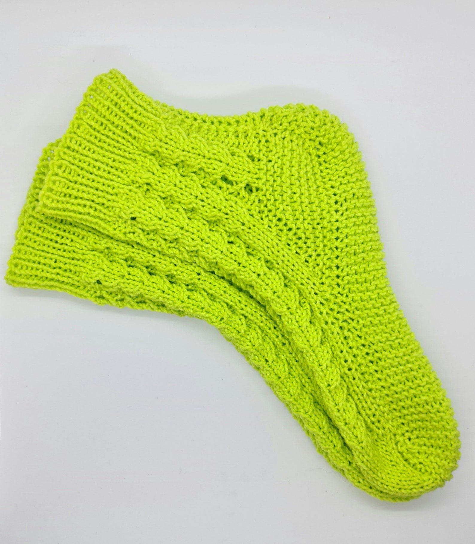 Socks were hand-knitted from premium quality cotton yarn. That yarn is usually used for baby garment designs. It's soft and pleasant to the body.