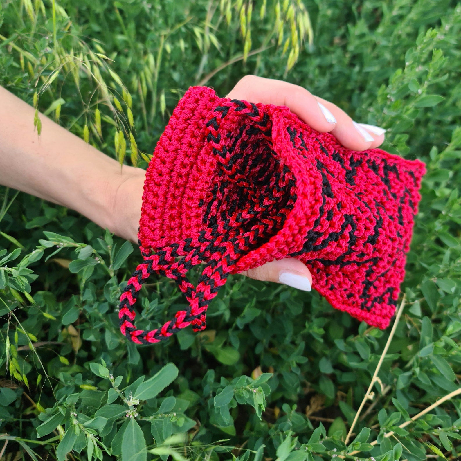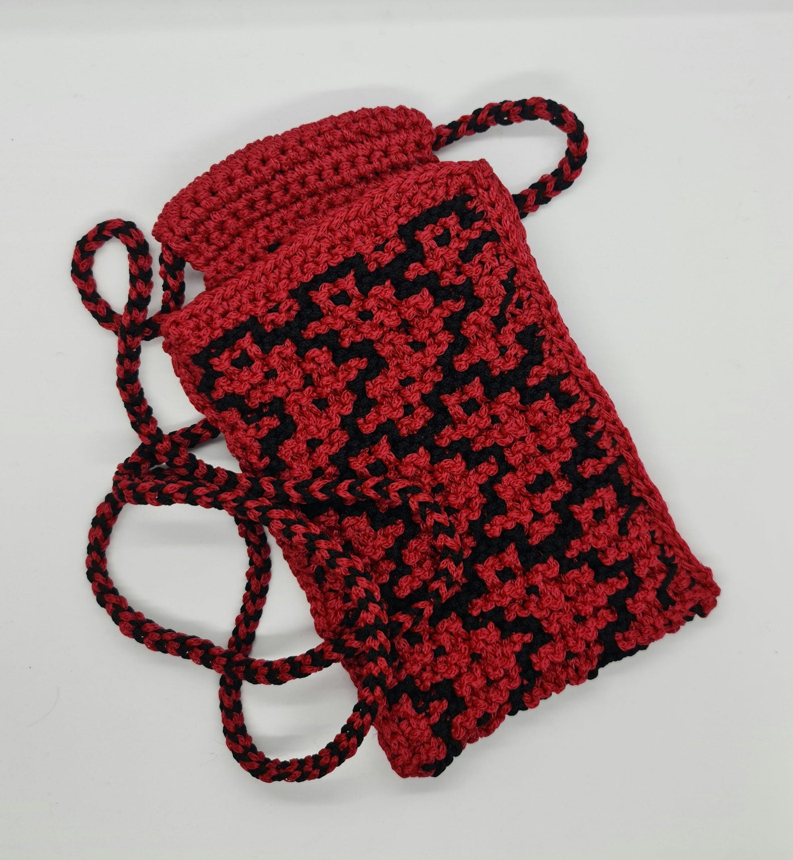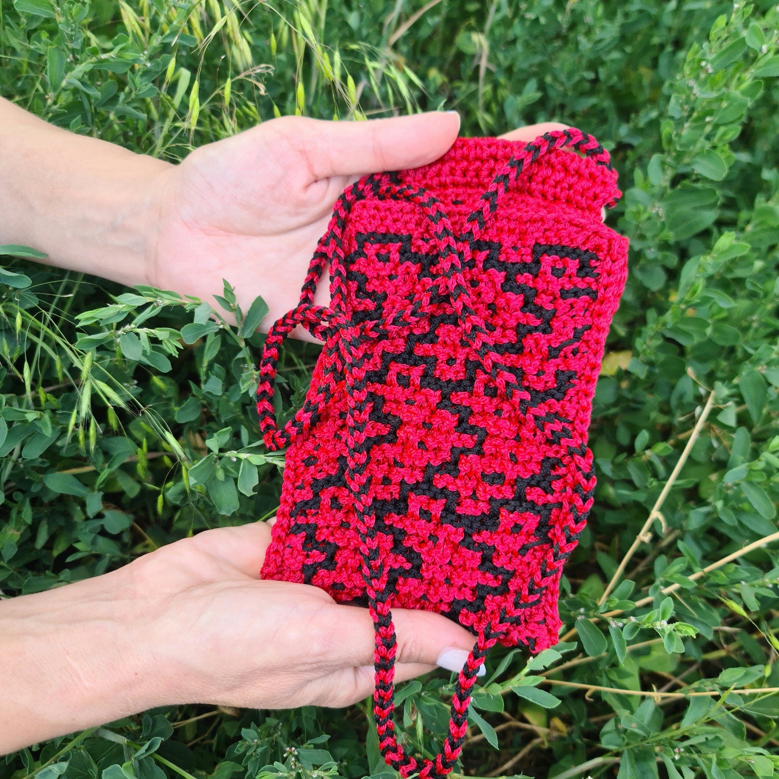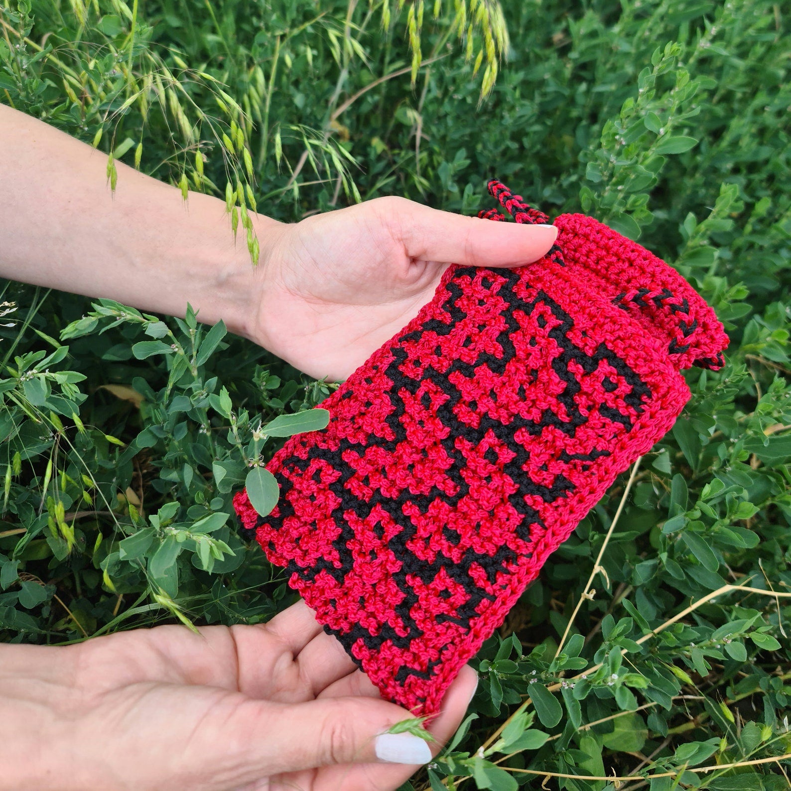 Designed specifically to fit your phone, this red and black mini-bag with pixel hearts is perfect for keeping your device close at hand while also protecting it from scratches, drops, and other potential hazards.