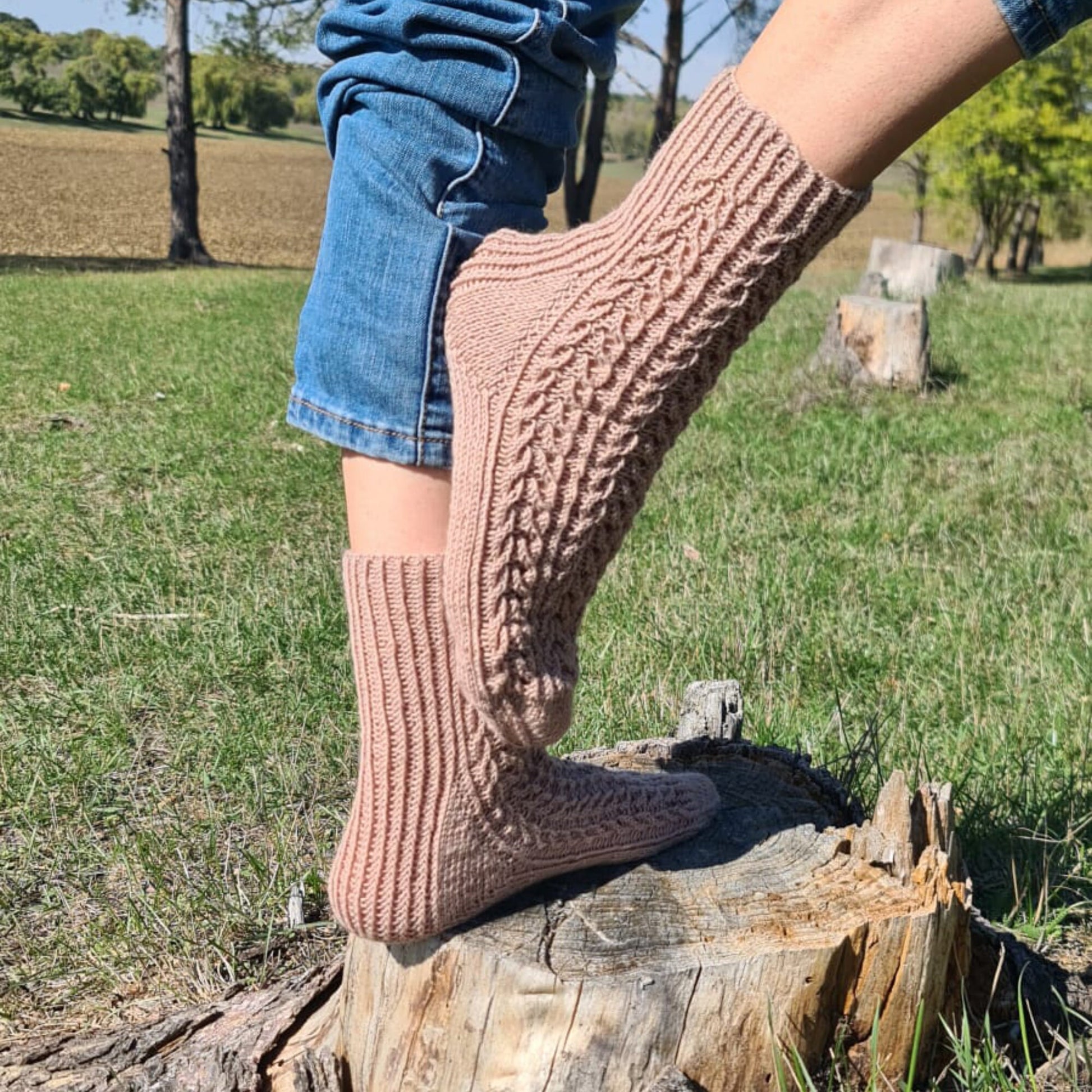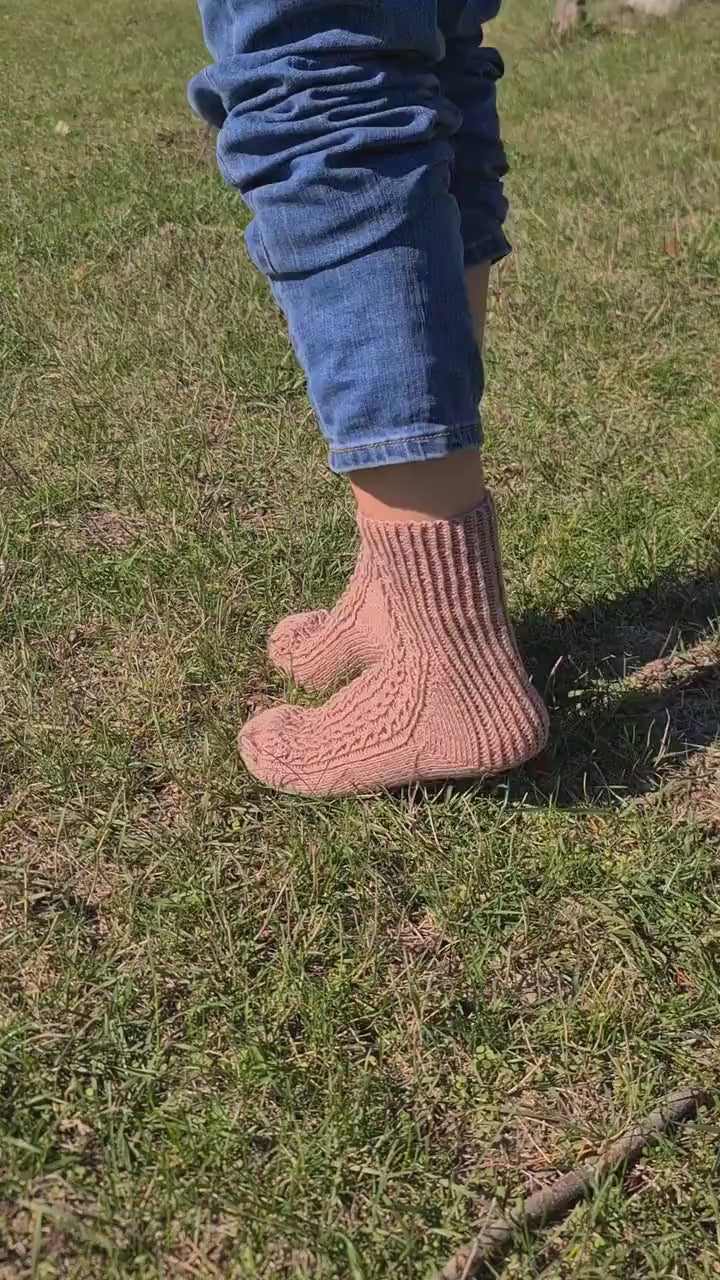 These wool quarter socks are perfect for cold weather. They come in a beautiful beige color. Made from high-quality yarns, these patterned socks are soft, lightweight, and durable. These socks are perfect for women who want to warm their feet this winter or to look fashion-forward and stand out in any situation.