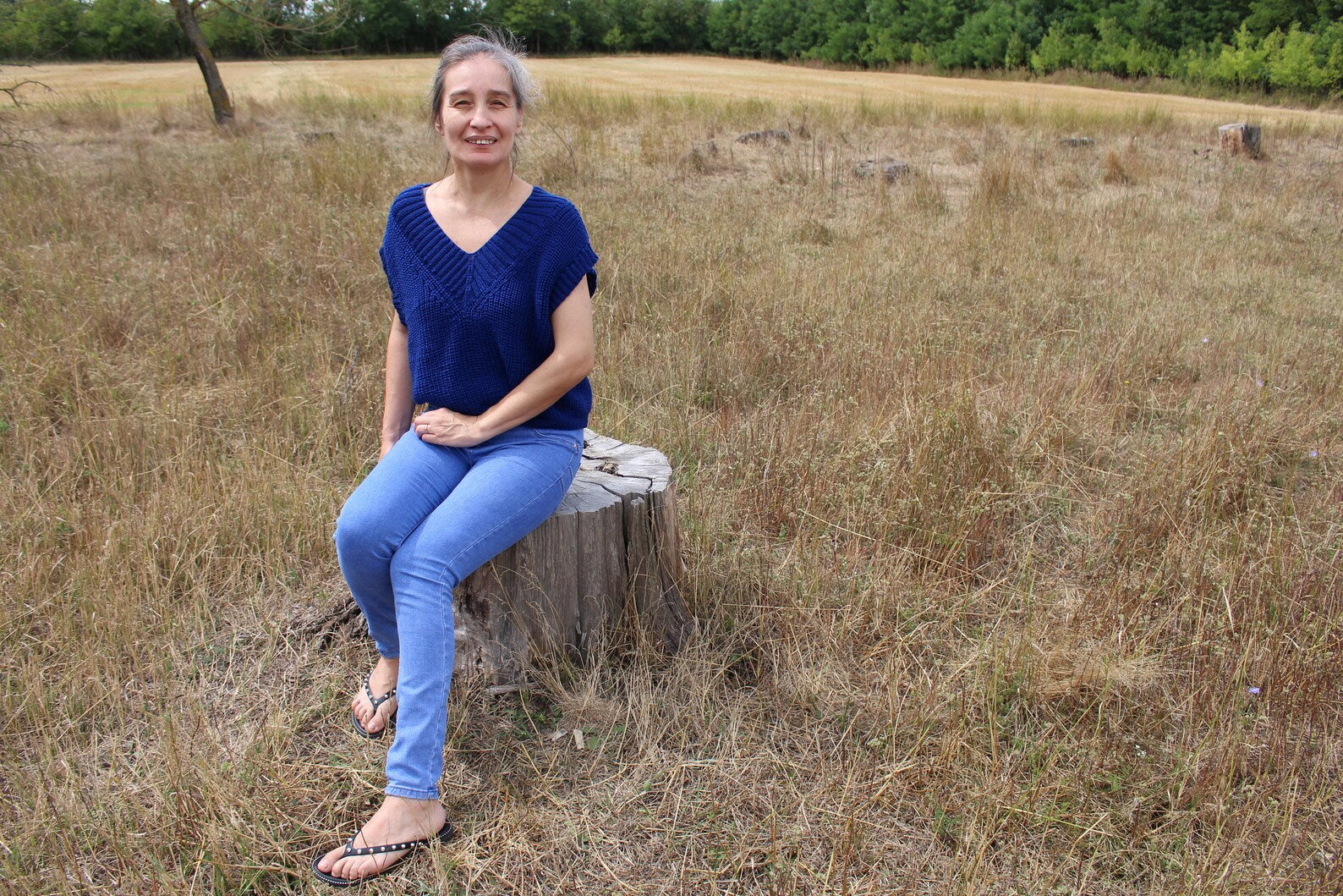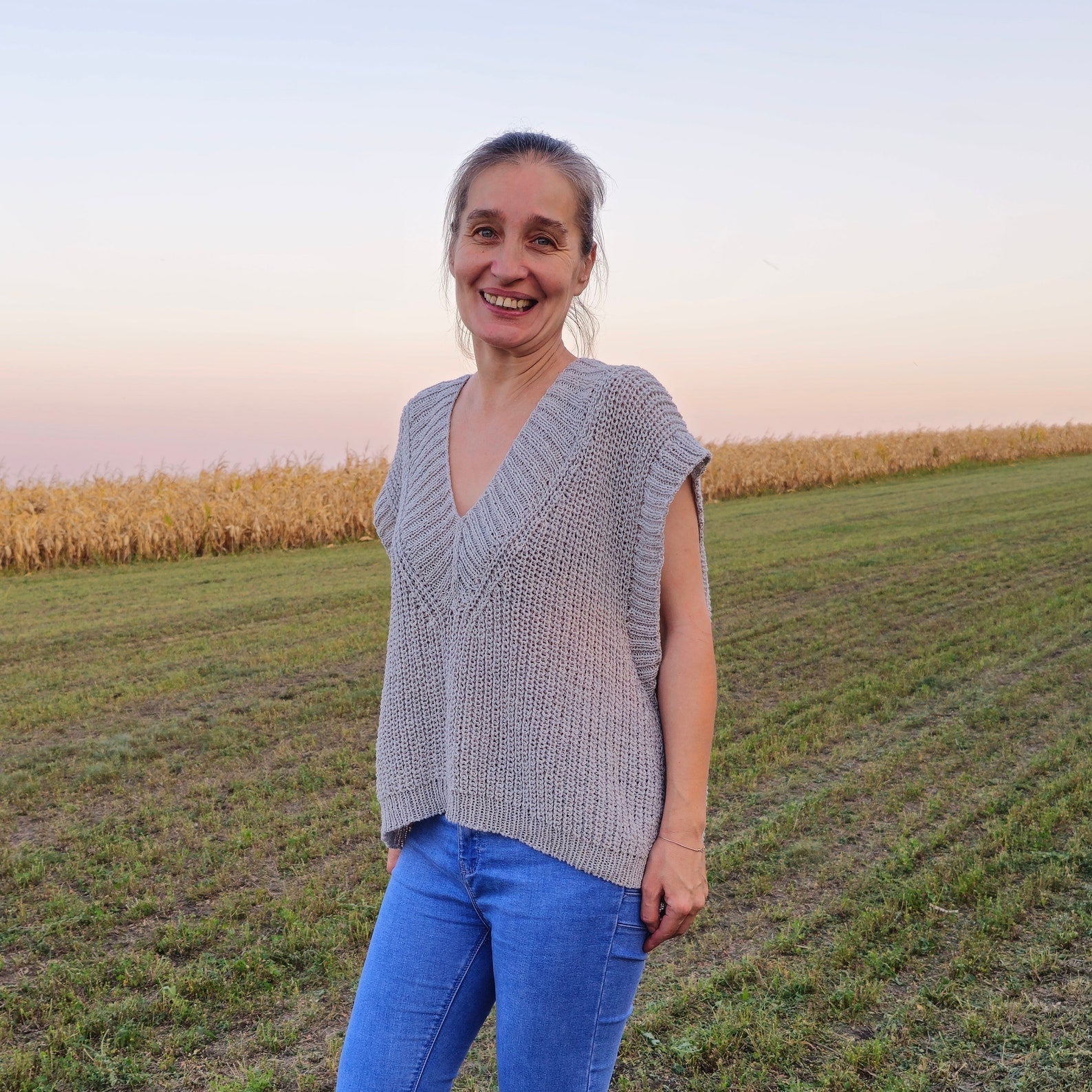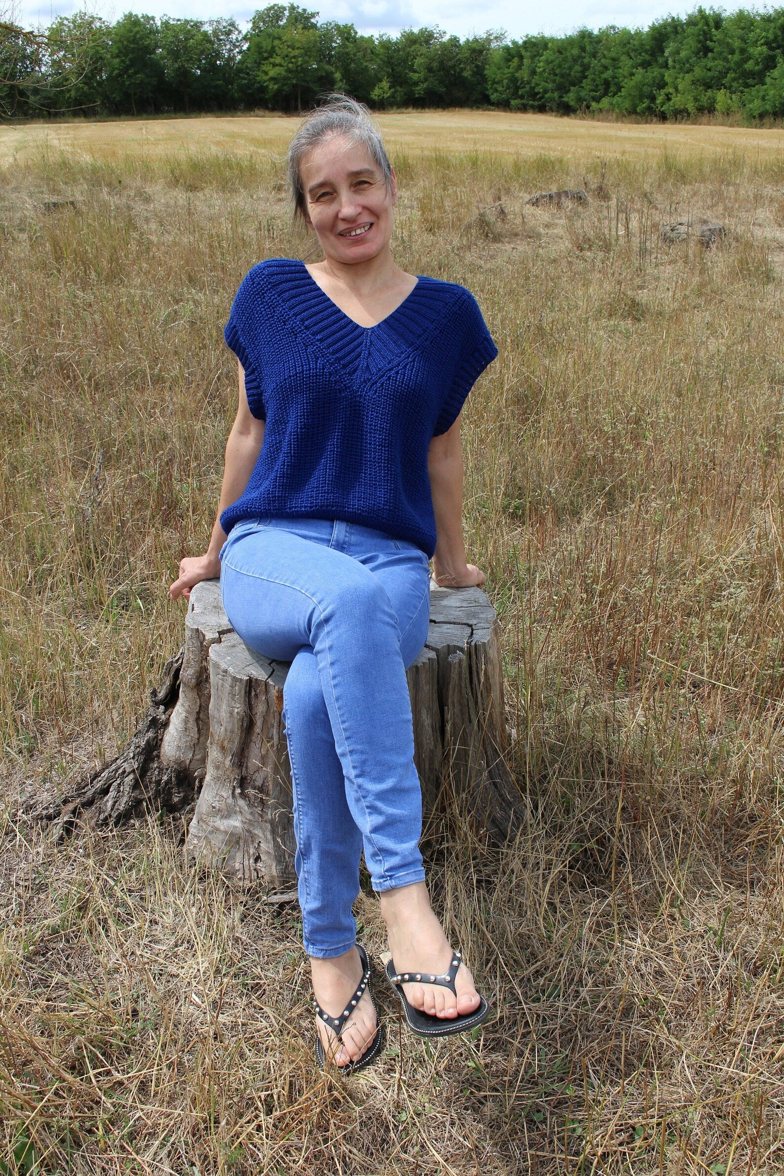 Oversized V-neck sweater vest in blue, Stylish sleeveless jumper for women