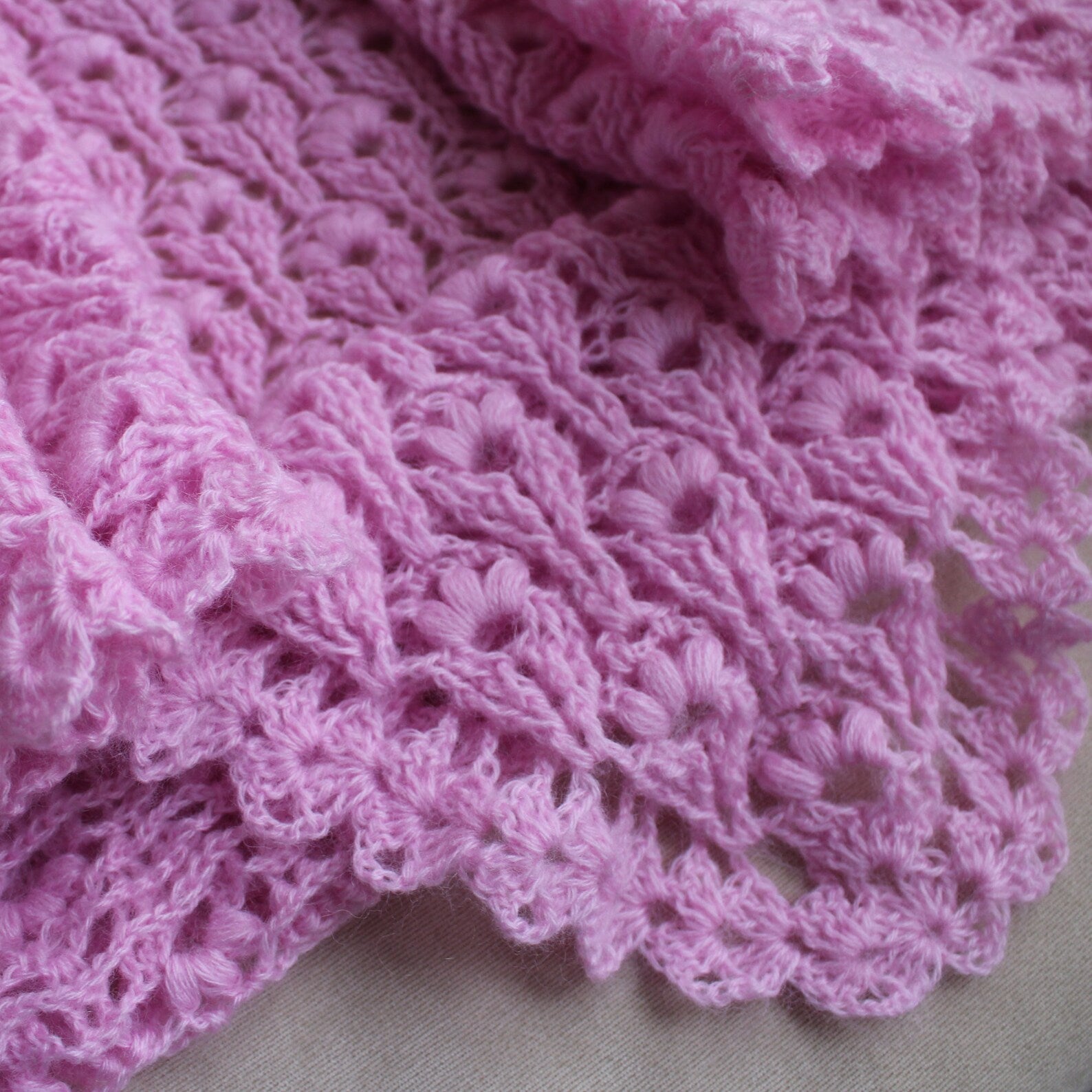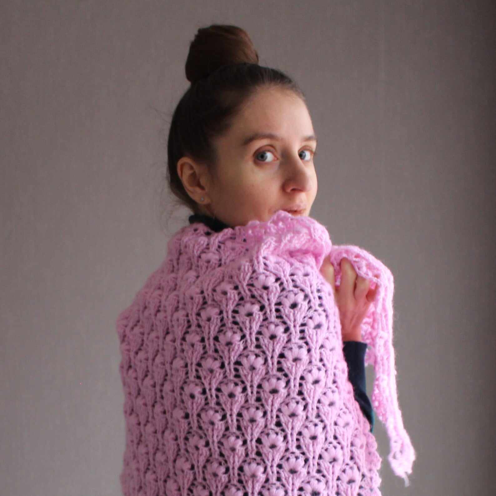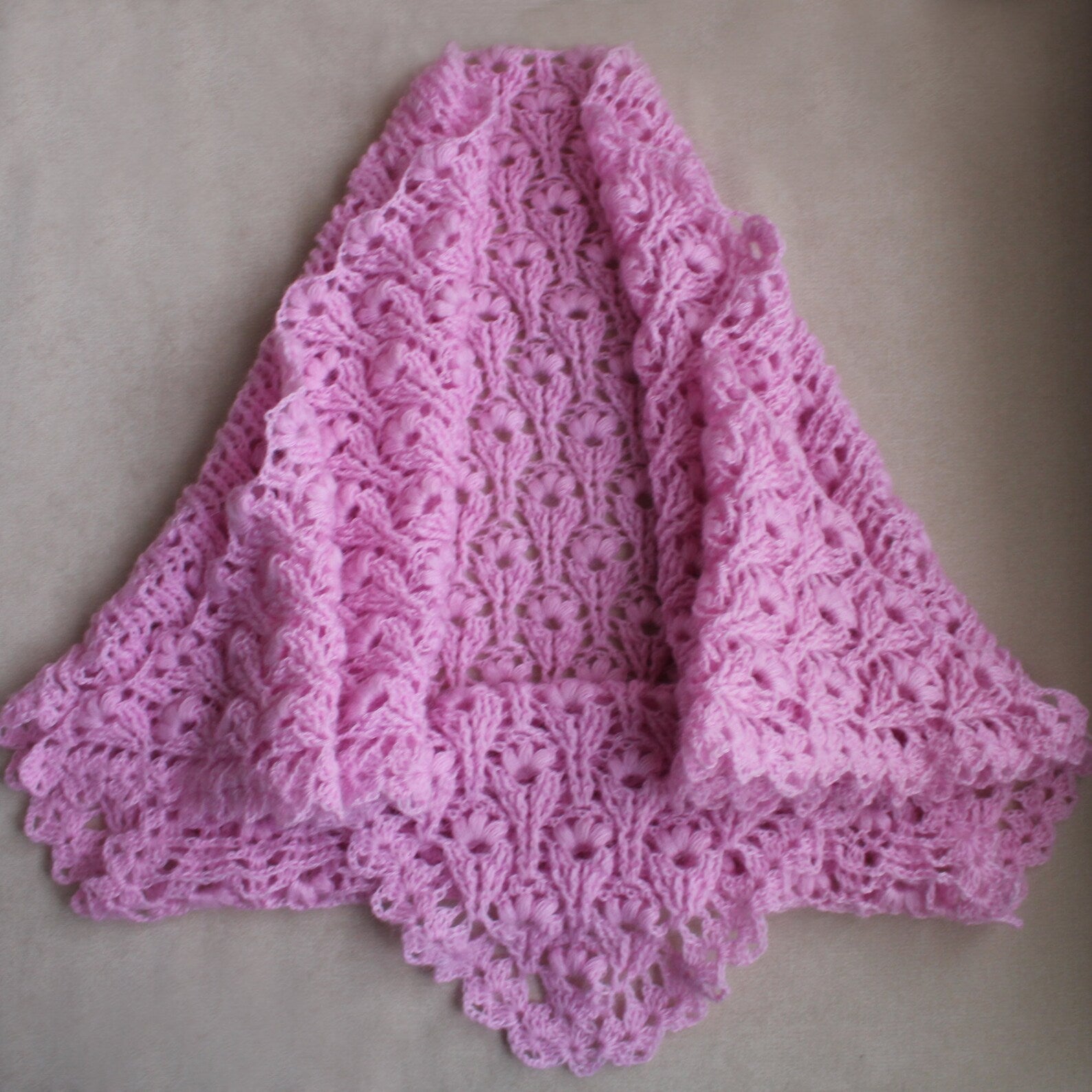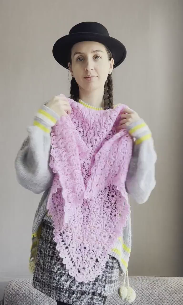 Pink crochet shawl, Warm triangle wrap, Delicate sheer headscarf