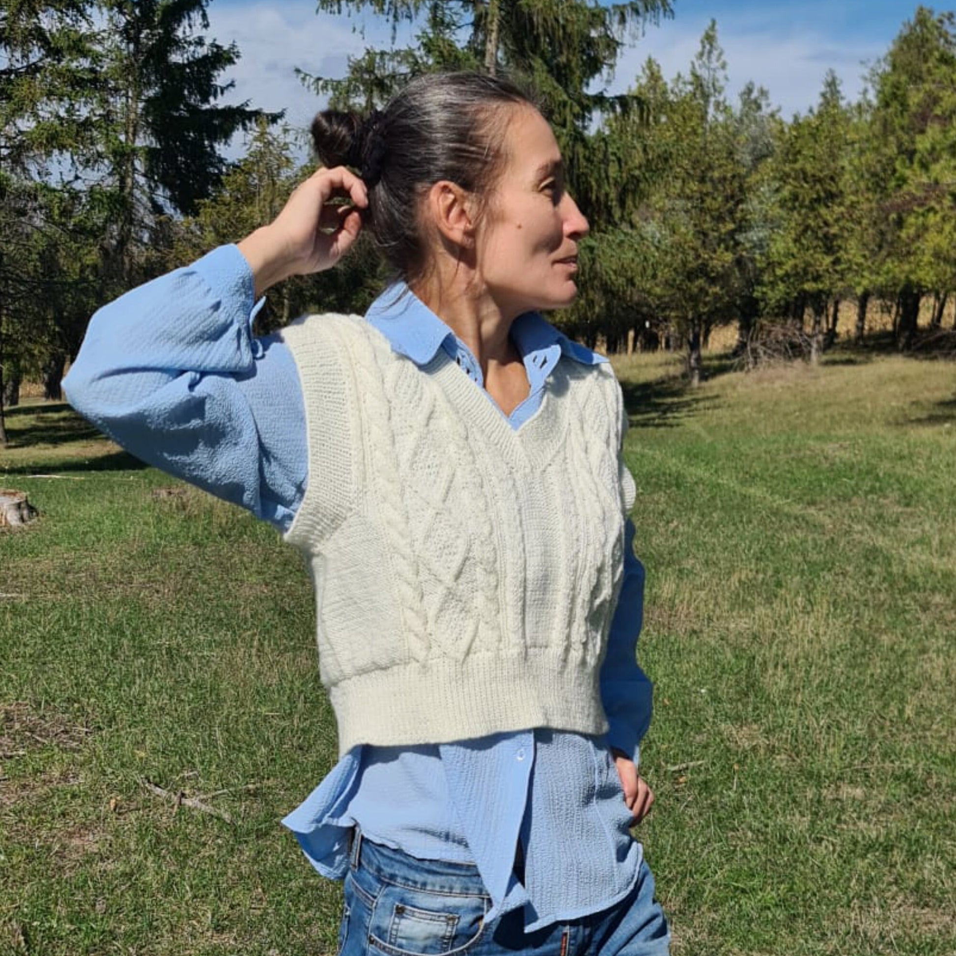 Preppy Style vest, Ivory Cropped waistcoat