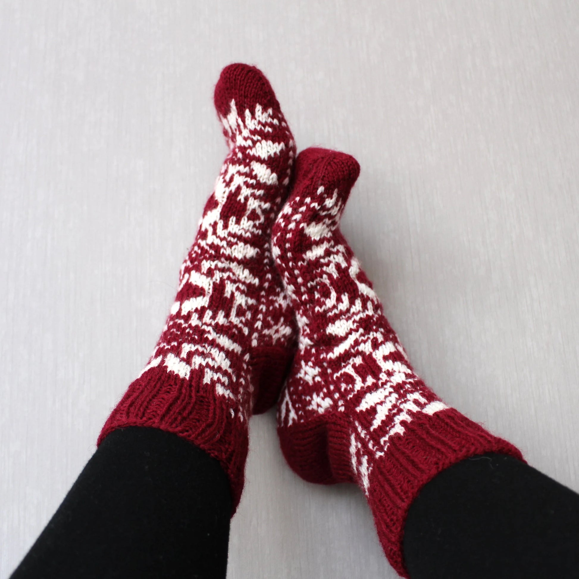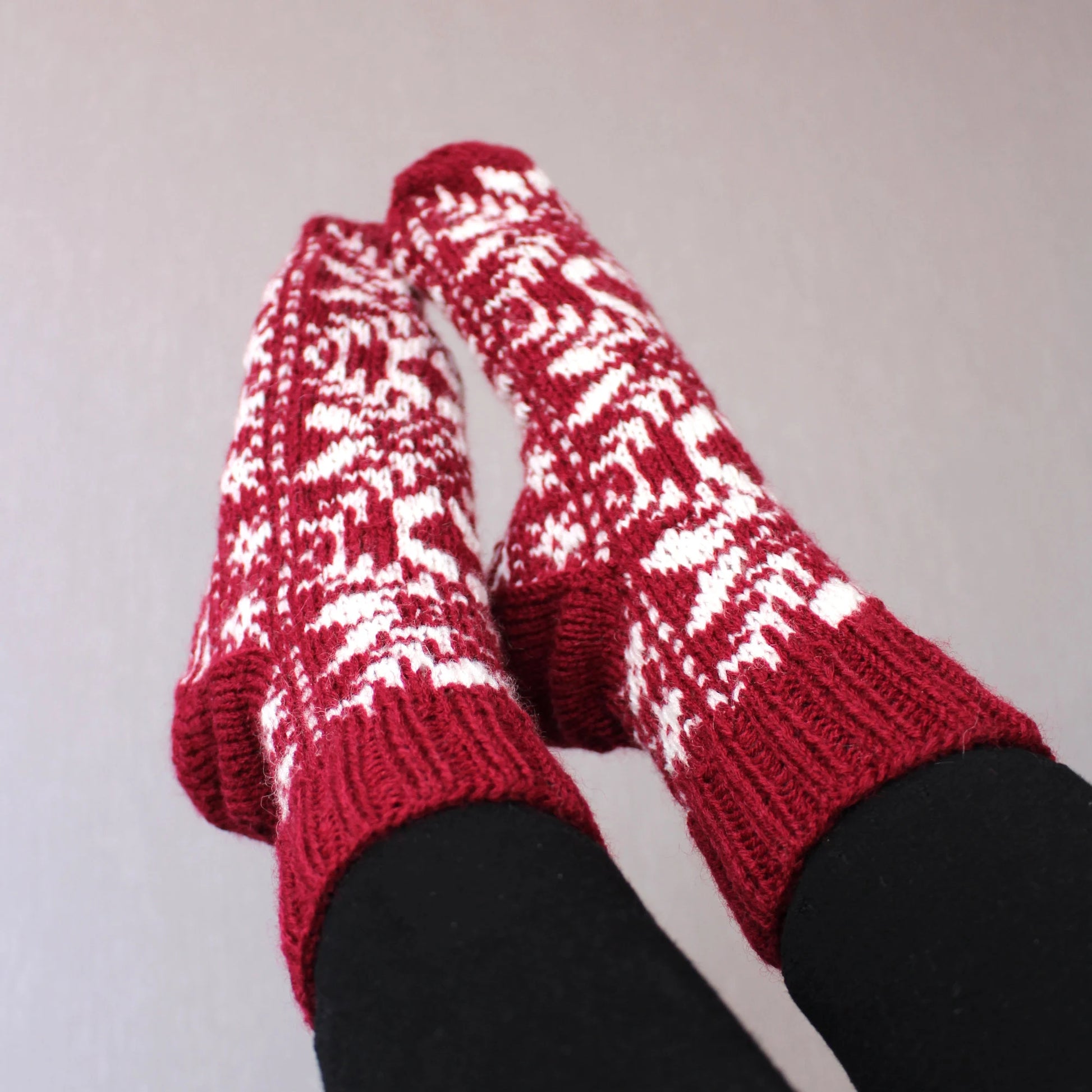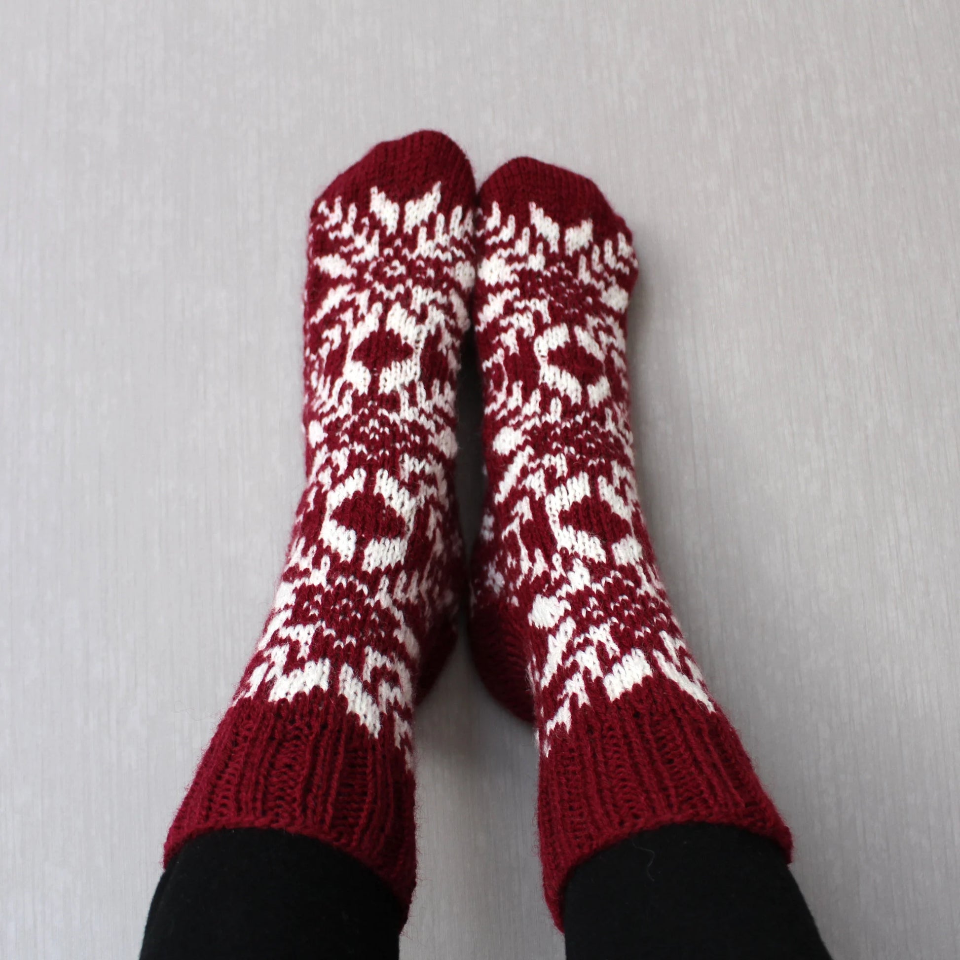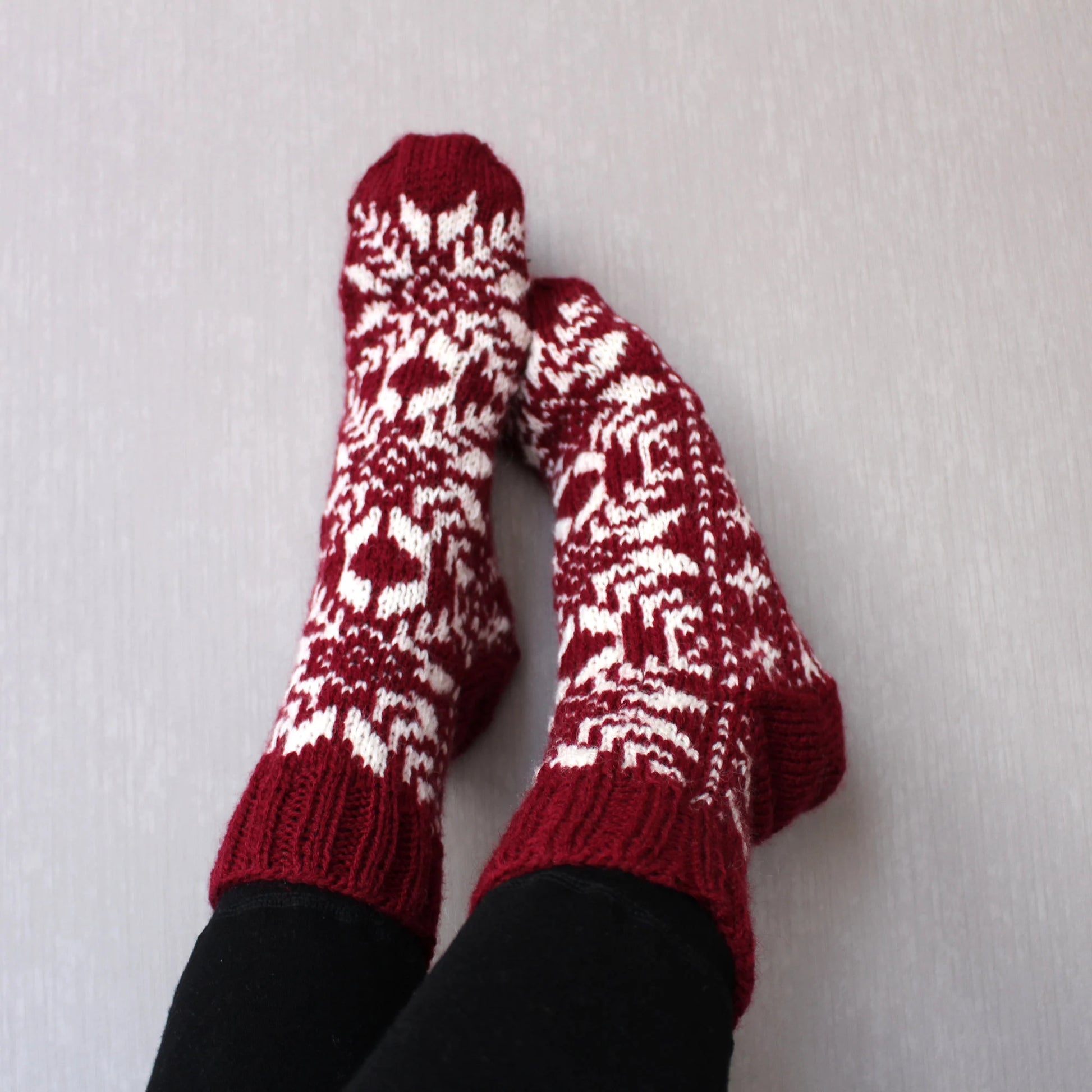 These knitted Christmas socks are perfect for the holidays and cold weather. They're made of high-quality wool, so they'll feel great and last for years. Such socks are the ideal gift for your loved ones this holiday season.