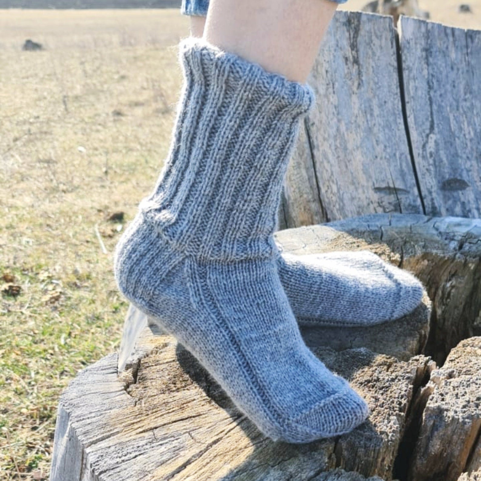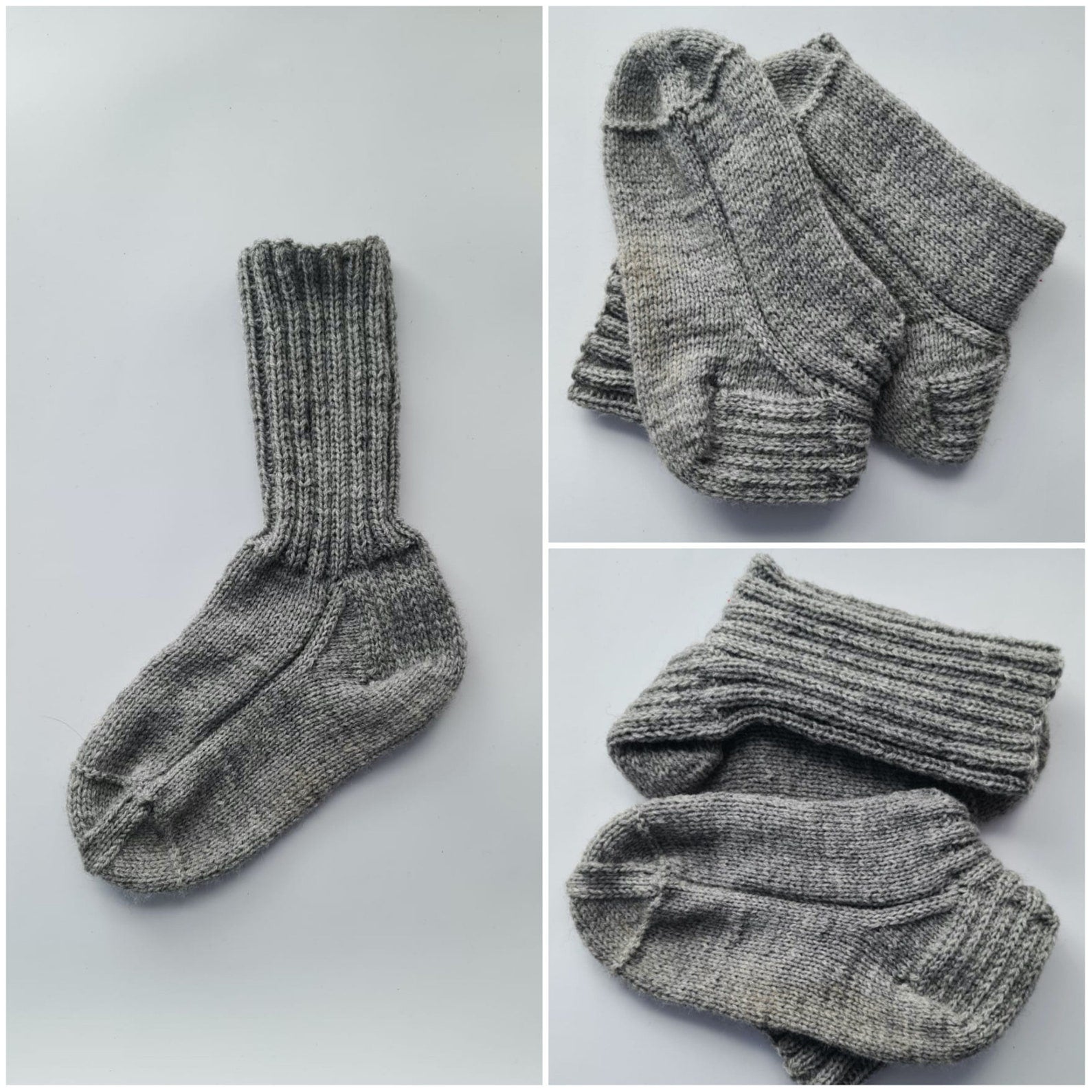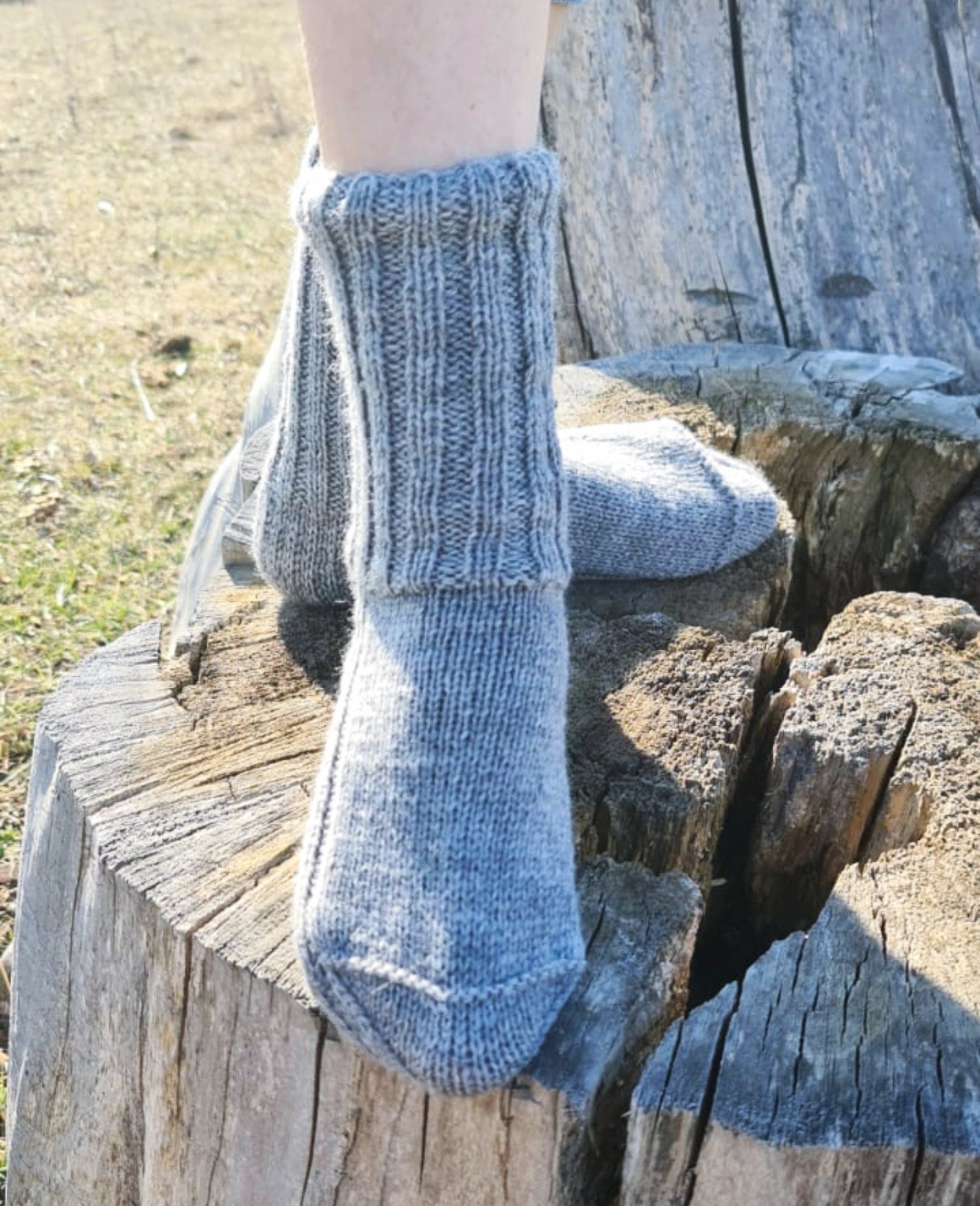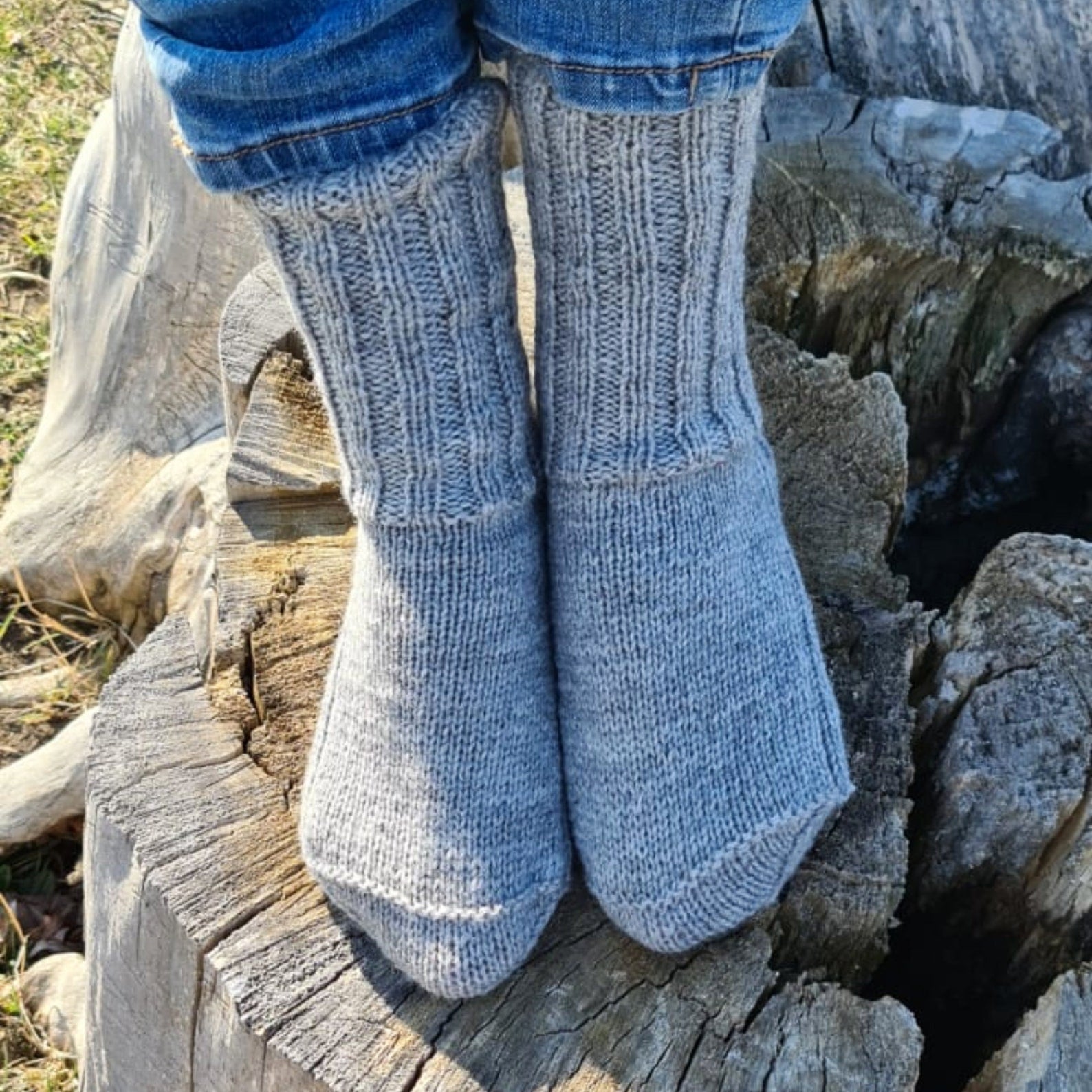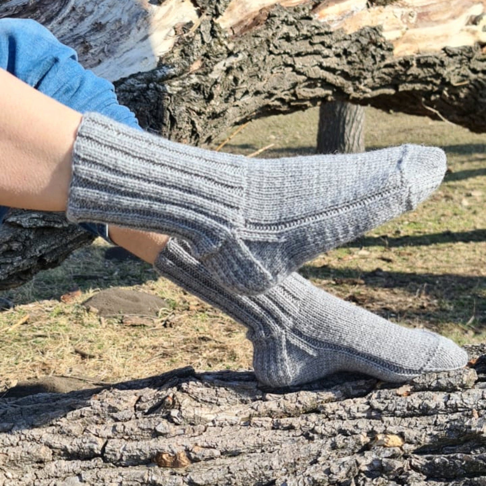These lovely crew socks will help you keep your feet warm while being in style. Socks can be the perfect gift for a husband, or wife. They work great inside any tall outdoor boots. If warm-and-cozy hygge vibes are your thing then these hand-knitted gray socks are for you!