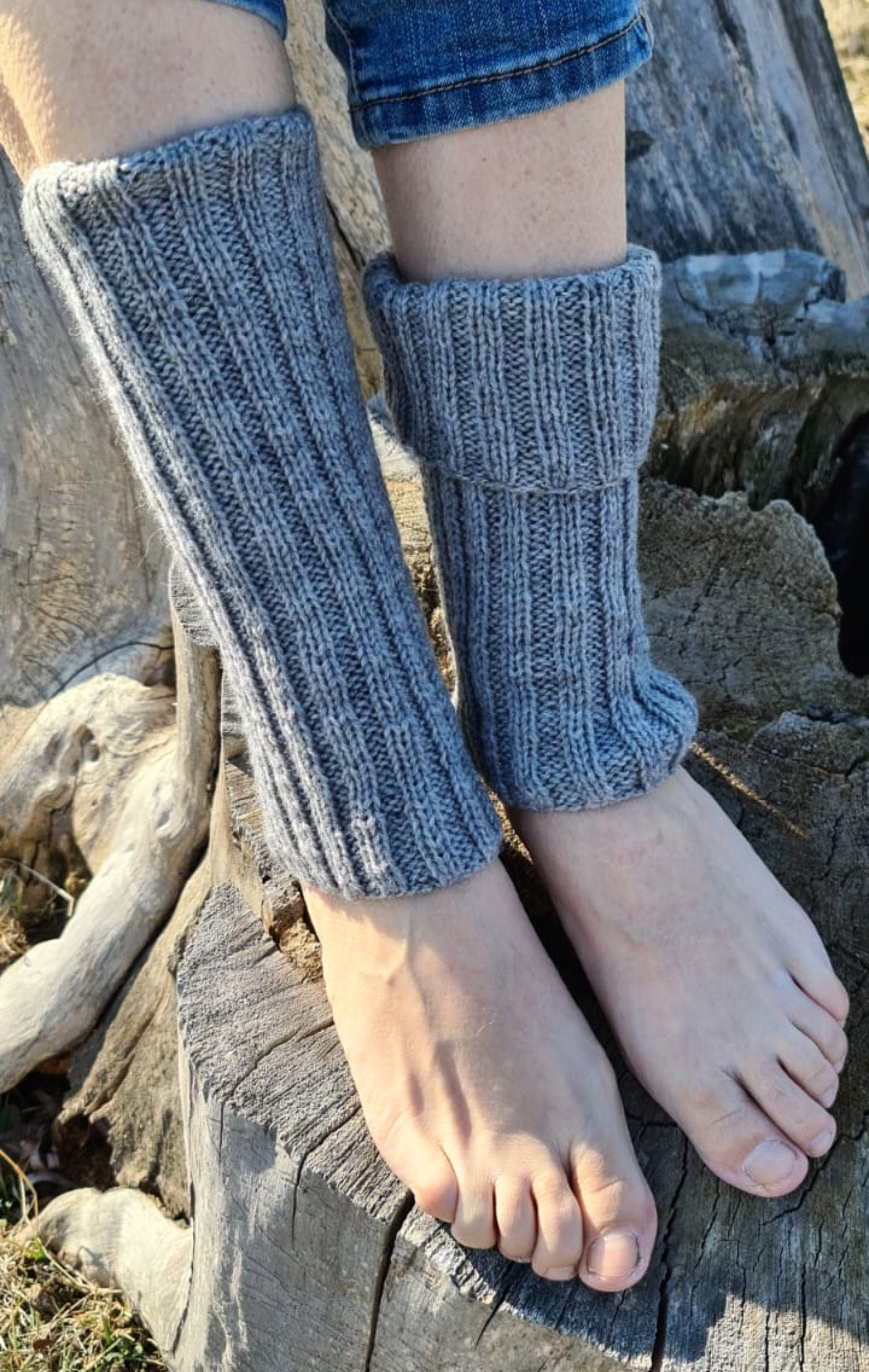 Ribbed knee-high leg warmers, Boot topper socks, Welly Socks