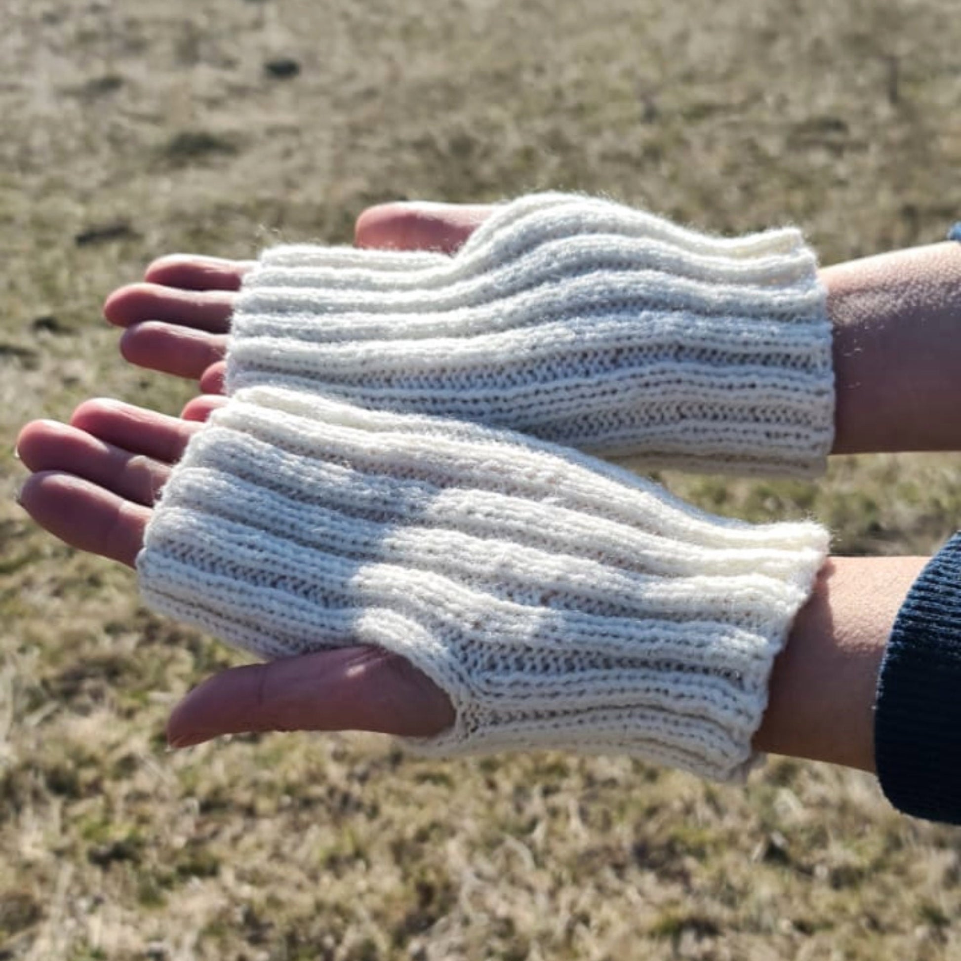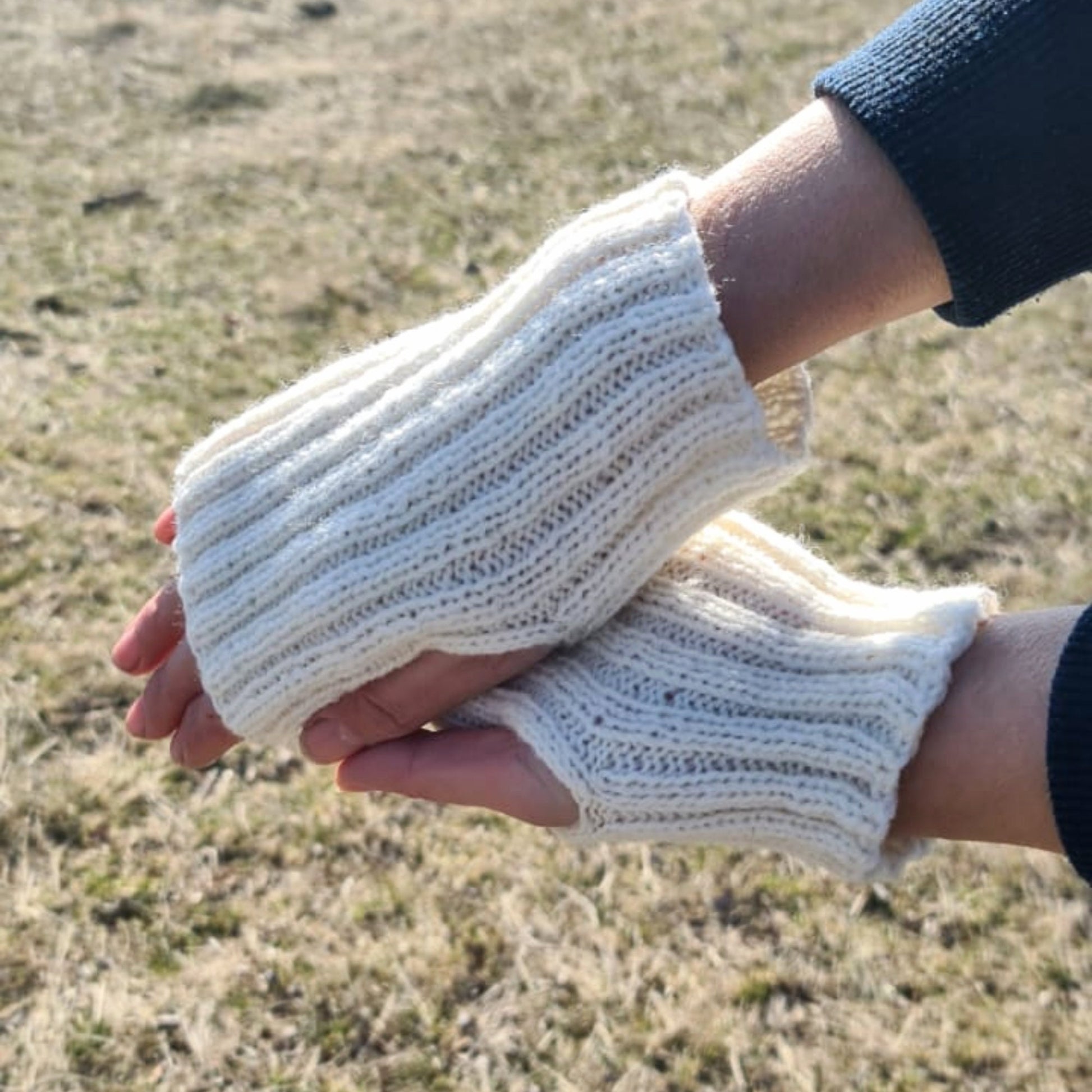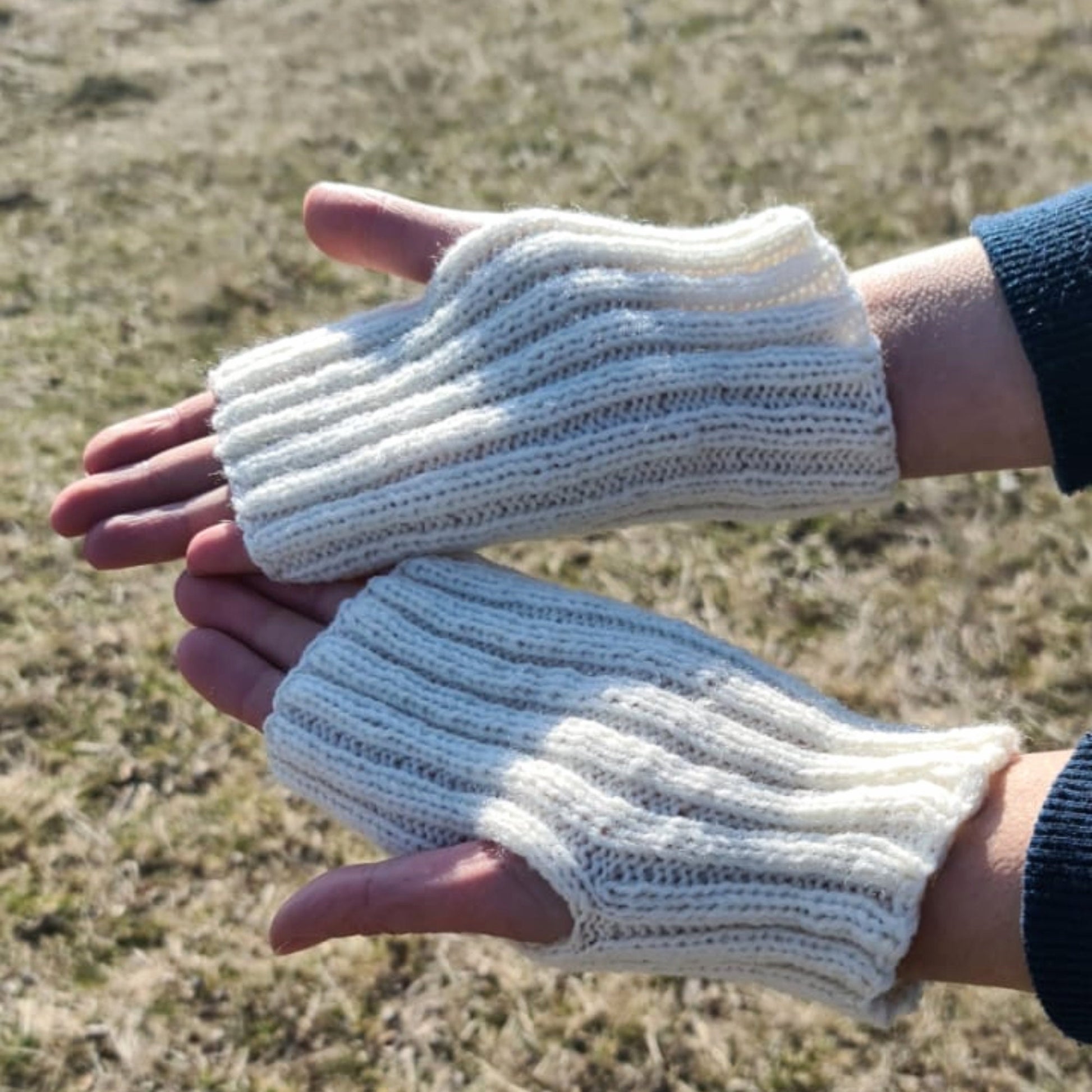 Ribbed fingerless gloves, Warm wool blend glovelettes, Cold-weather mittens