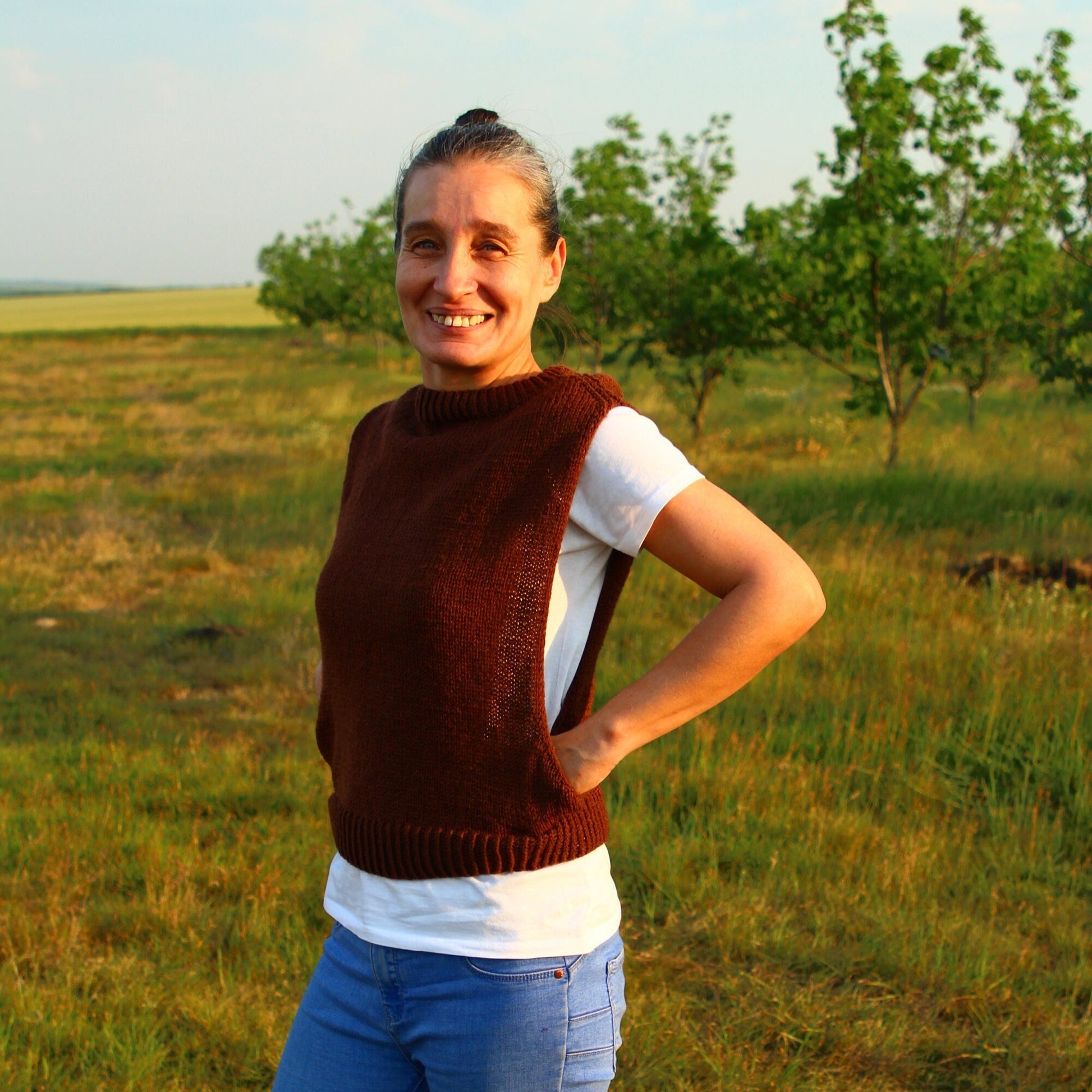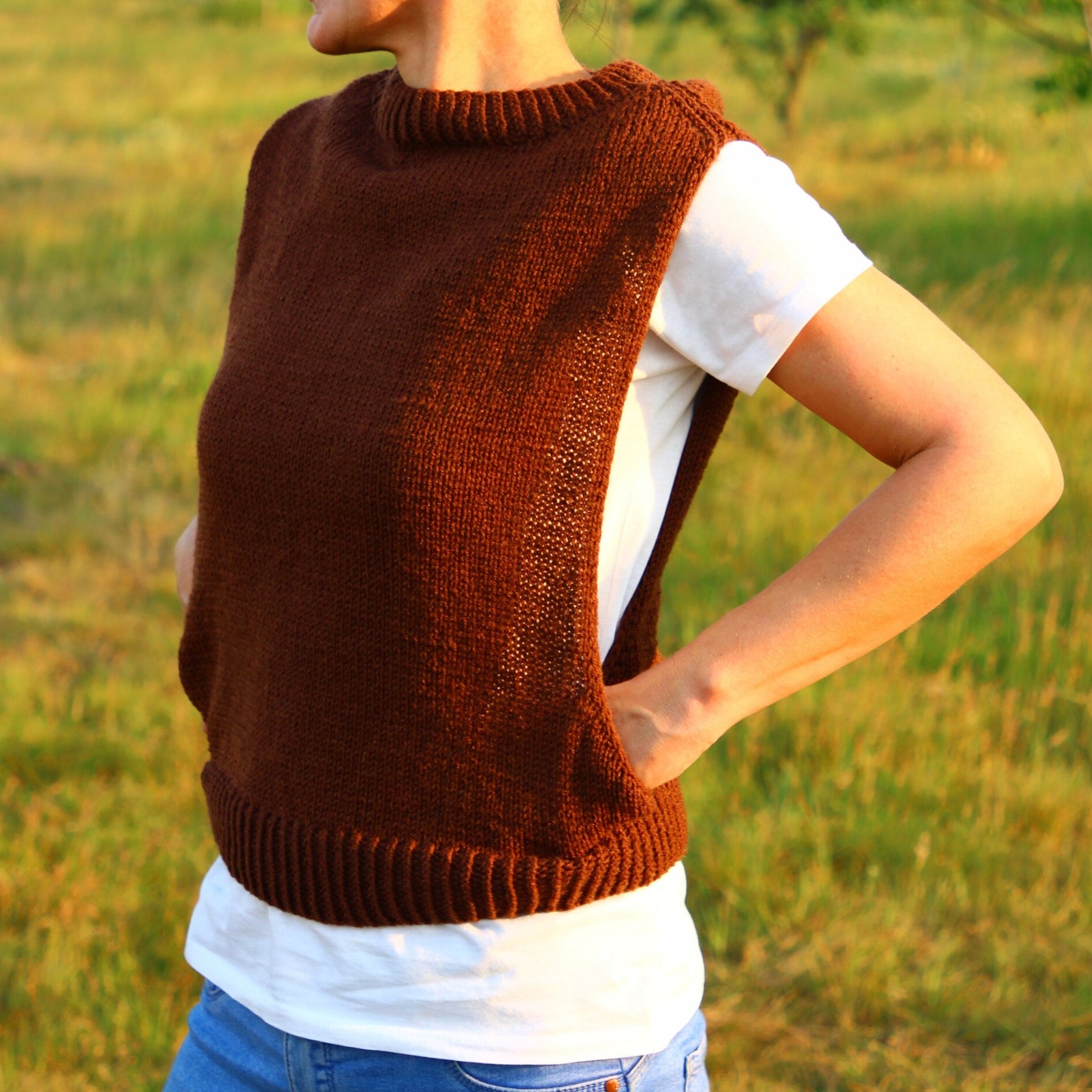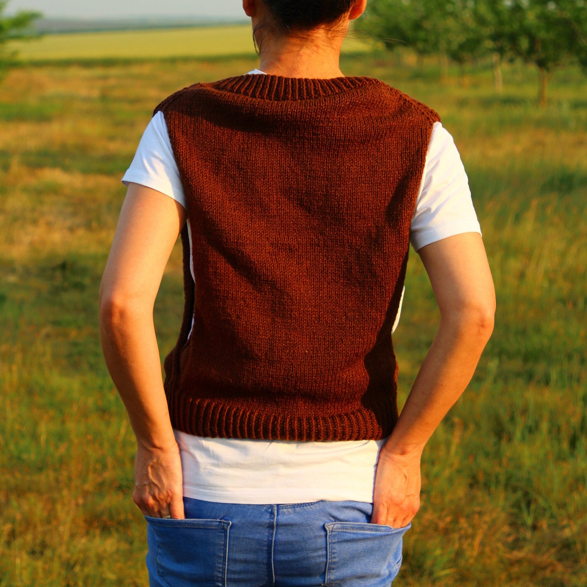 Embrace a touch of boho elegance with our handmade rustic brown crochet vest, crafted from high-quality wool for a cozy and comfortable fit. This sleeveless top is perfect for layering over your favorite shirts or dresses, adding a stylish flair to any outfit. Whether you're dressing up for a casual outing or layering for a chilly evening, this vest provides both warmth and style.