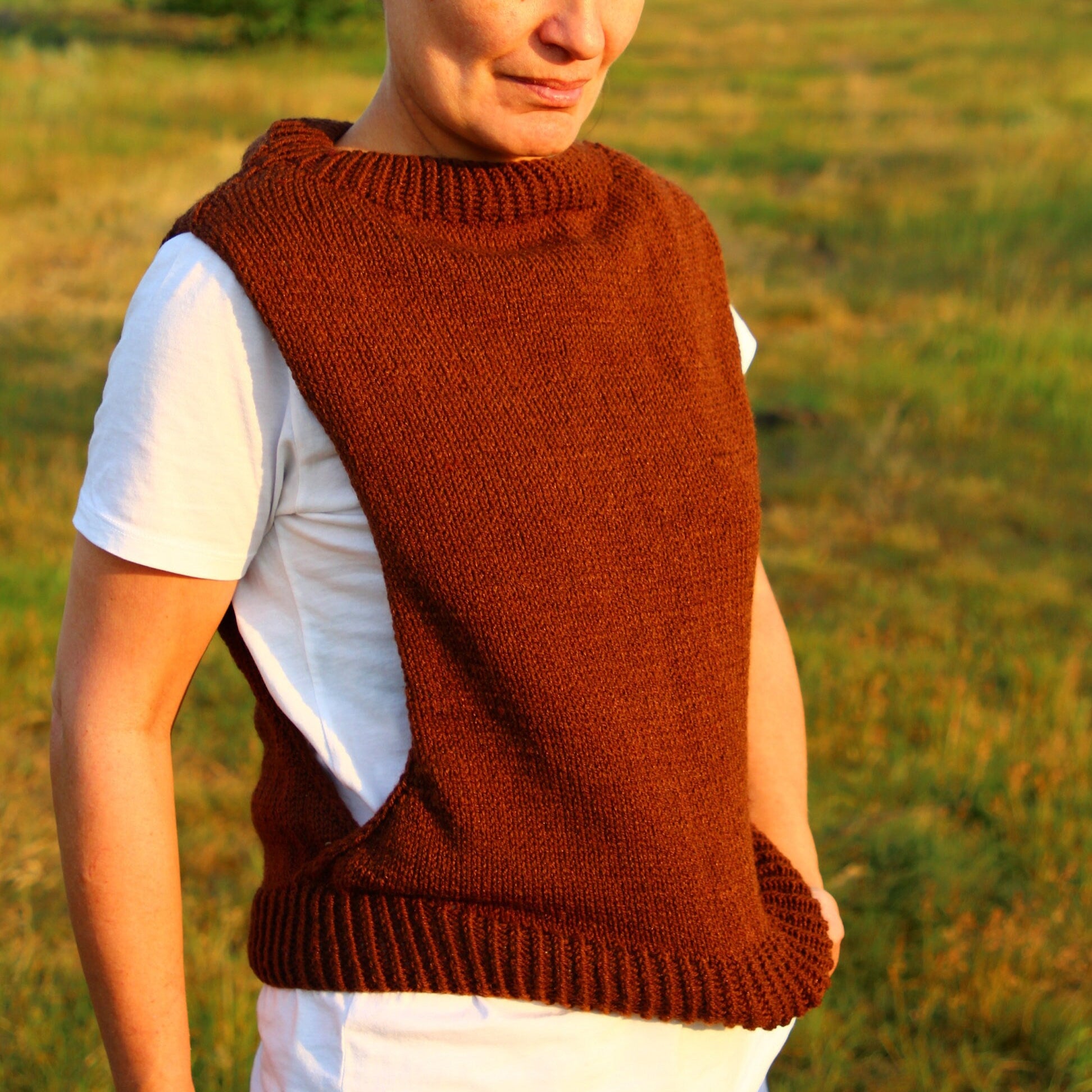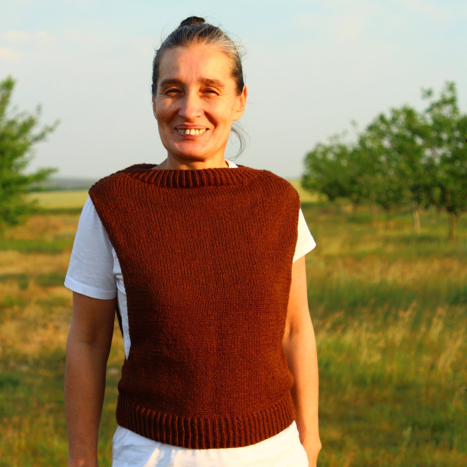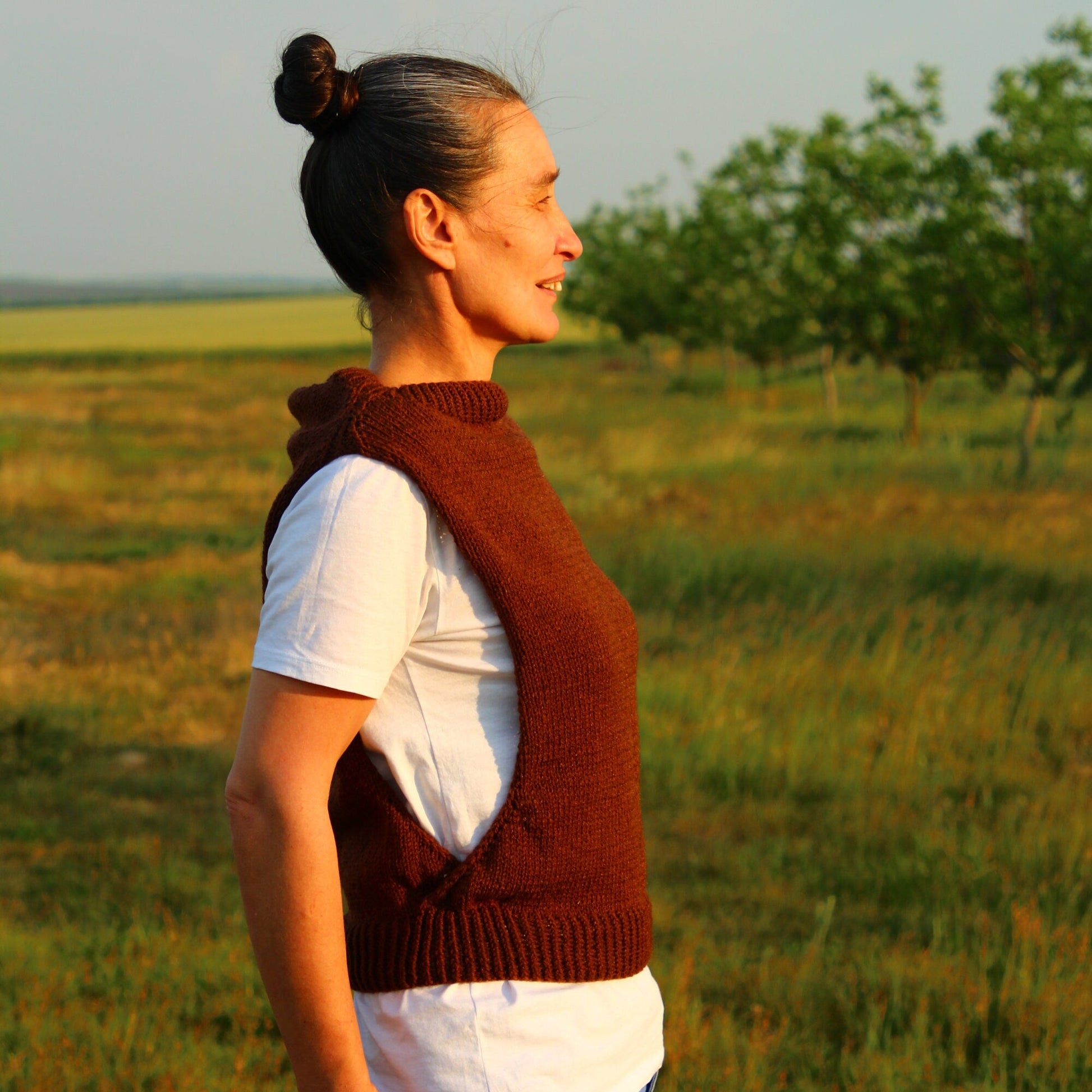 Embrace a touch of boho elegance with our handmade rustic brown crochet vest, crafted from high-quality wool for a cozy and comfortable fit. This sleeveless top is perfect for layering over your favorite shirts or dresses, adding a stylish flair to any outfit. Whether you're dressing up for a casual outing or layering for a chilly evening, this vest provides both warmth and style.