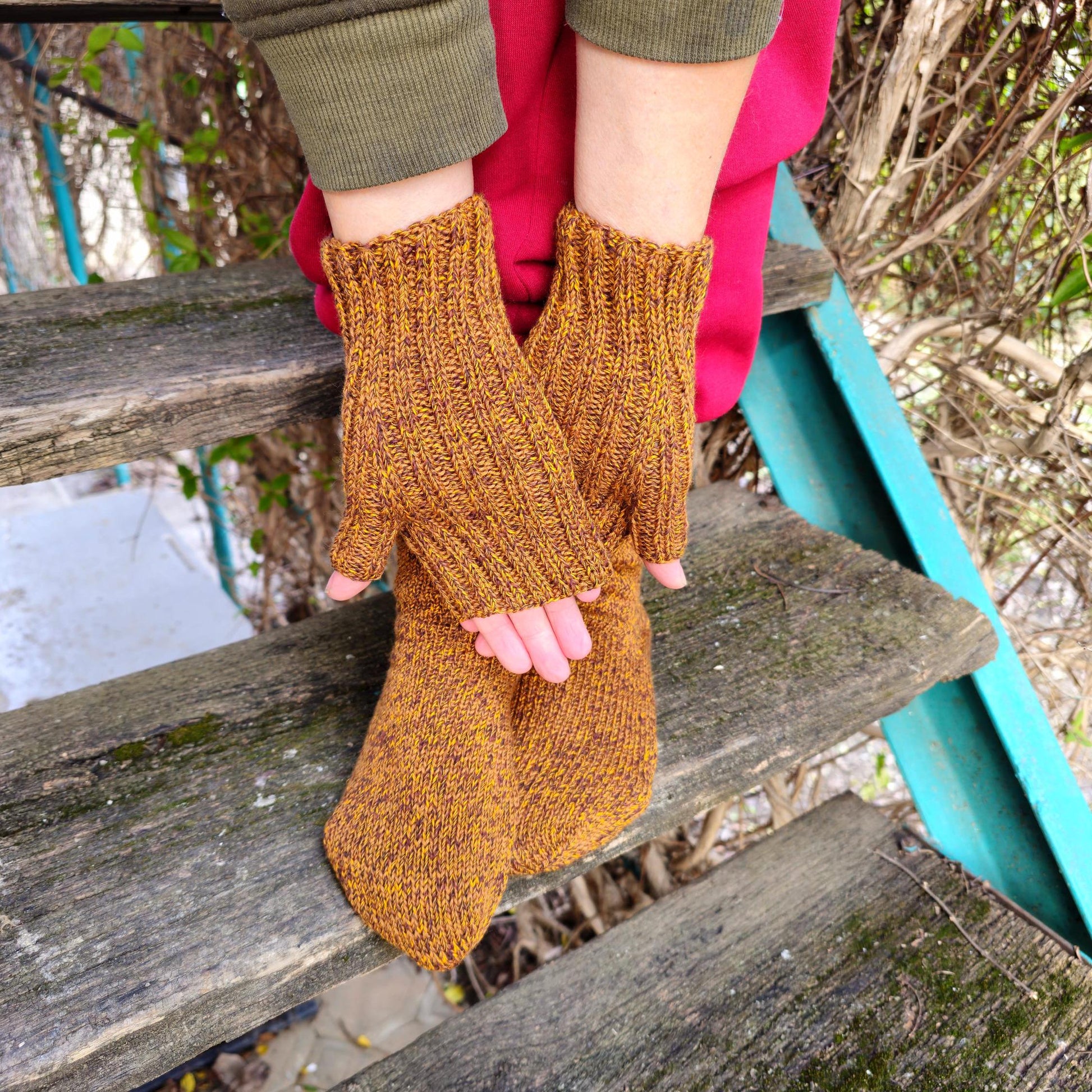 Stay warm in style with this beautifully hand-knitted wool set, featuring matching socks and mittens in rich autumn tones. Designed for ultimate comfort, this cozy duo offers a snug fit while keeping your hands and feet toasty, perfect for cold days, outdoor walks, or as a thoughtful gift for someone special.