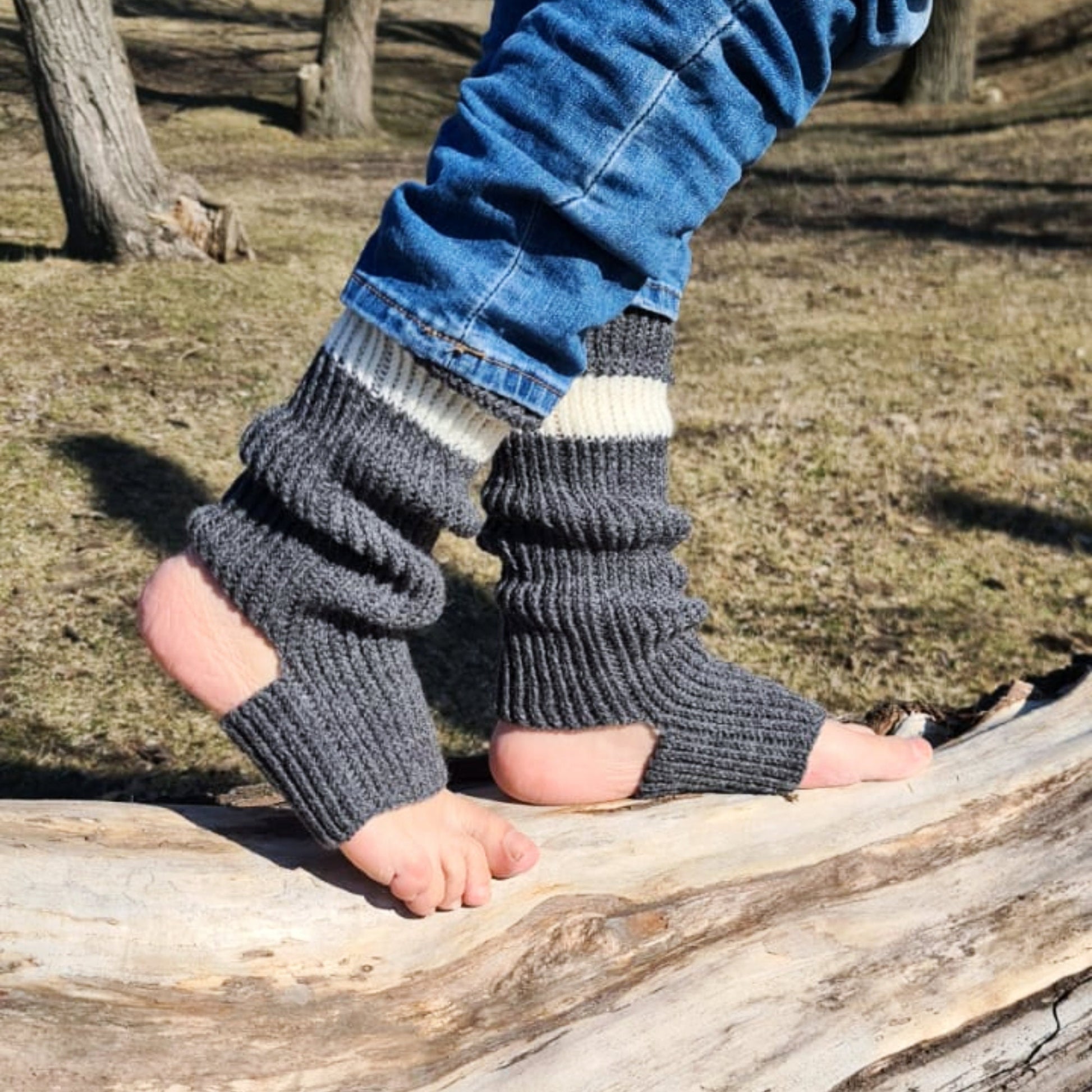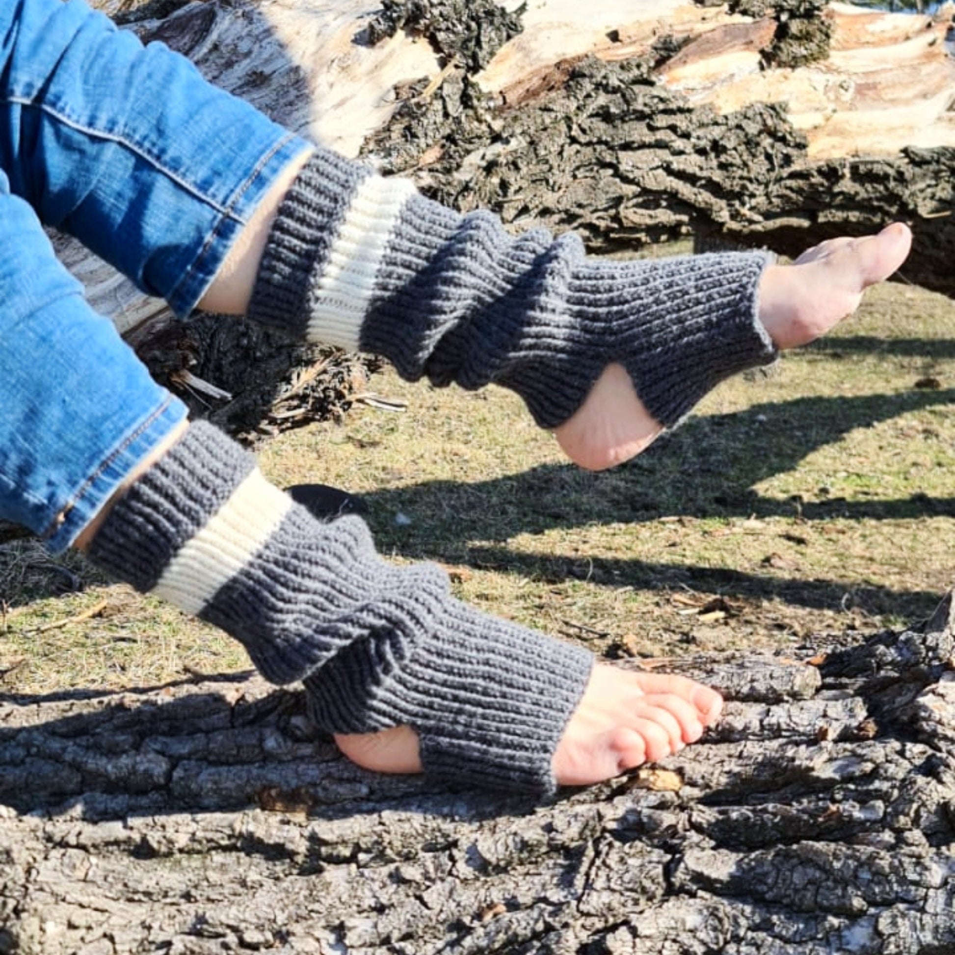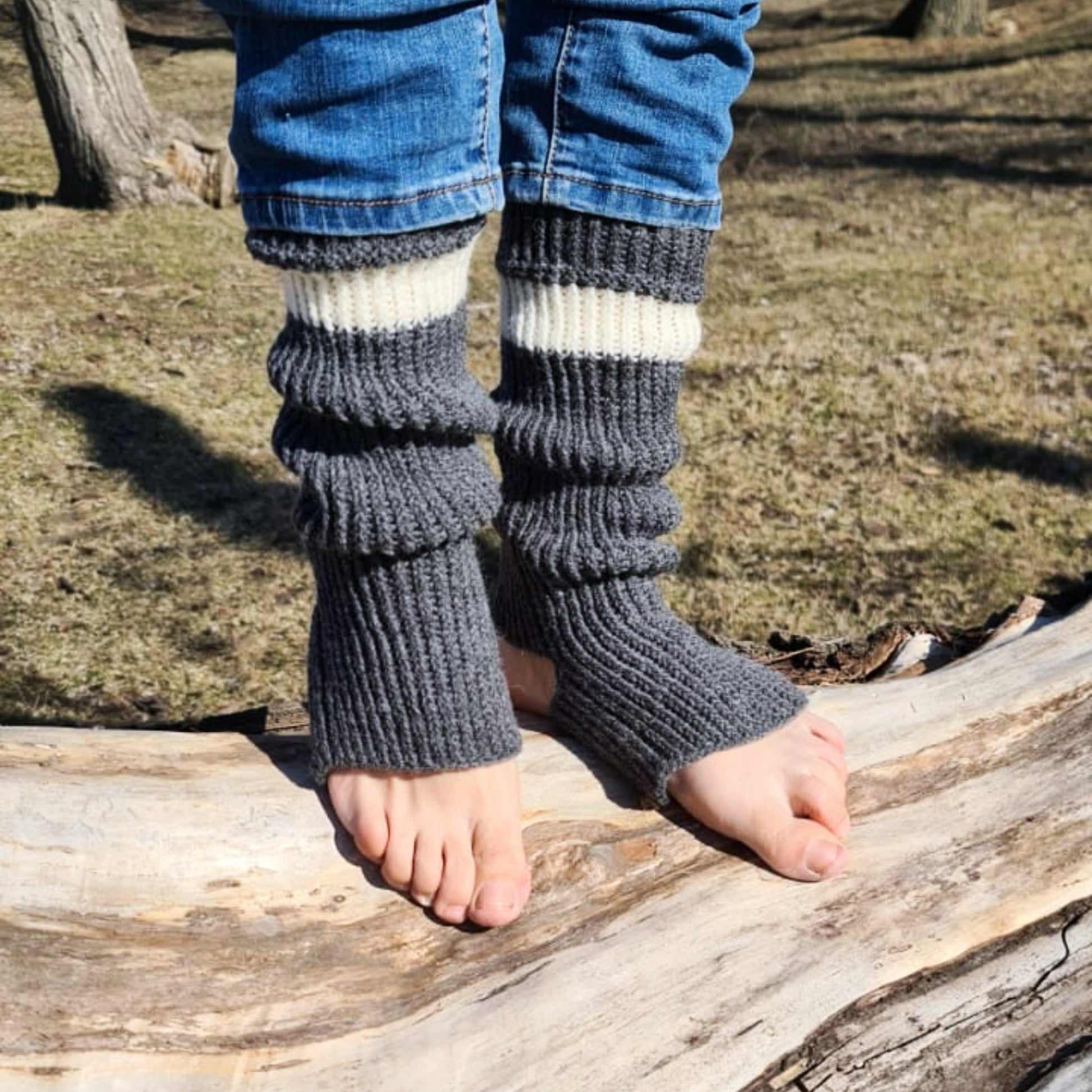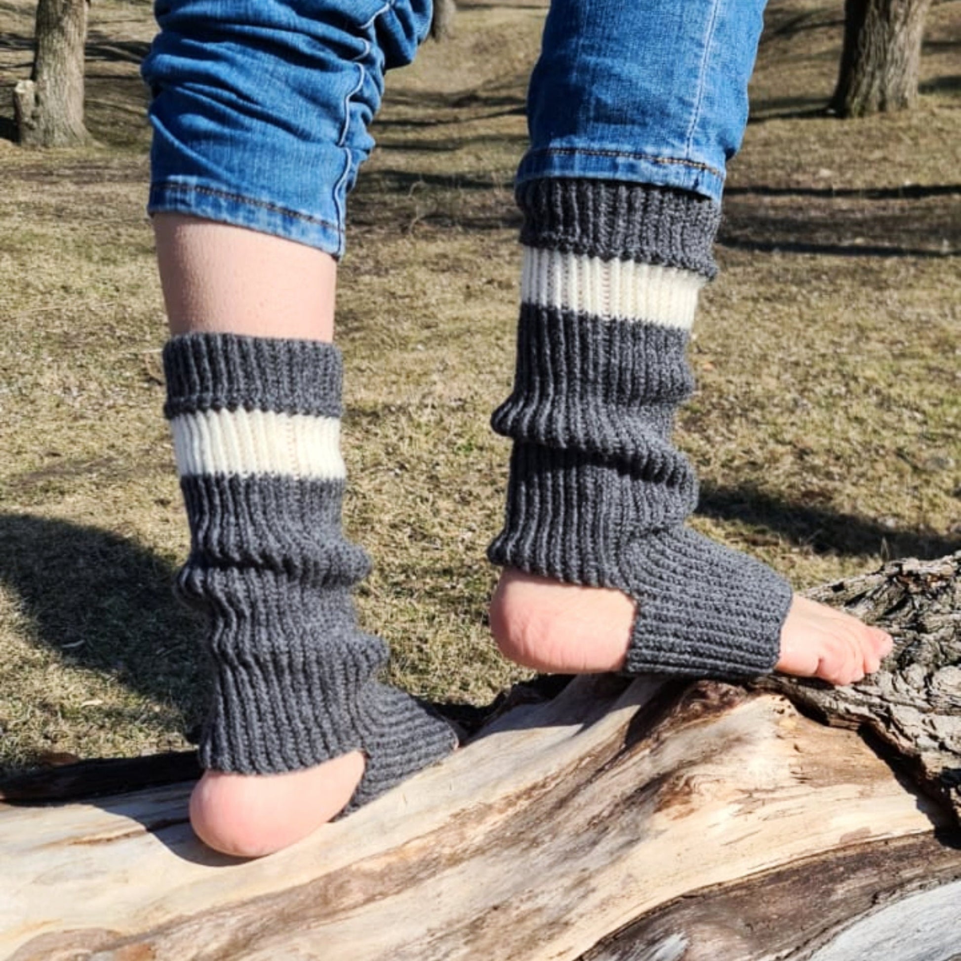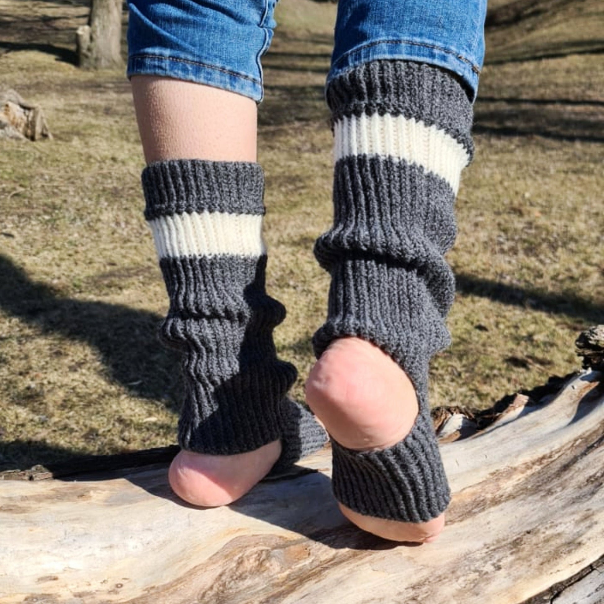 Stirrup leg warmers, Over the calf socks, Stripped open toe and open heel socks