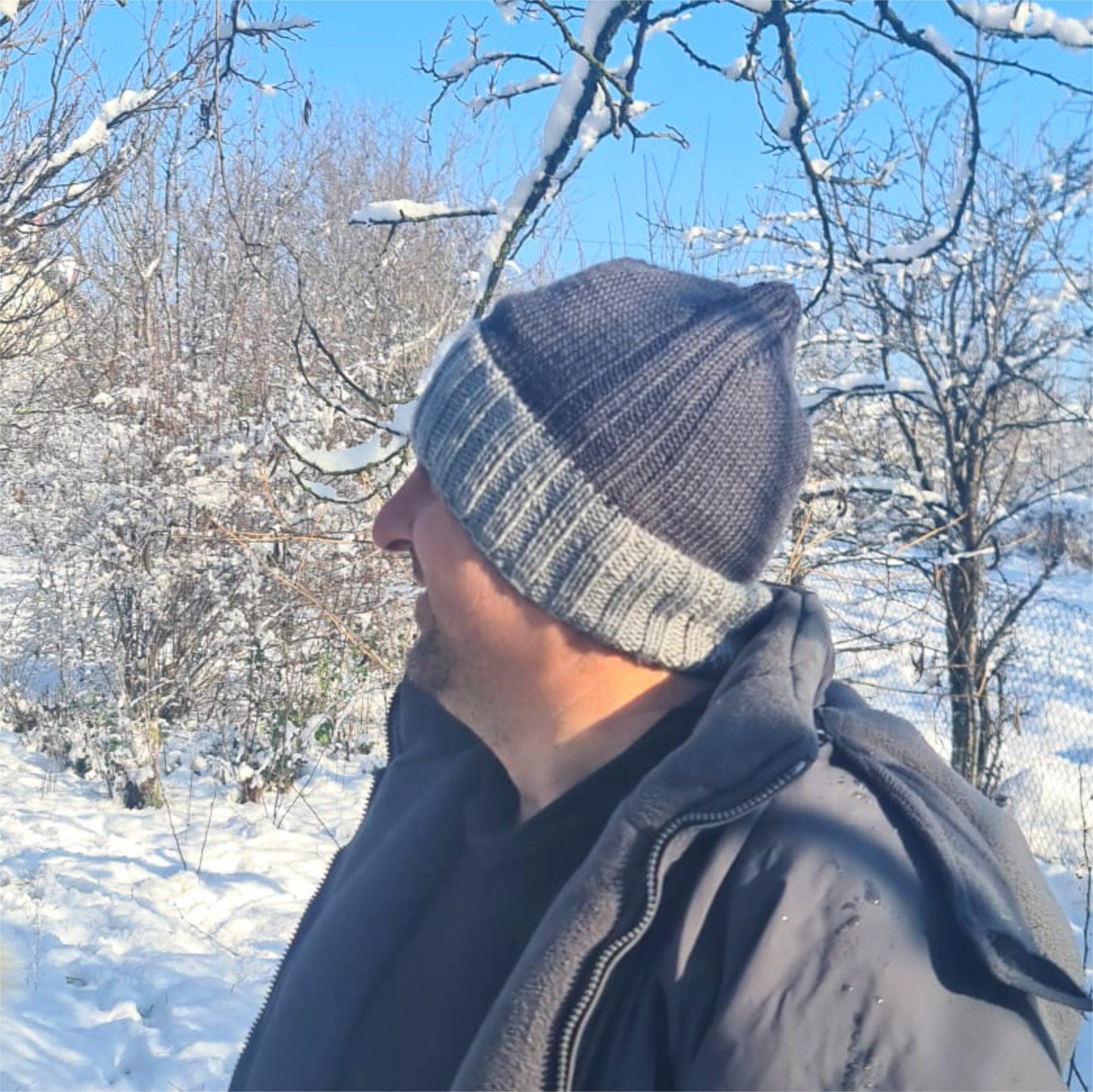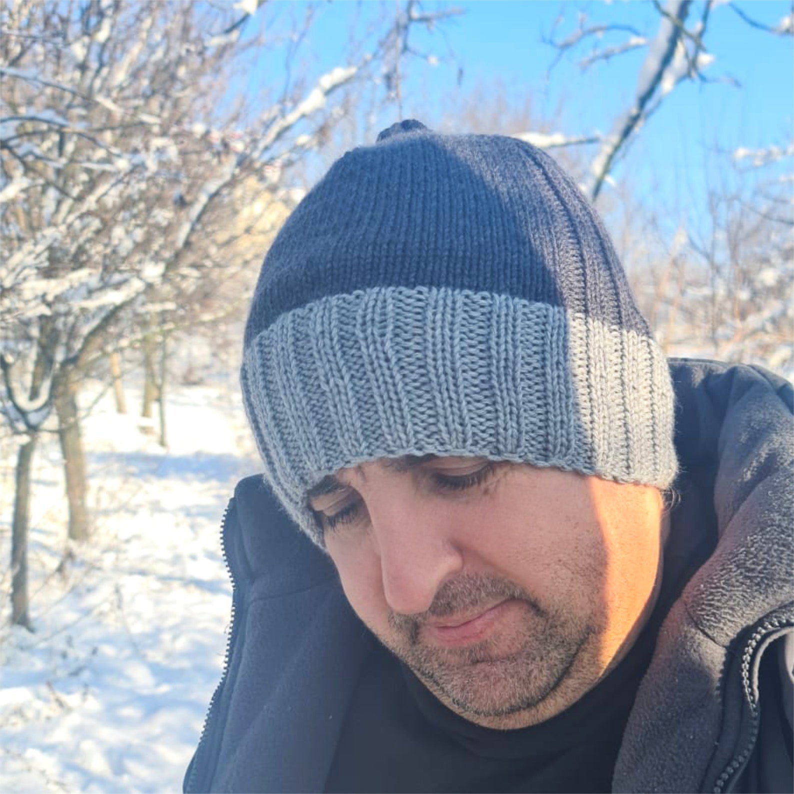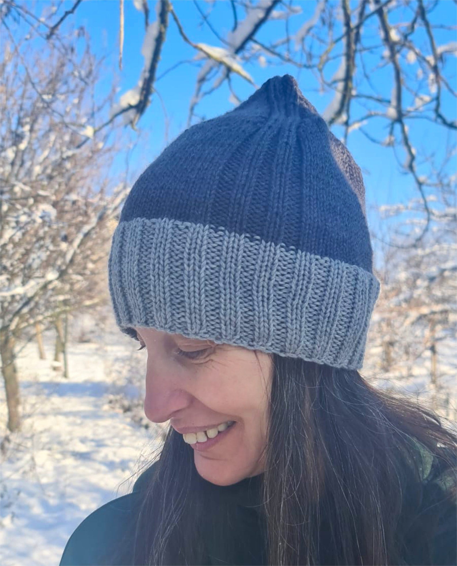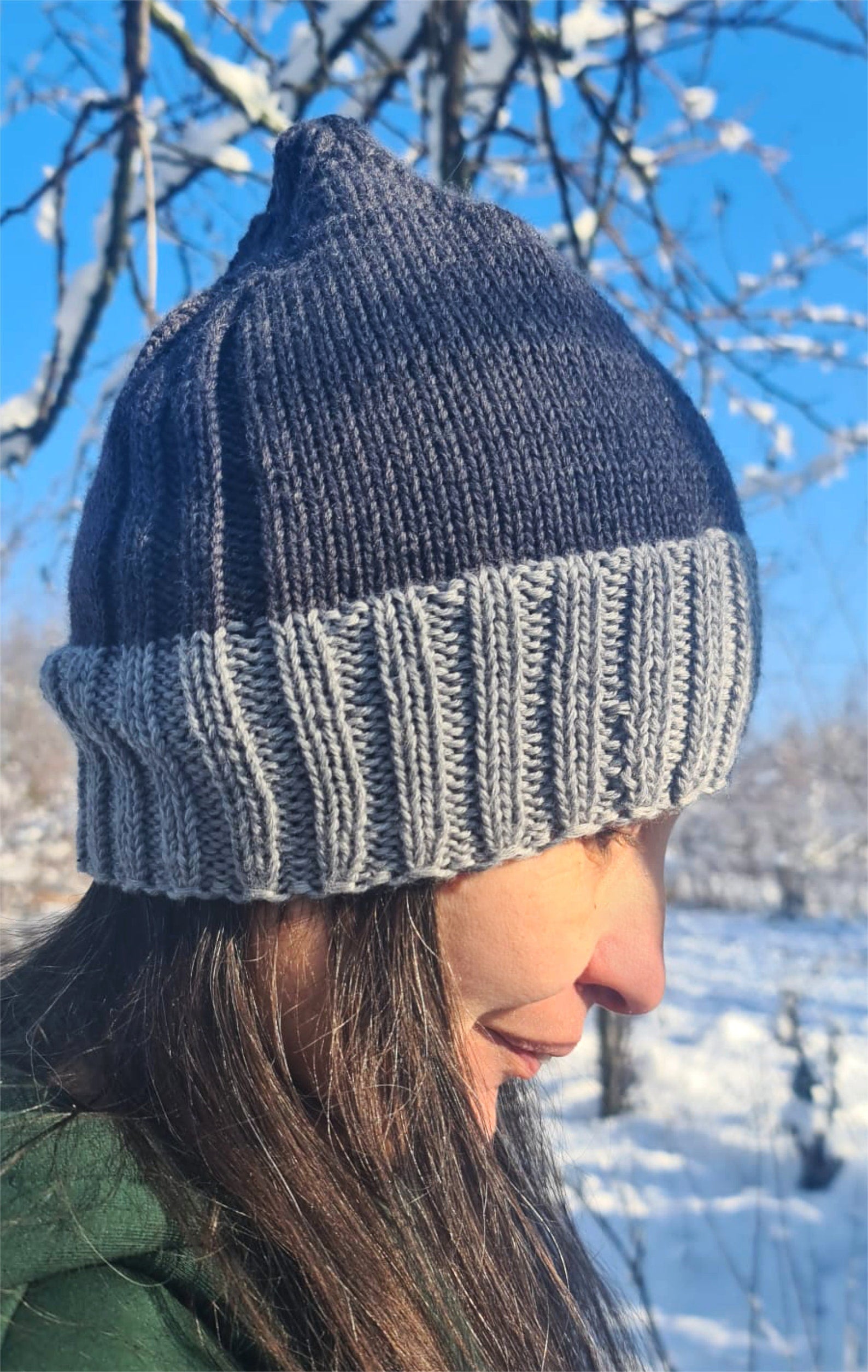 Two tone 100% extra-fine merino beanie, Stretchy warm hat