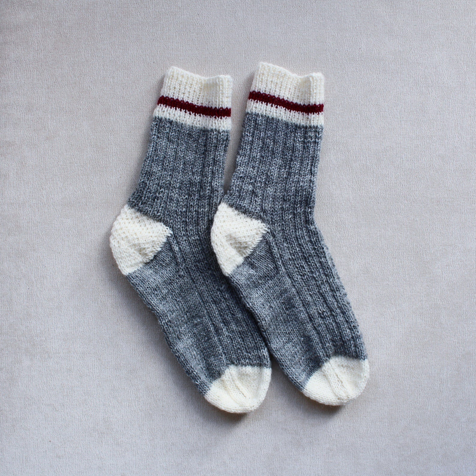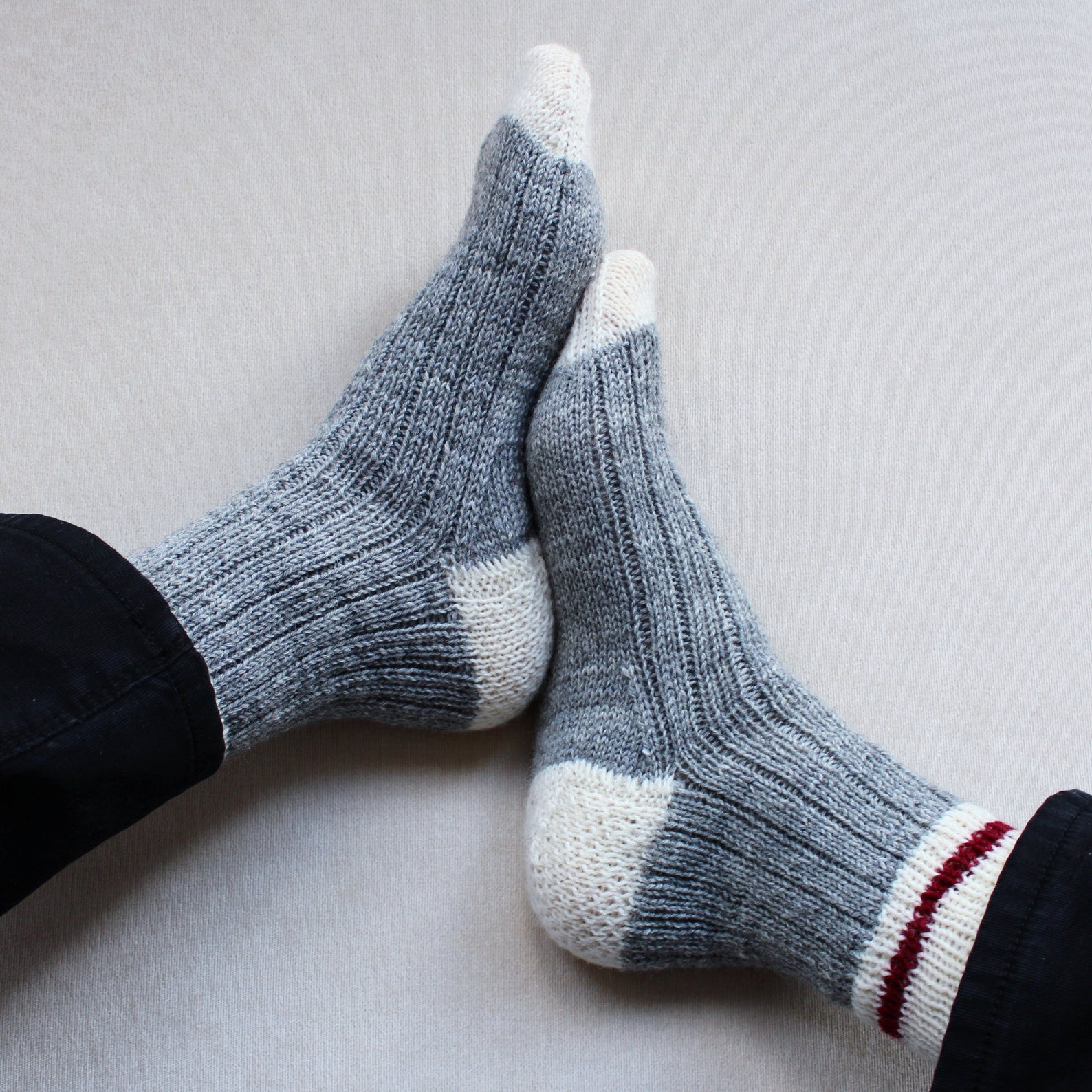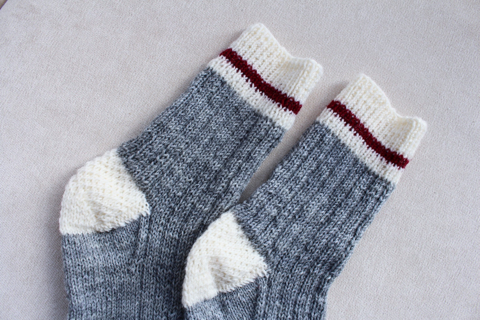 These tall gray and white color classic socks with a red colored stripe on the top will fit with your minimalist style outfits. Pair with your favorite sneakers, Doc Marten's, or wear these retro-inspired socks by themselves for sliding down the hallway! Such stylish cold-weather socks can be a wonderful gift.