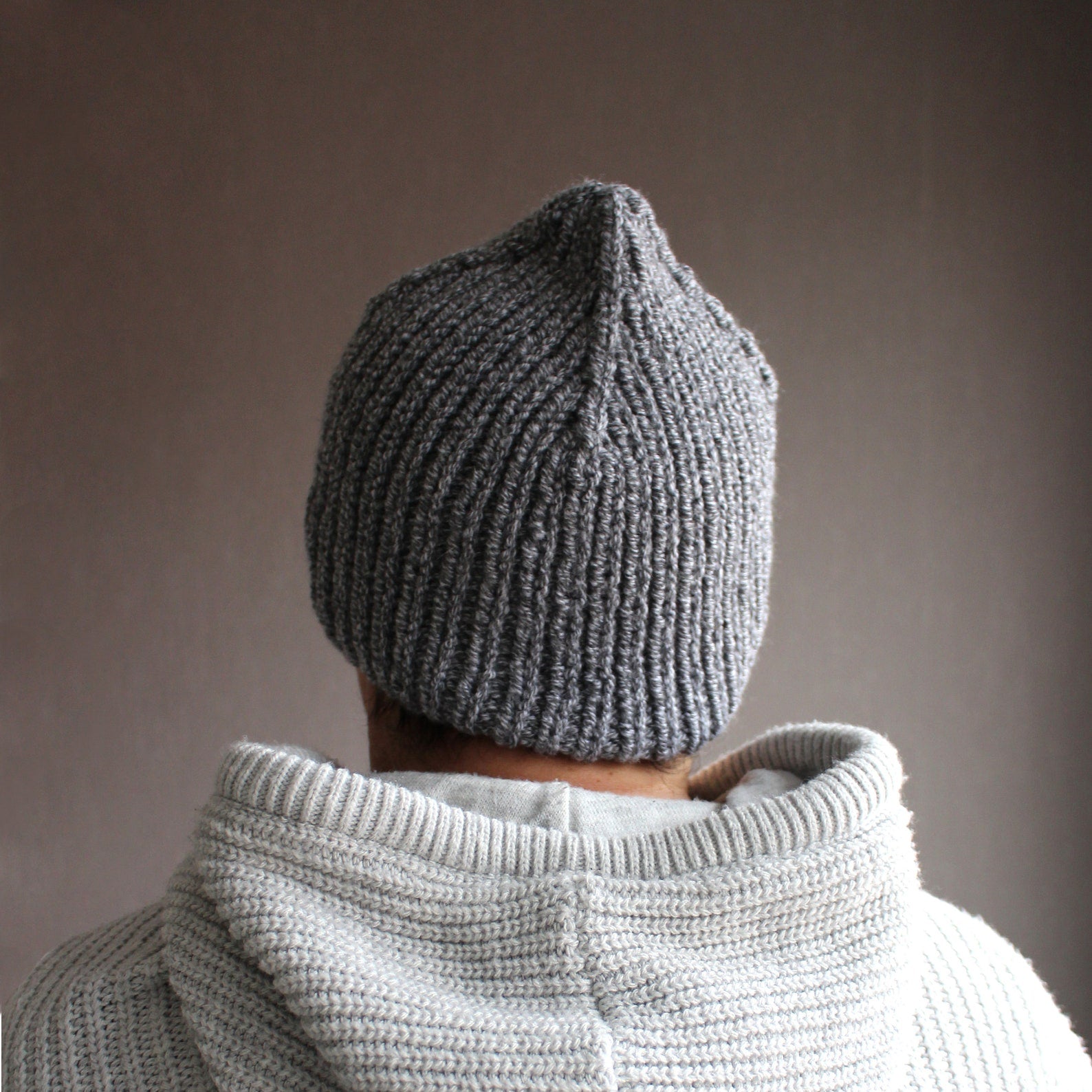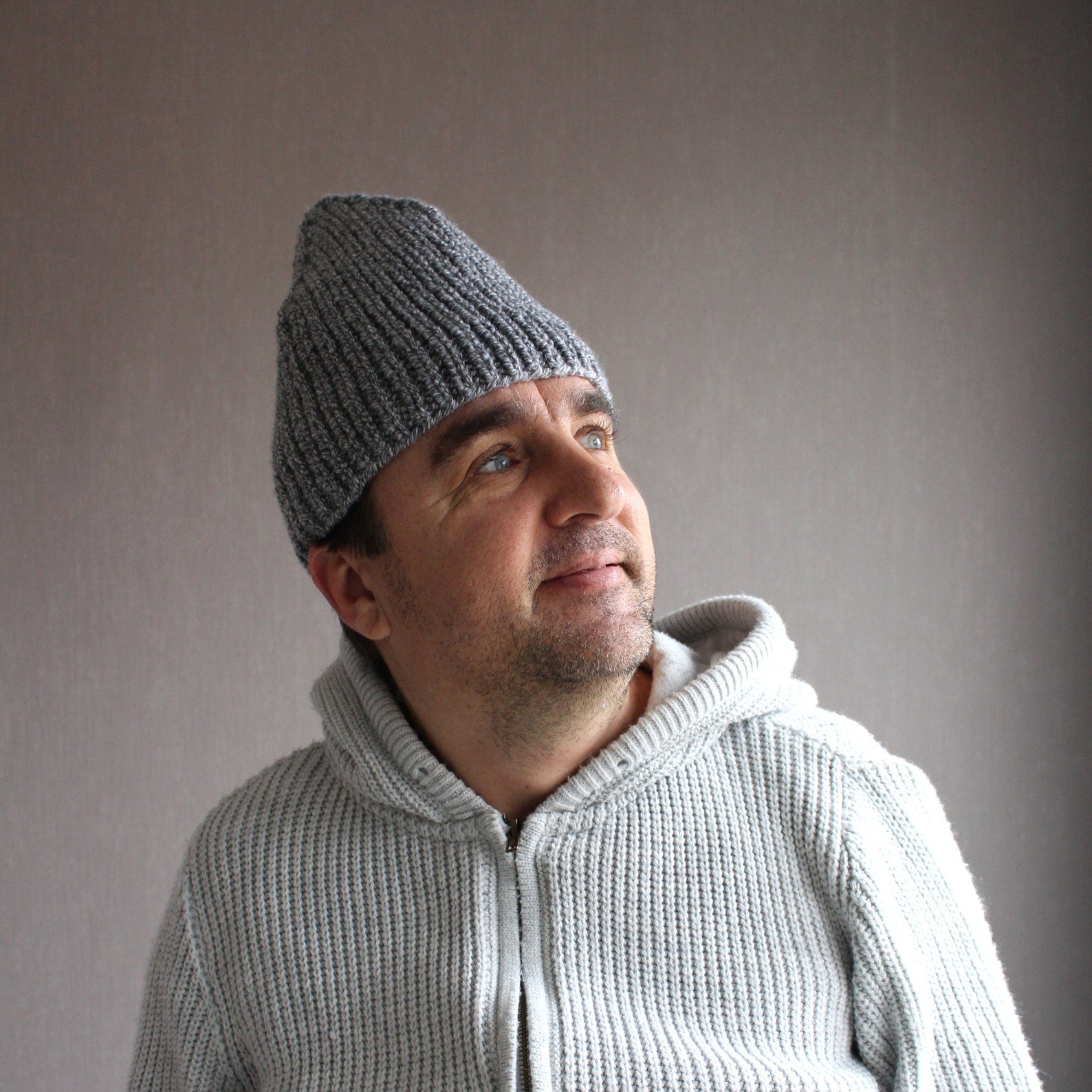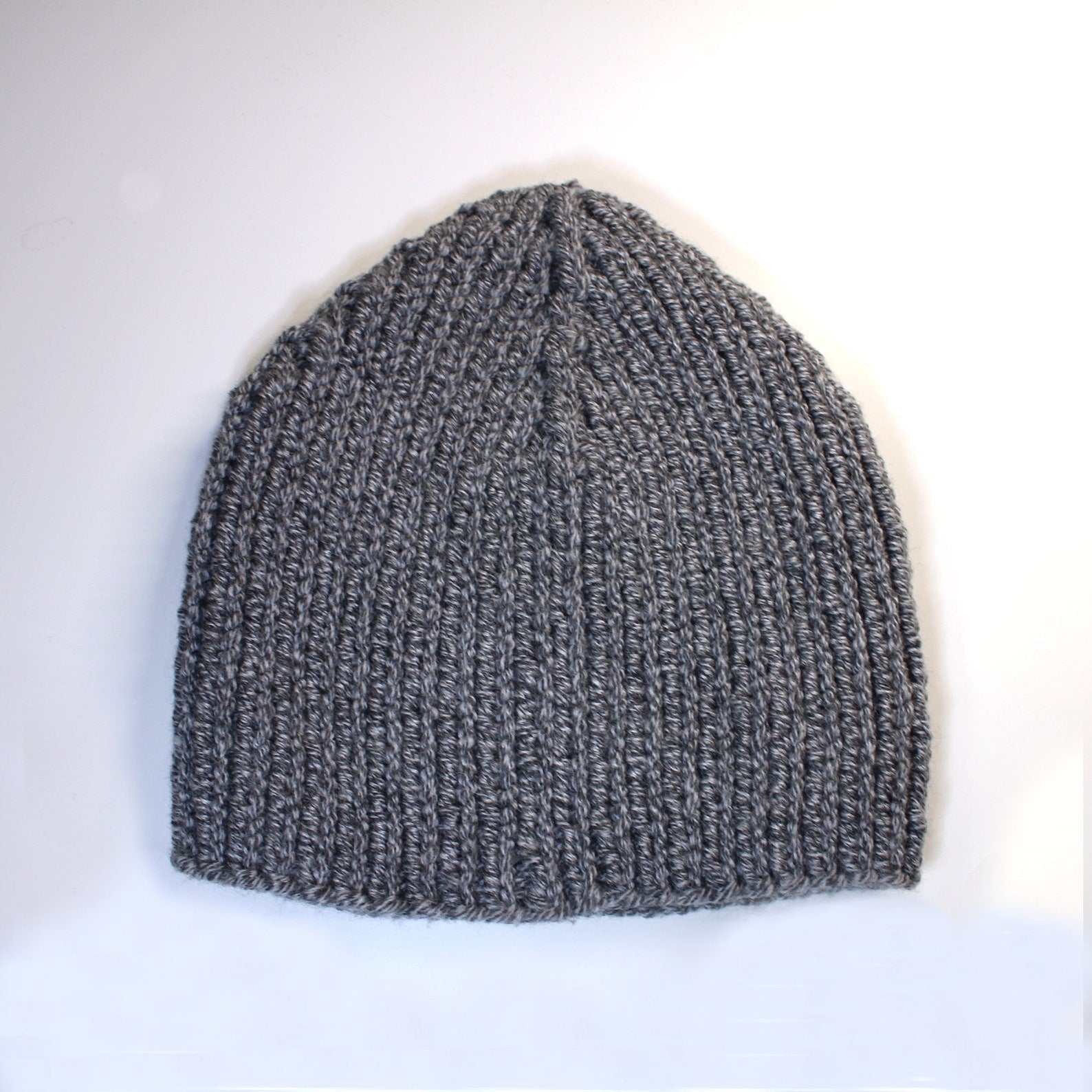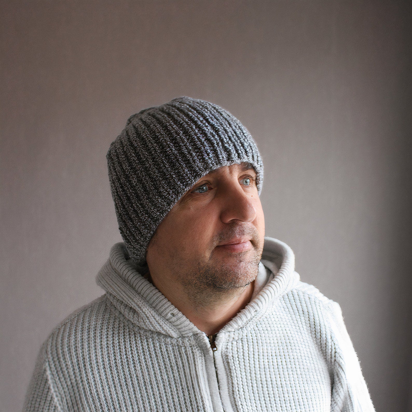 Variegated knit men's winter hat, Gray wool-blend beanie