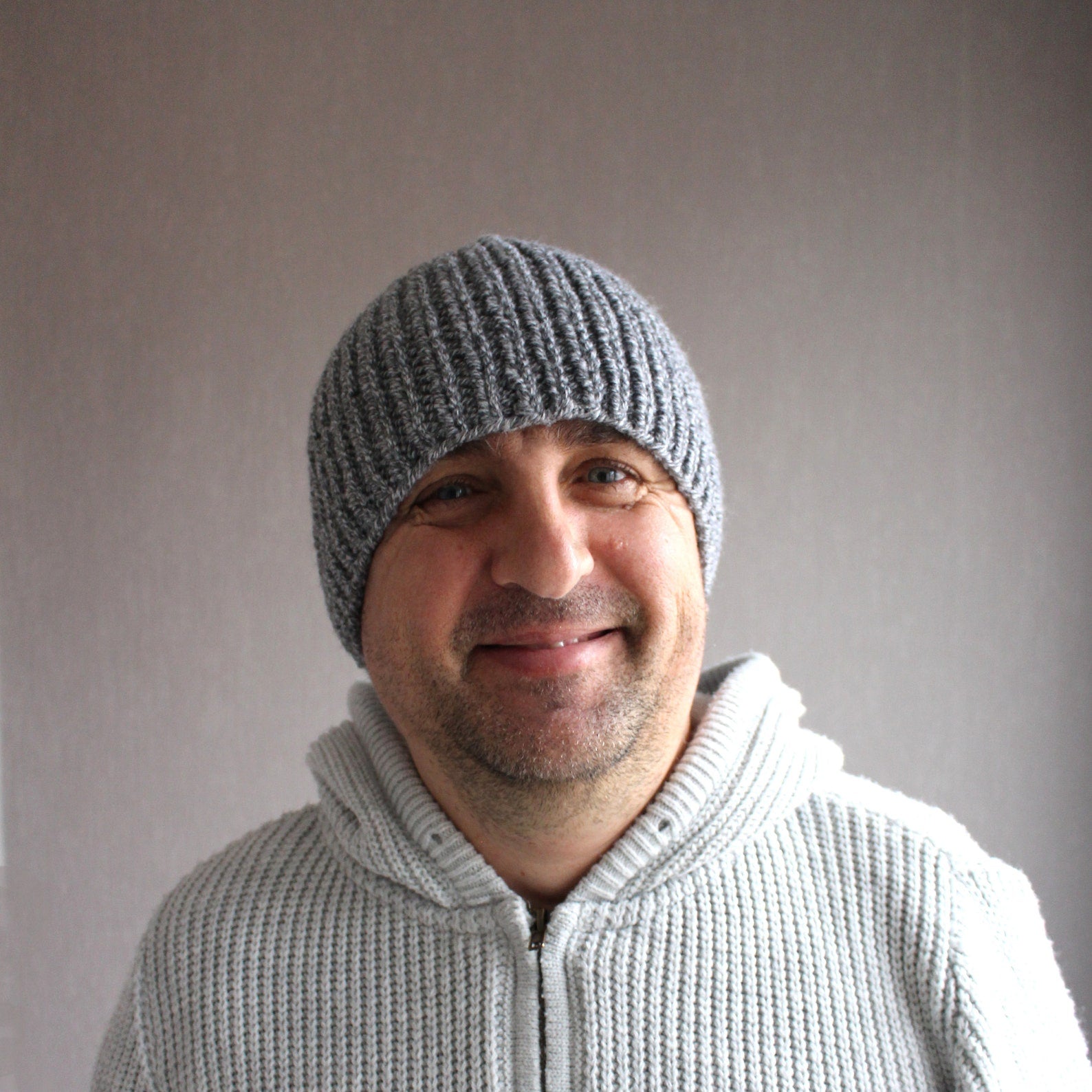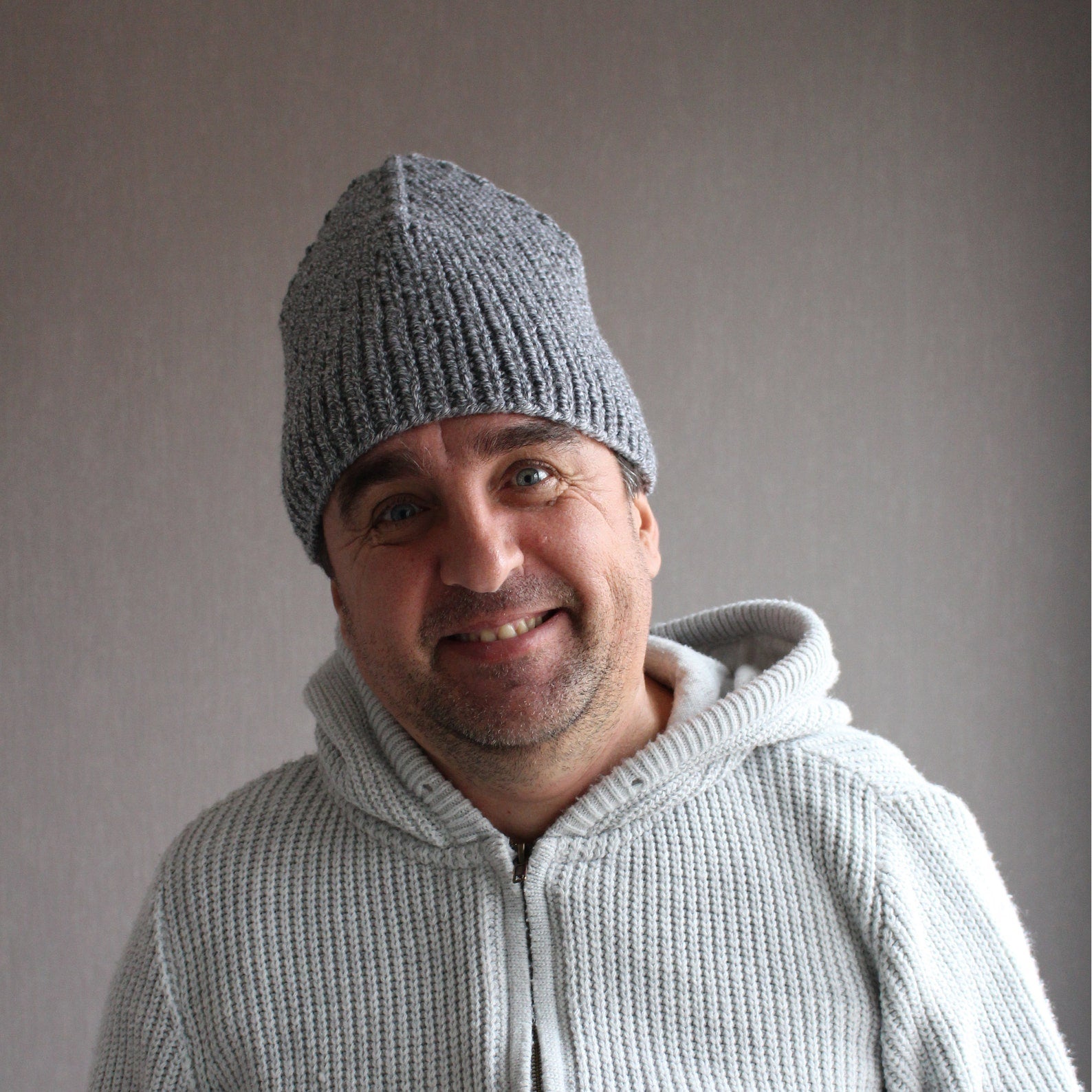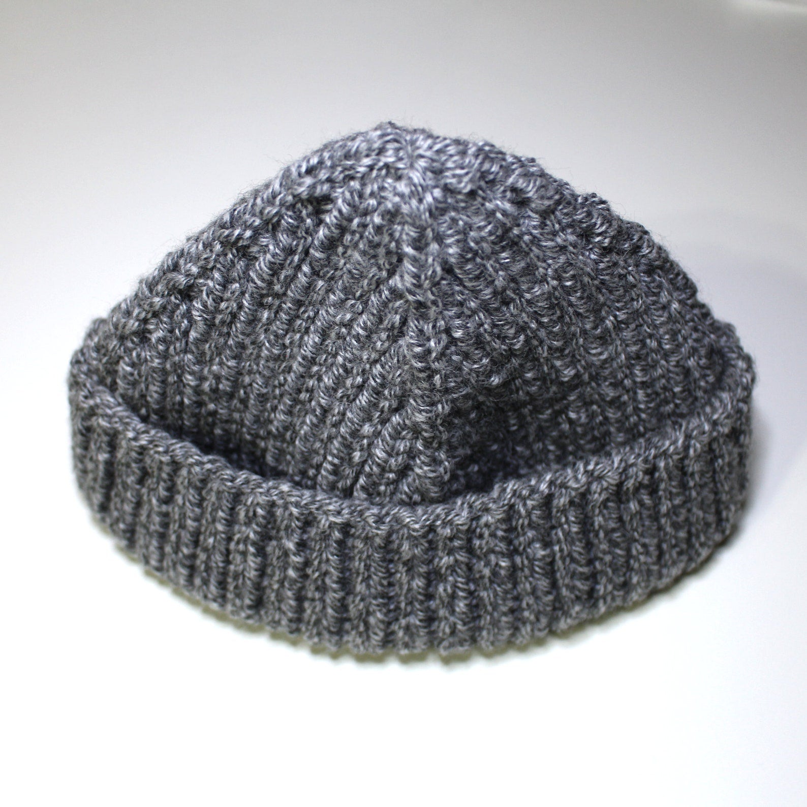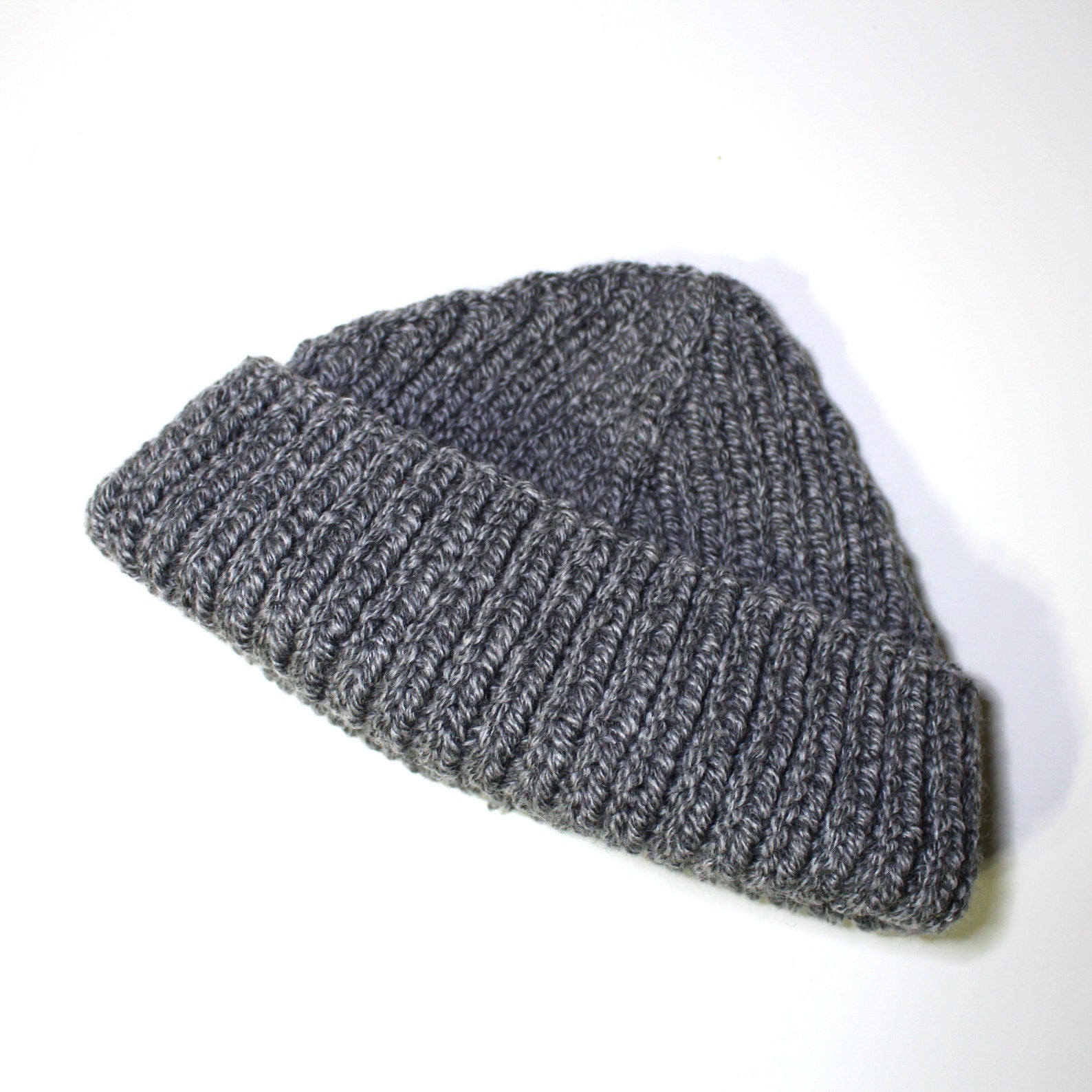 Variegated knit men's winter hat, Gray wool-blend beanie