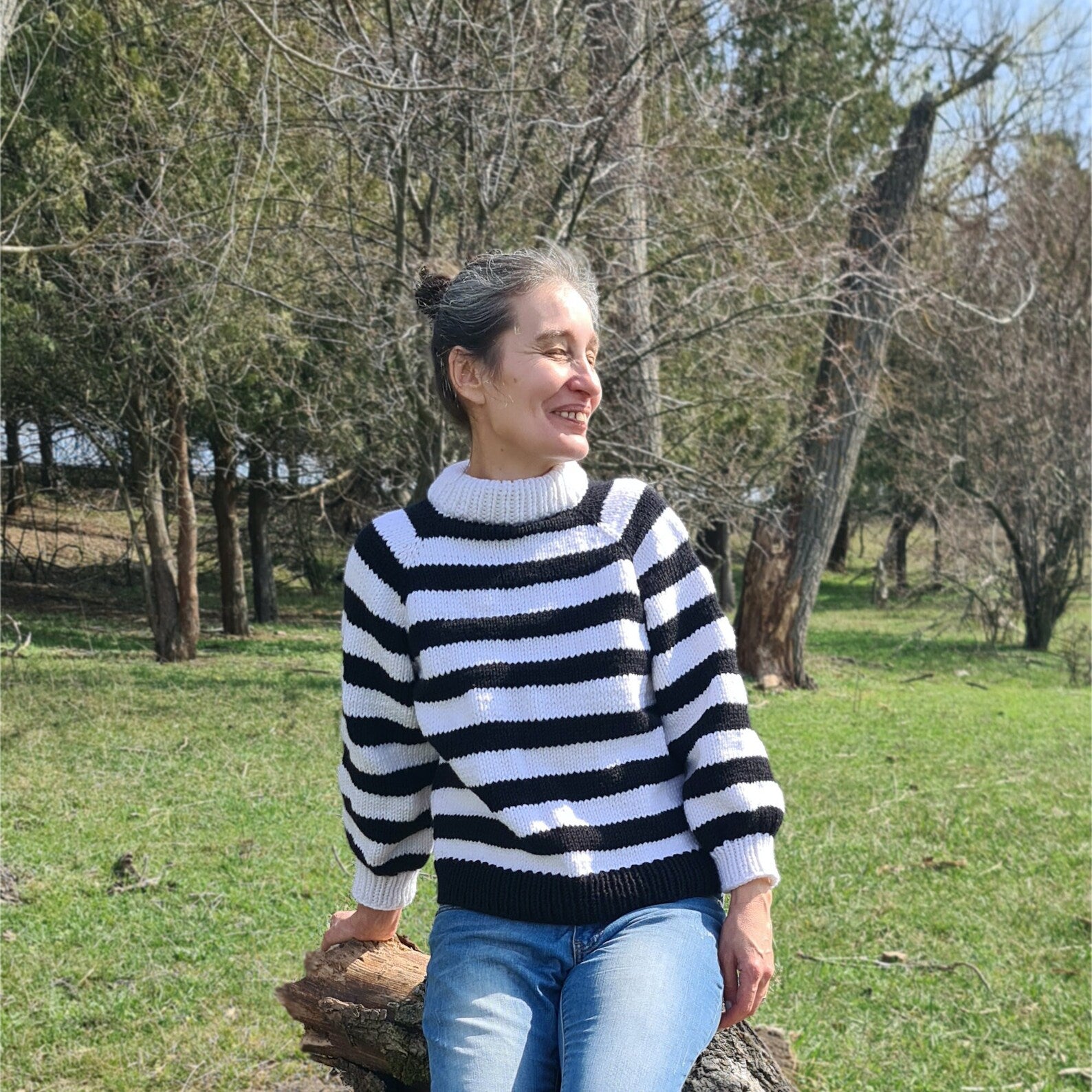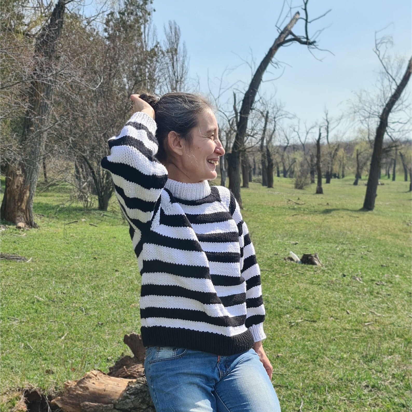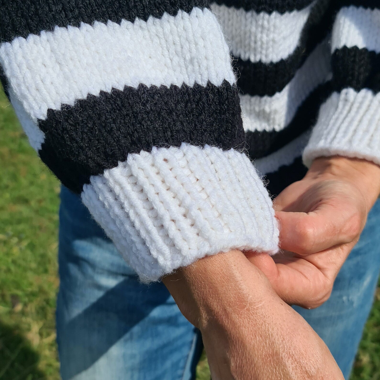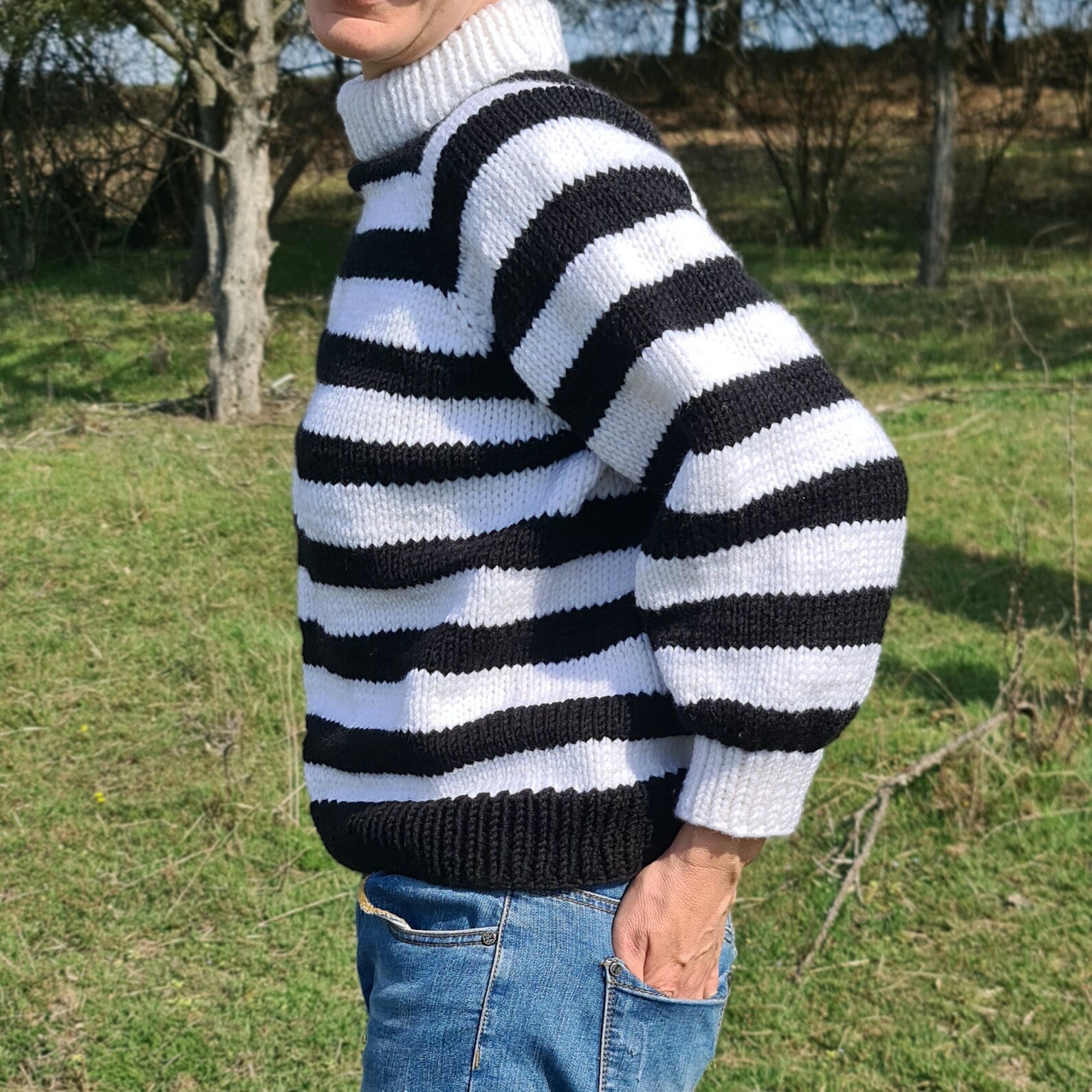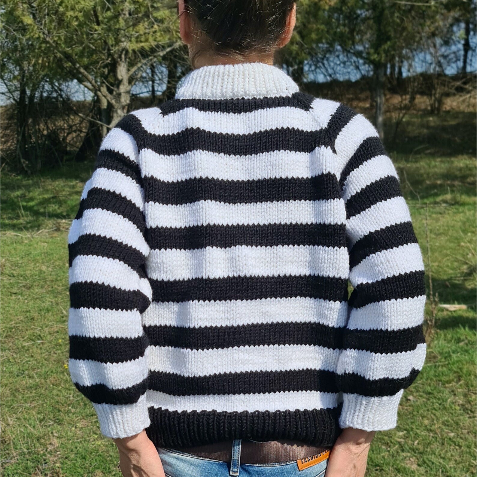 This black and white striped sweater is inspired by Wednesday Addams outfits. With its oversized fit, crew neck, and lantern sleeves, it's the perfect piece for both everyday wear and Wednesday cosplay. Whether worn alone or paired with a layering piece, this gothic wool-blend pullover is sure to become a stand-out addition to any wardrobe.