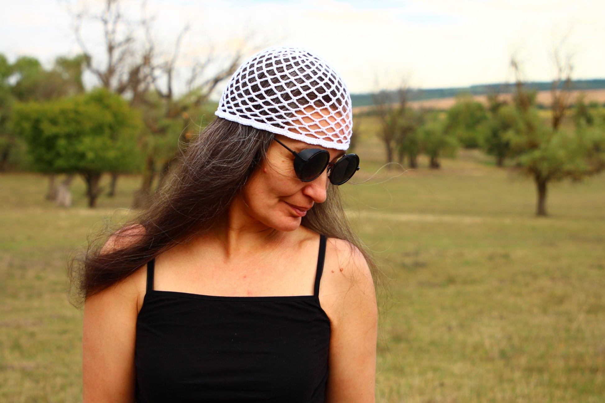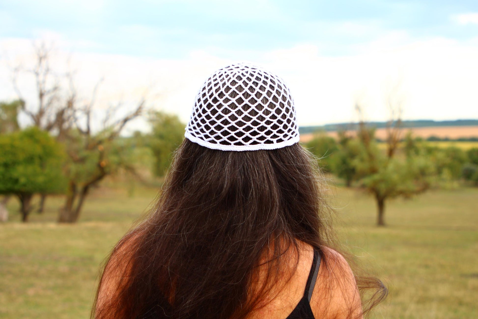 White Lattice Pattern Summer Hat