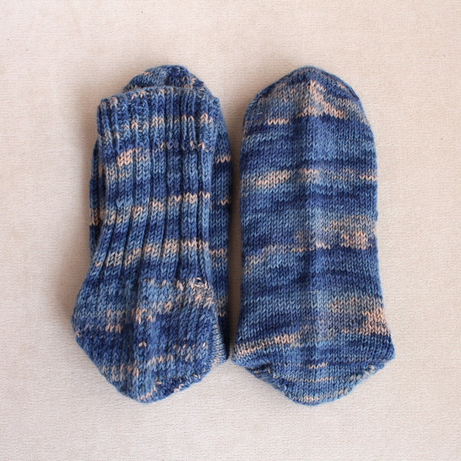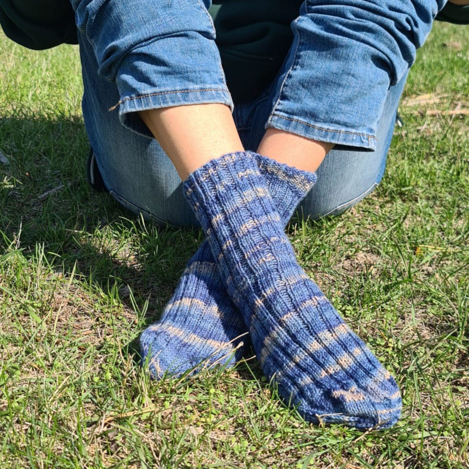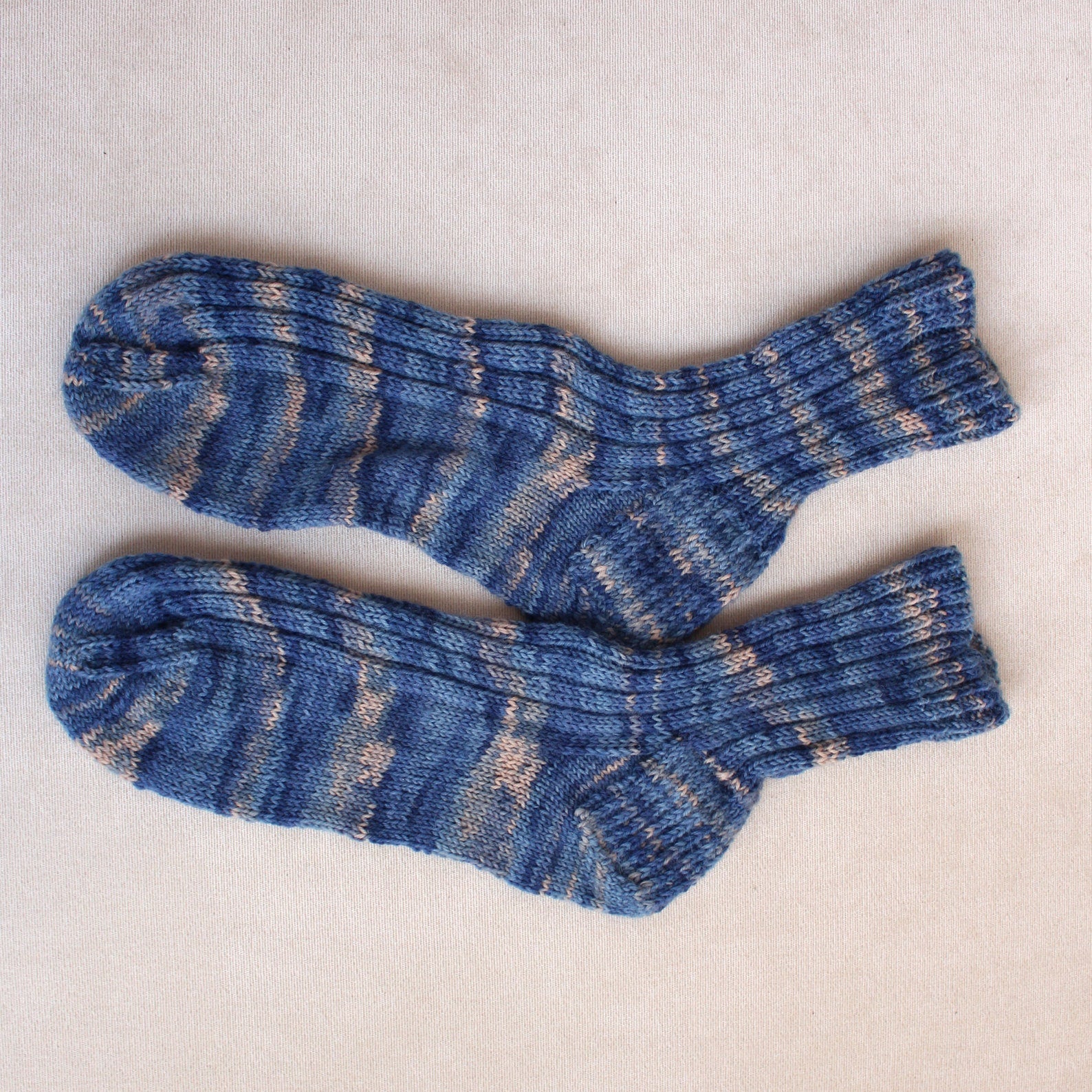 Wool-blend striped blue socks, Warm ribbed quarter socks