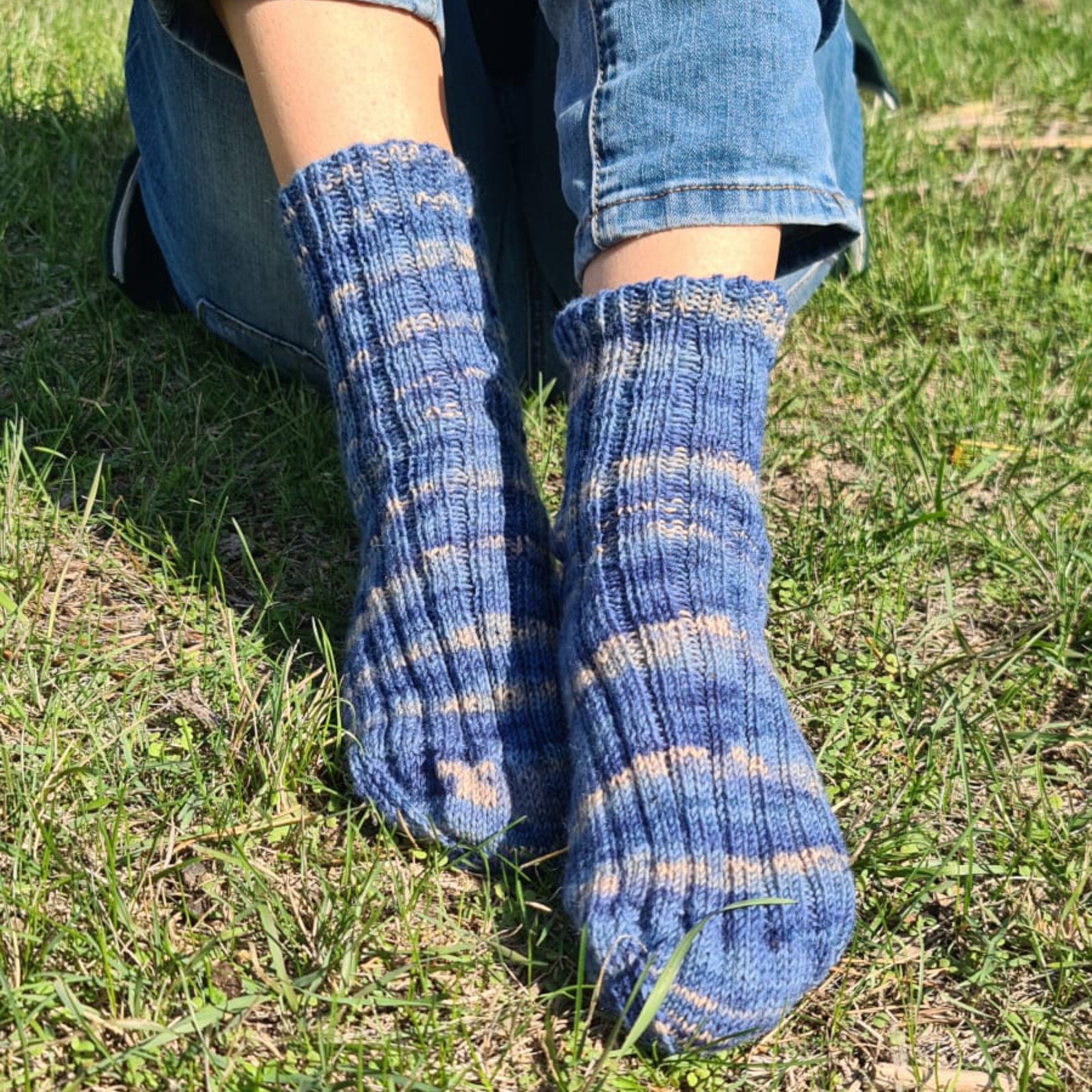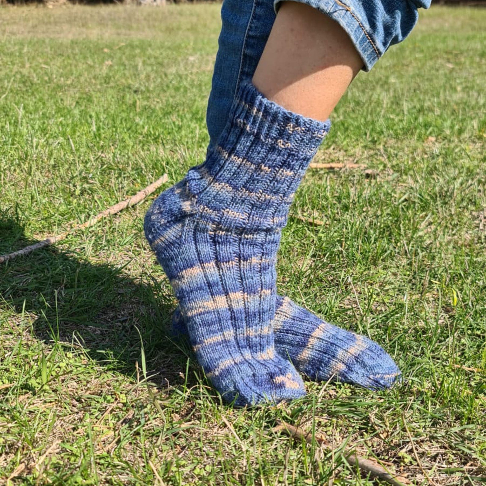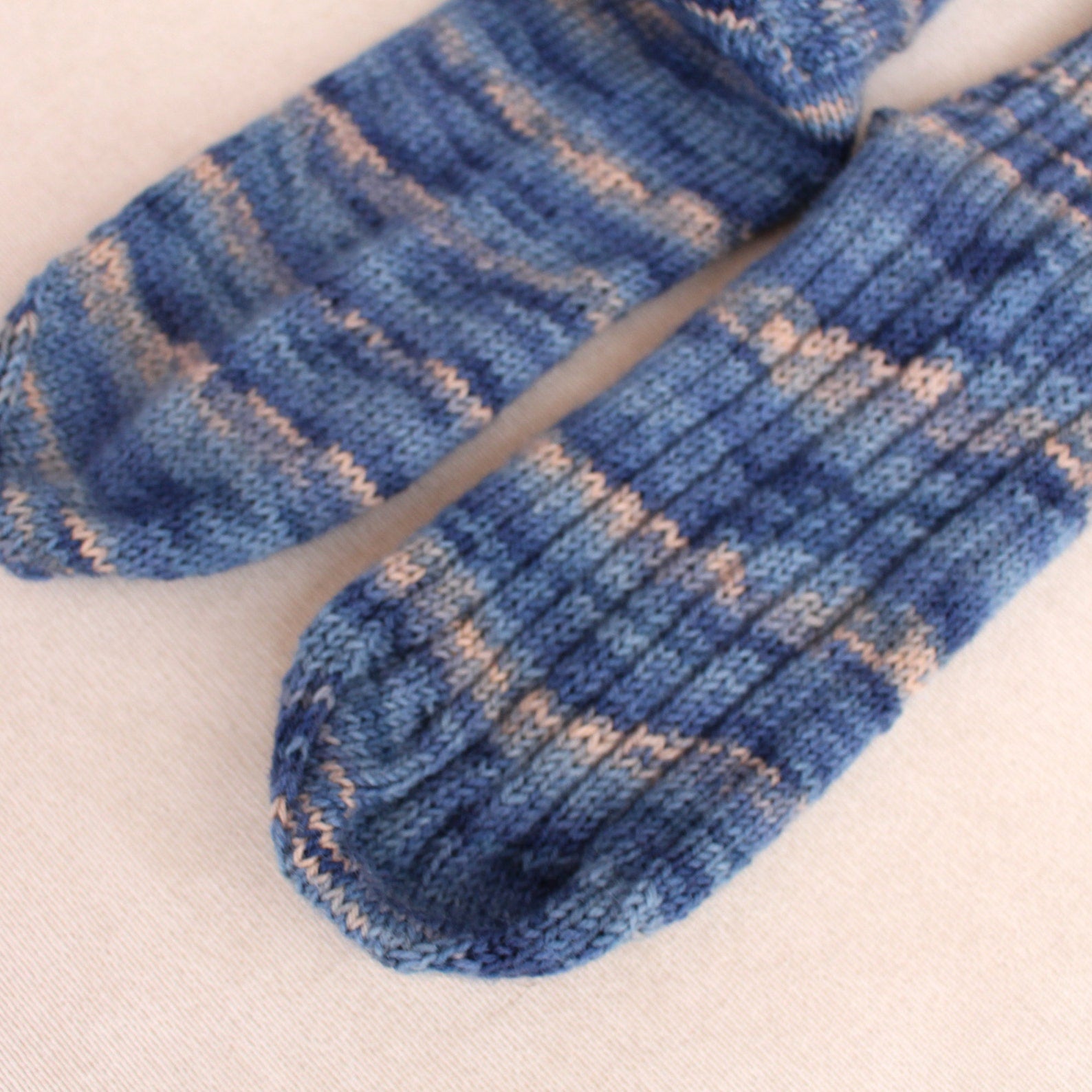 Wool-blend striped blue socks, Warm ribbed quarter socks