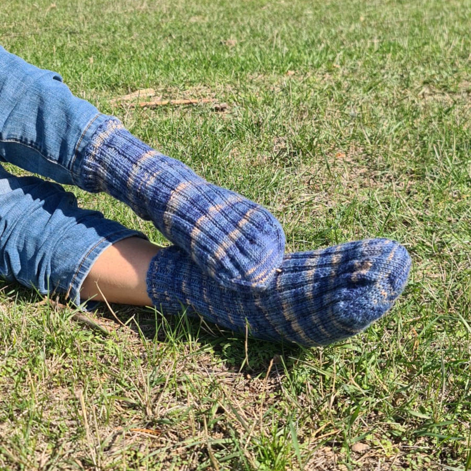 These multi-color striped socks are hand-knitted from durable and soft Italian yarn. These funny socks are light, comfy, and extra warm. Such a super soft pair of socks will keep feet comfortable throughout use. Socks work great inside any tall outdoor boots. They can serve as good sleeping socks due to the fact that they strike a balance between being tight and loose. Socks are perfect for a cozy Fall or Christmas photoshoot.